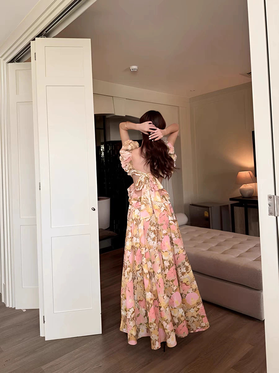Elegant temperament South France light luxury floral age-reducing halter suspender long dress vacation skirt island-produced high-end dress
