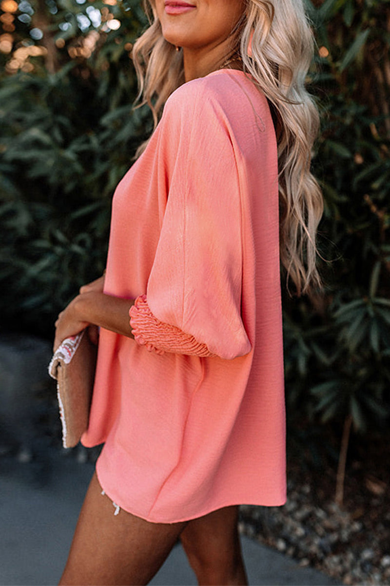 Fashion Casual Solid Smocking O Neck T-Shirts(3 Colors)