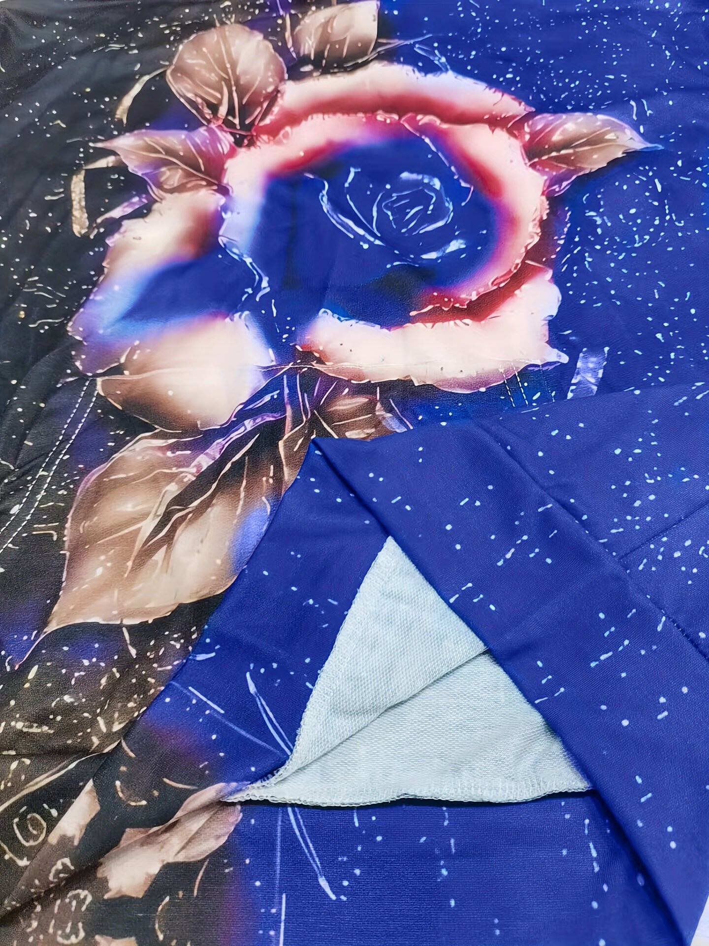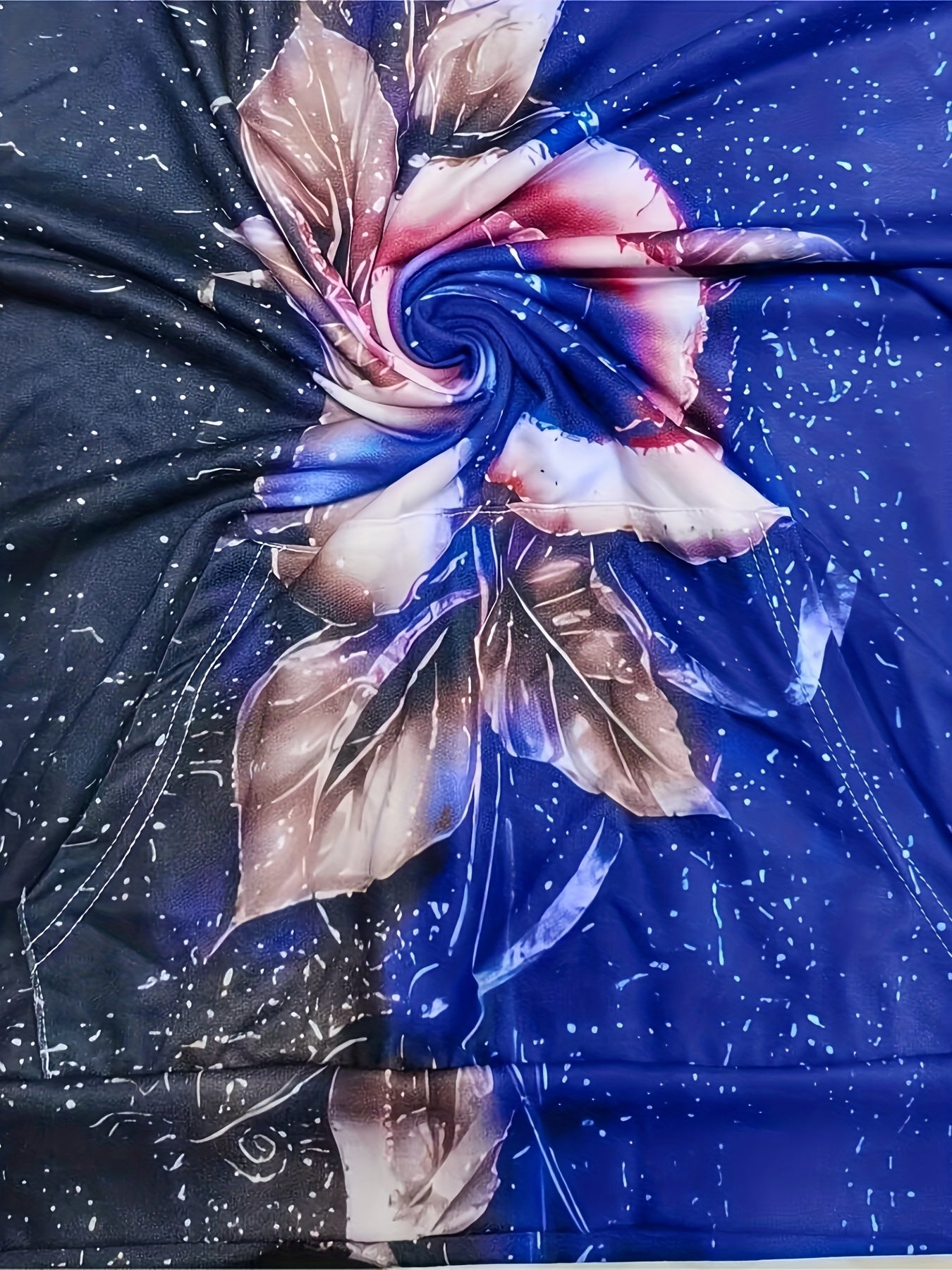 Floral Pattern Casual Hooded Sweatshirt, Long Sleeves Drawstring Sporty Hoodie, Women's Activewear