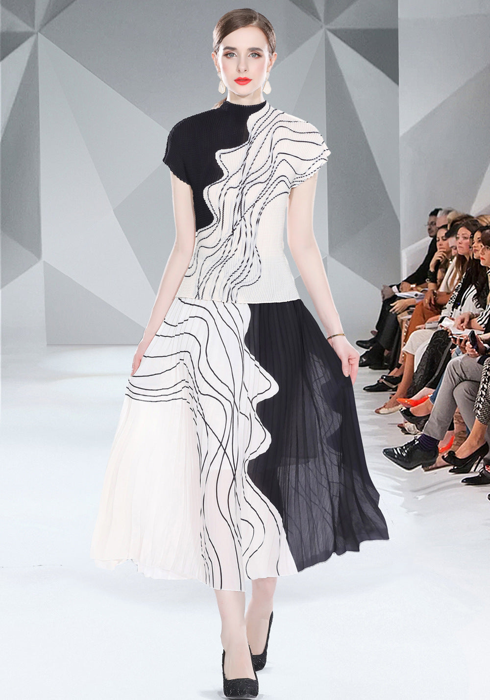 Folded suit women's summer Hong Kong flavor light and familiar imperial sister style texture vest skirt two-piece set