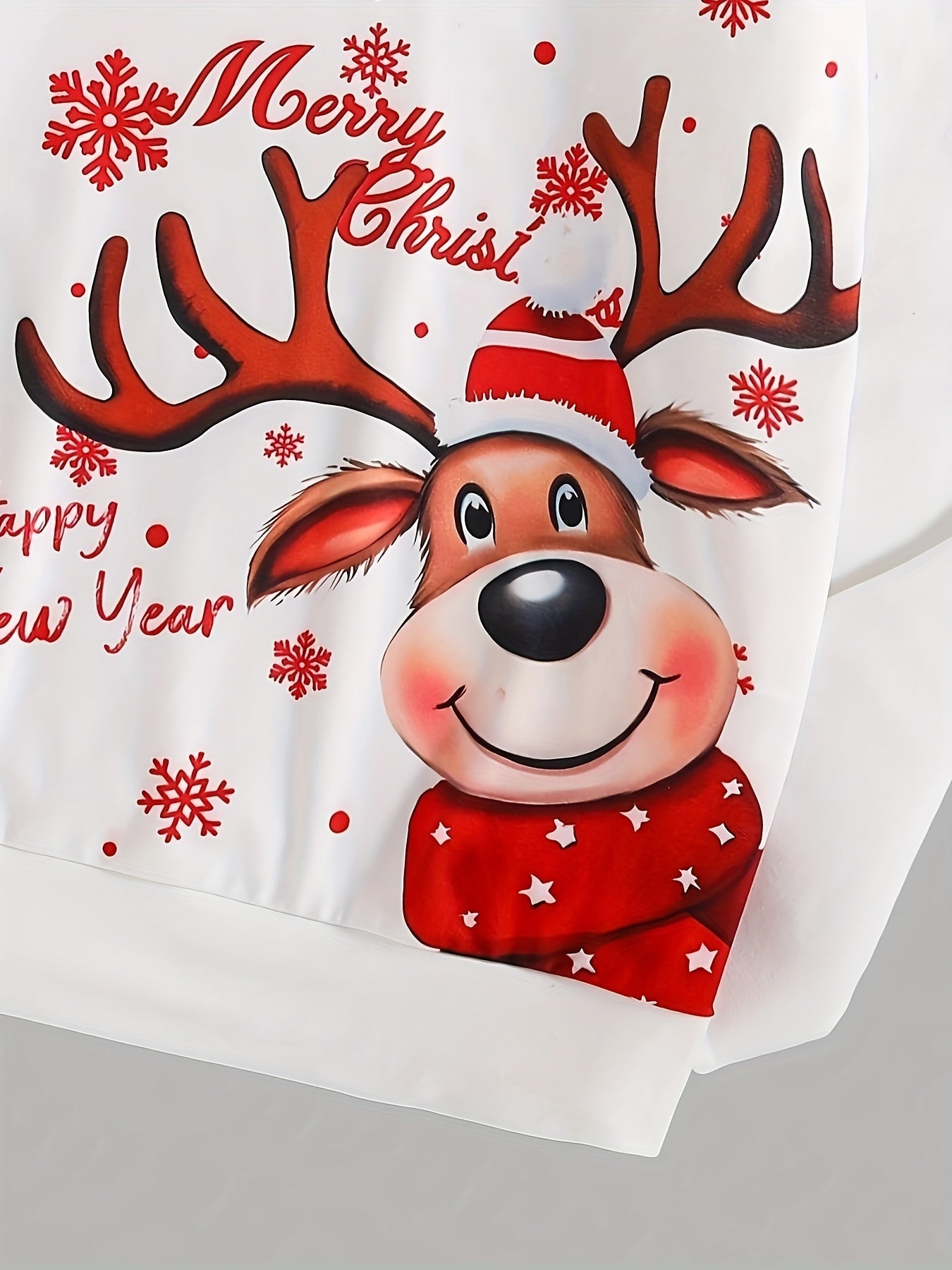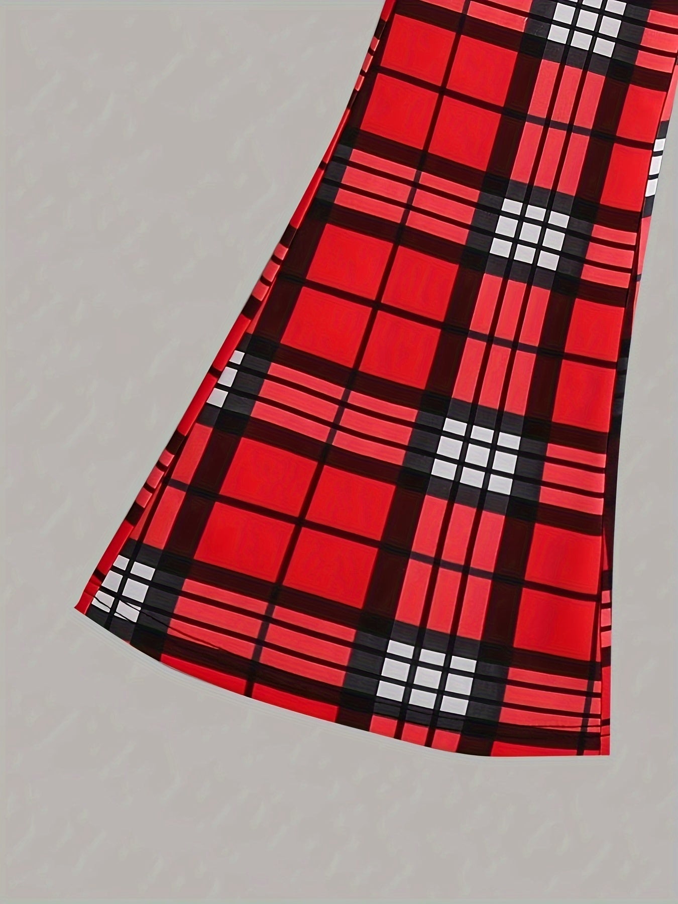 Girls' 2pcs Christmas Outfit: Reindeer & Snowflake Hoodie with Plaid Flare Pants Set - Cozy Polyester Blend, Perfect for Fall/Winter, Perfect for Outdoor