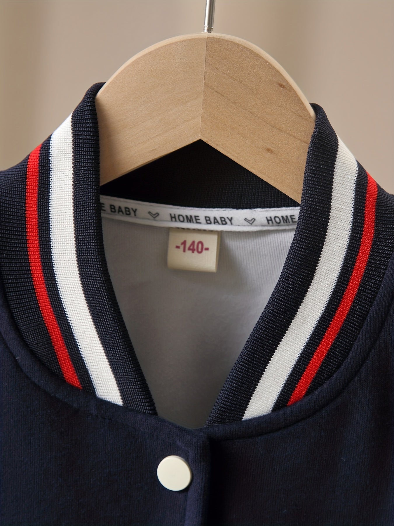 Girl's Sporty Style Outfit 2pcs, Color Clash Varsity Jacket & Wide Leg Pants Set, Kid's Clothes For Spring Fall