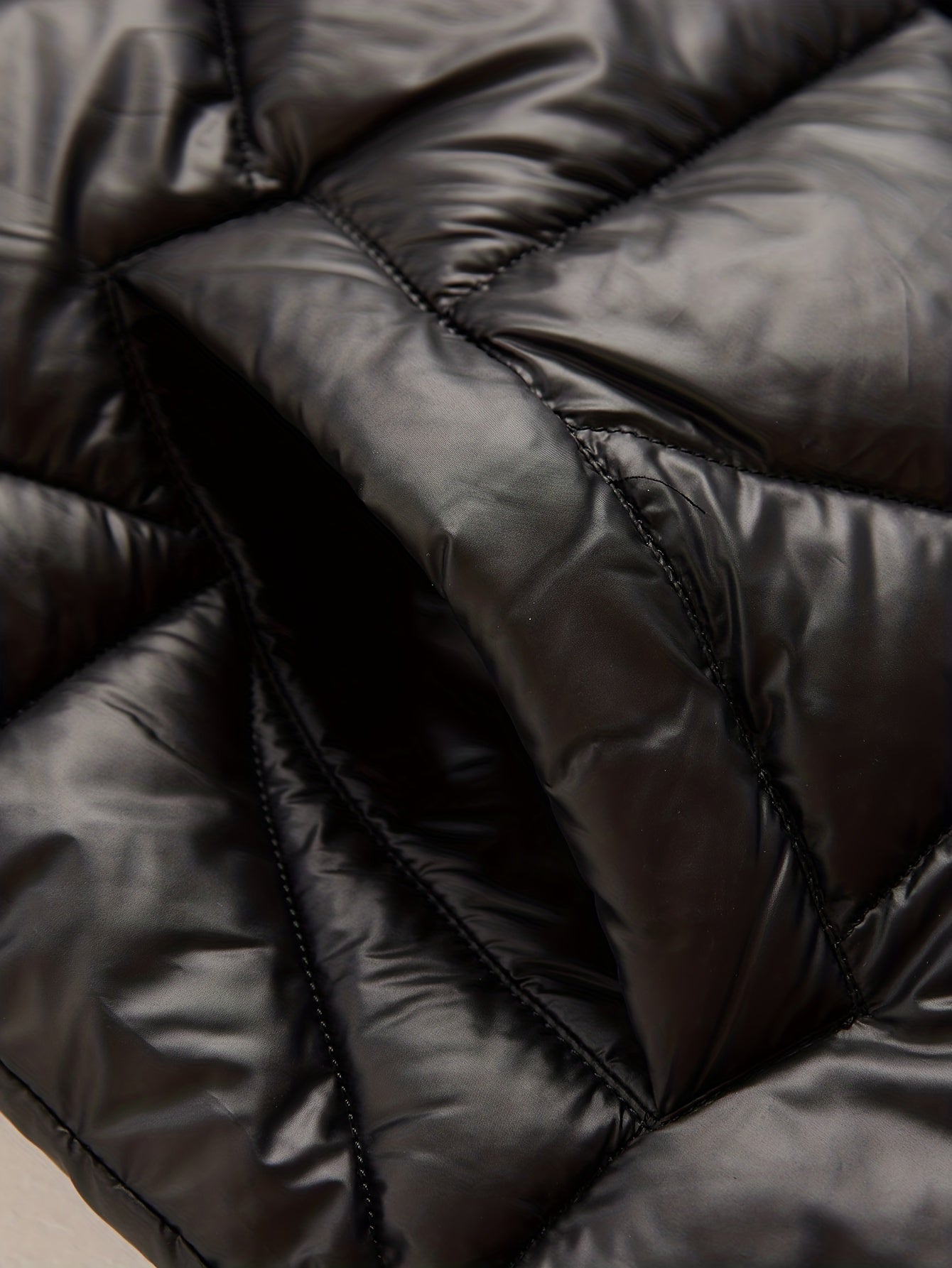High Neck Zip Up Parka, Winter Thermal Solid Casual Coat, Women's Clothing
