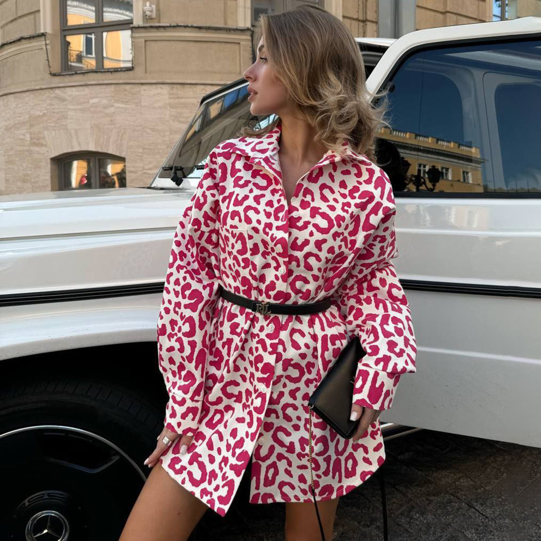 high street design sense animal pattern printing Spice Girl women's shirt spring new style long cardigan top