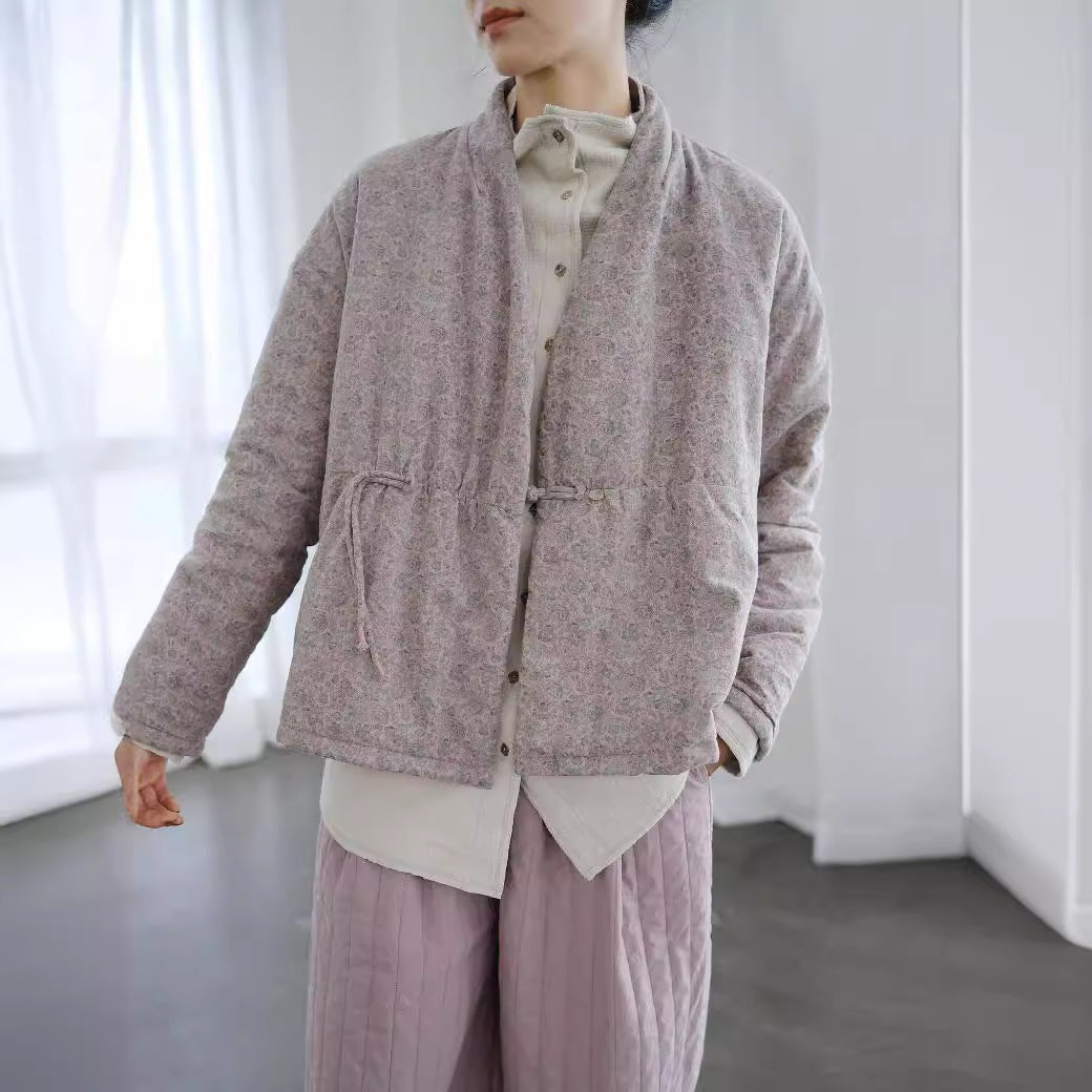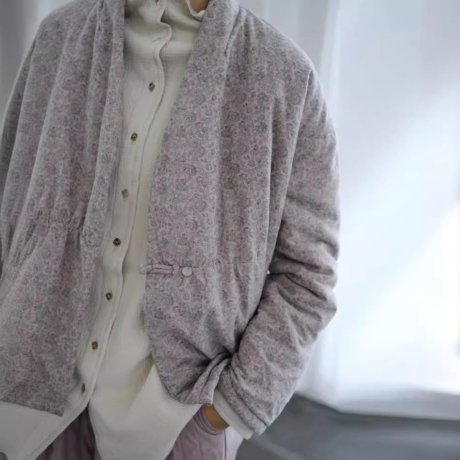 light Chinese atmosphere, polished floral one-button cotton-padded coat, pastoral gentle thickened coat M22376