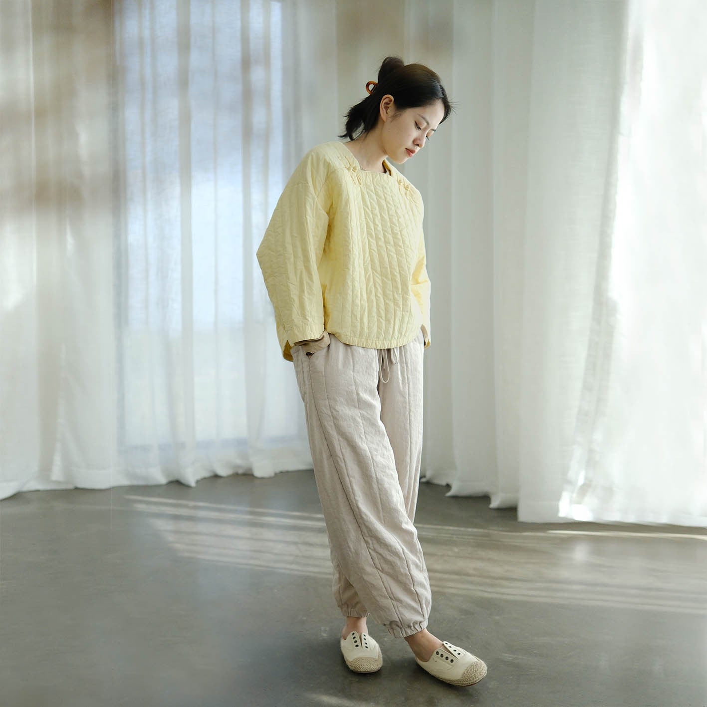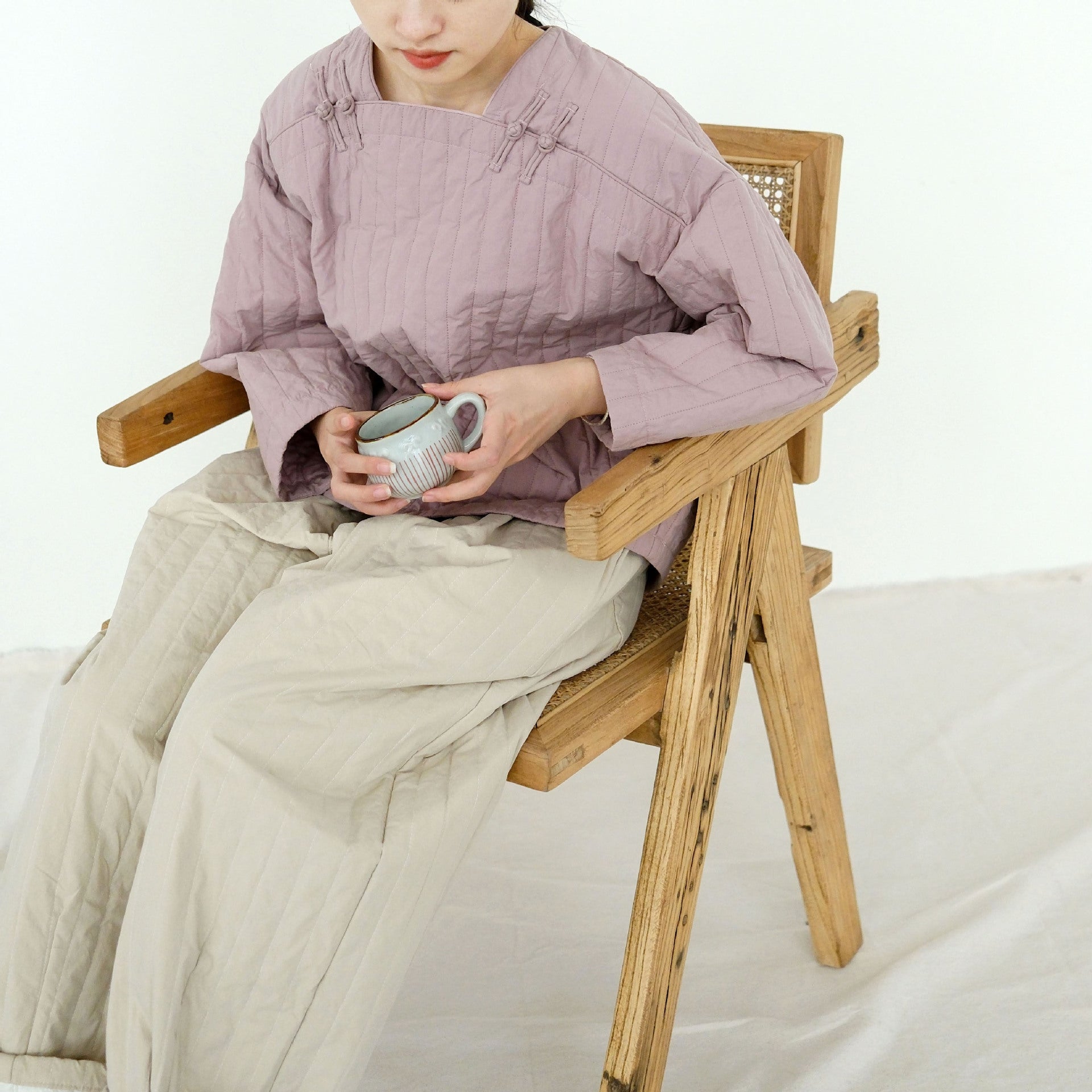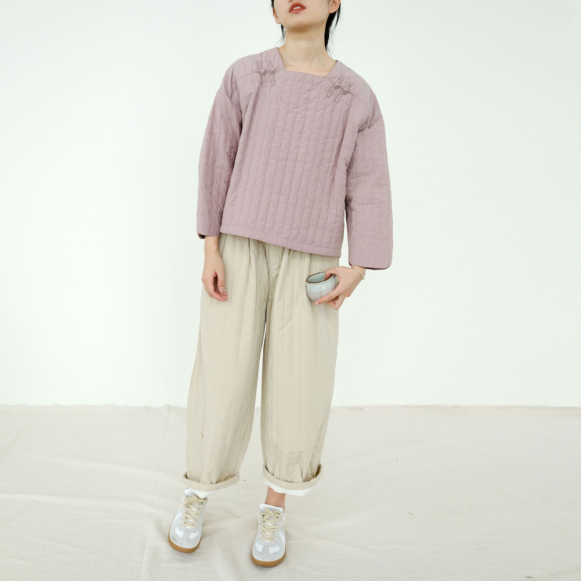 literary and artistic new Chinese-style quilting thread pressed square collar thin cotton-padded coat, cold loose cocoon-padded top M22371