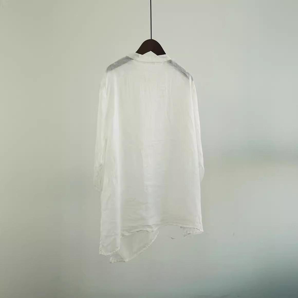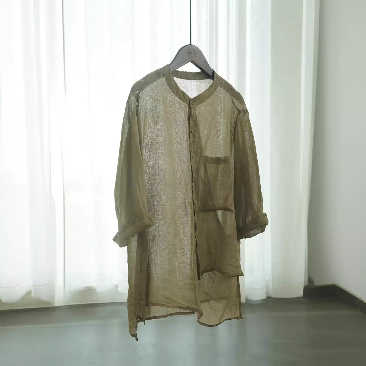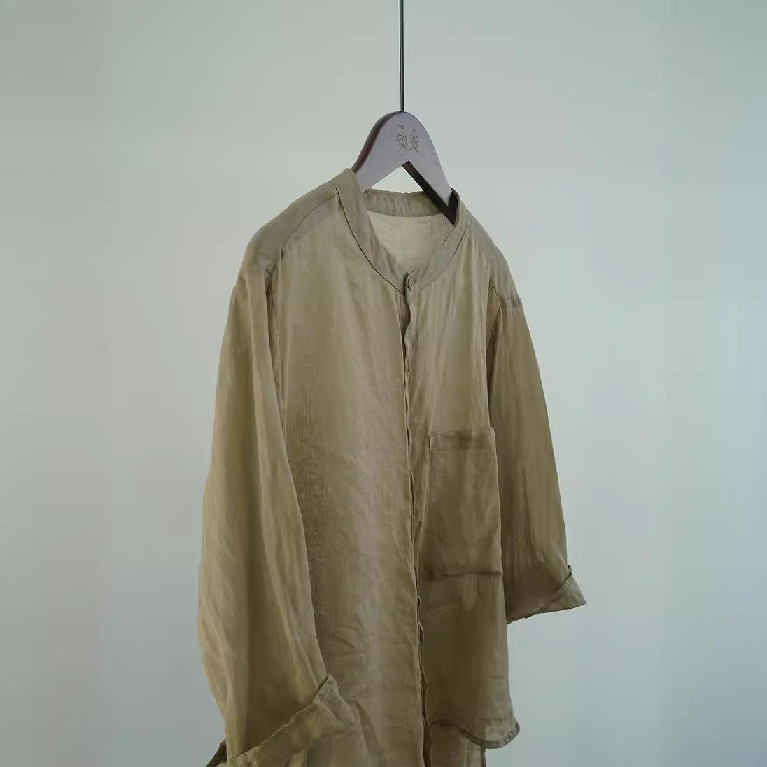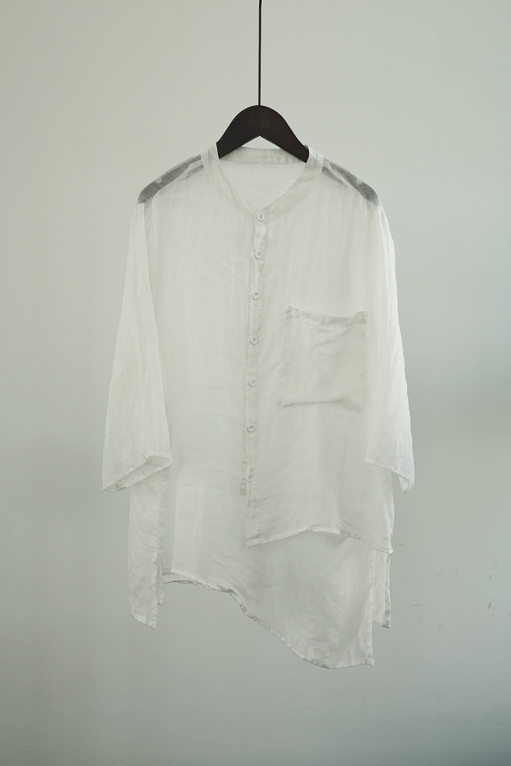 Literary and casual irregular ramie shirt, niche design retro tooling stand-up collar seven-quarter sleeve top W22281