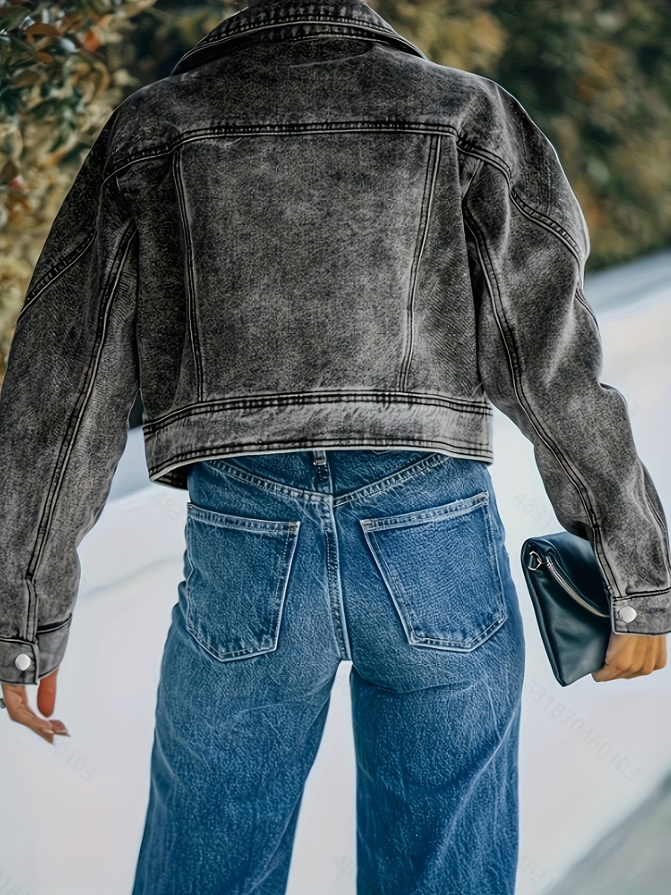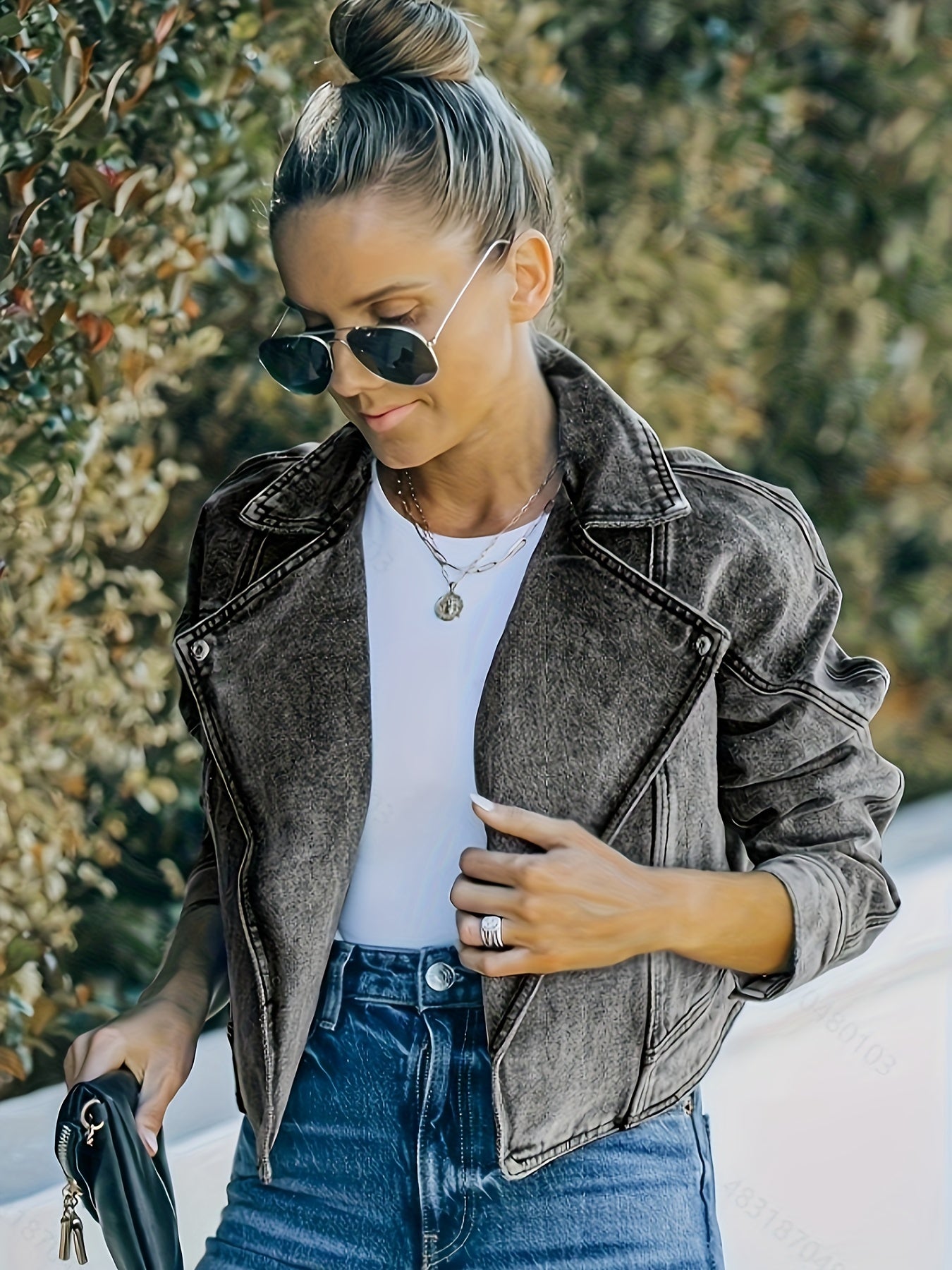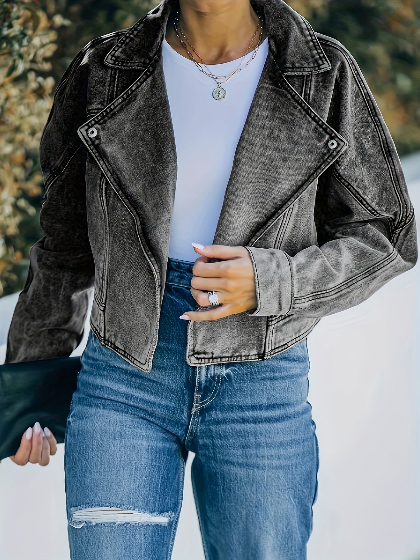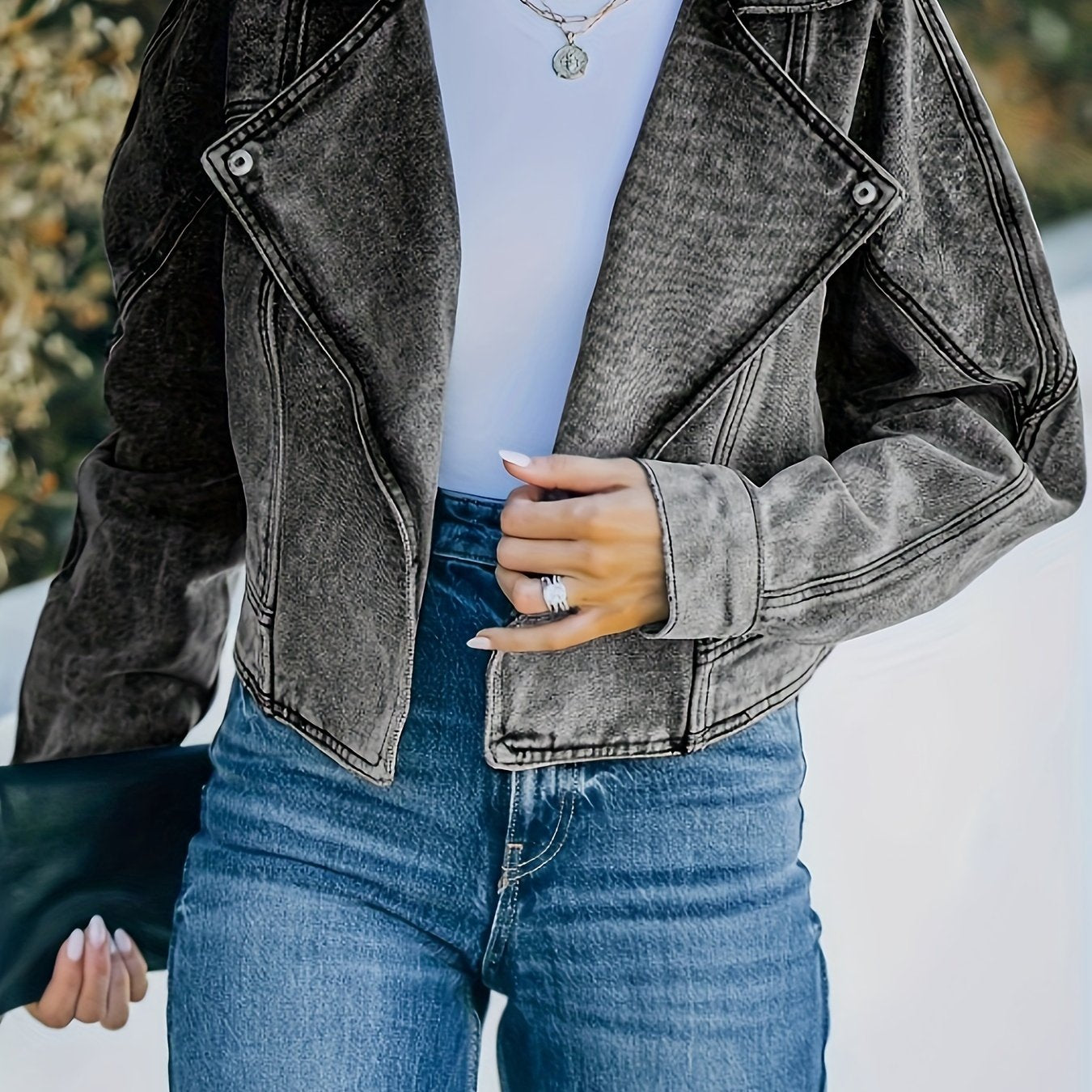 Long Sleeves Lapel Denim Jacket, Non-Stretch Washed Denim Coat, Women's Denim Clothing