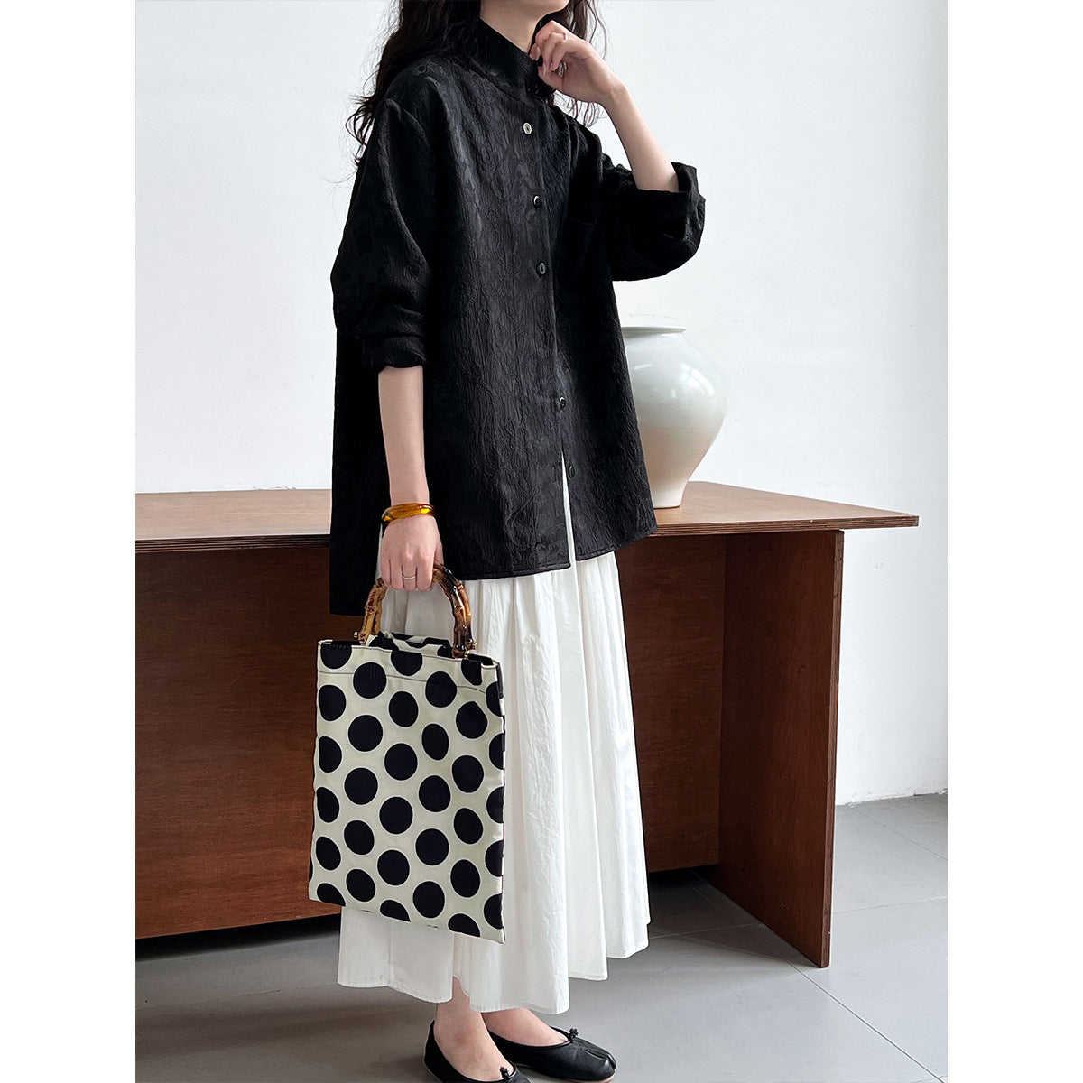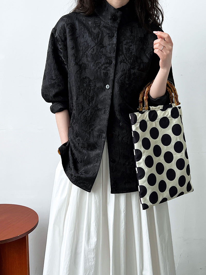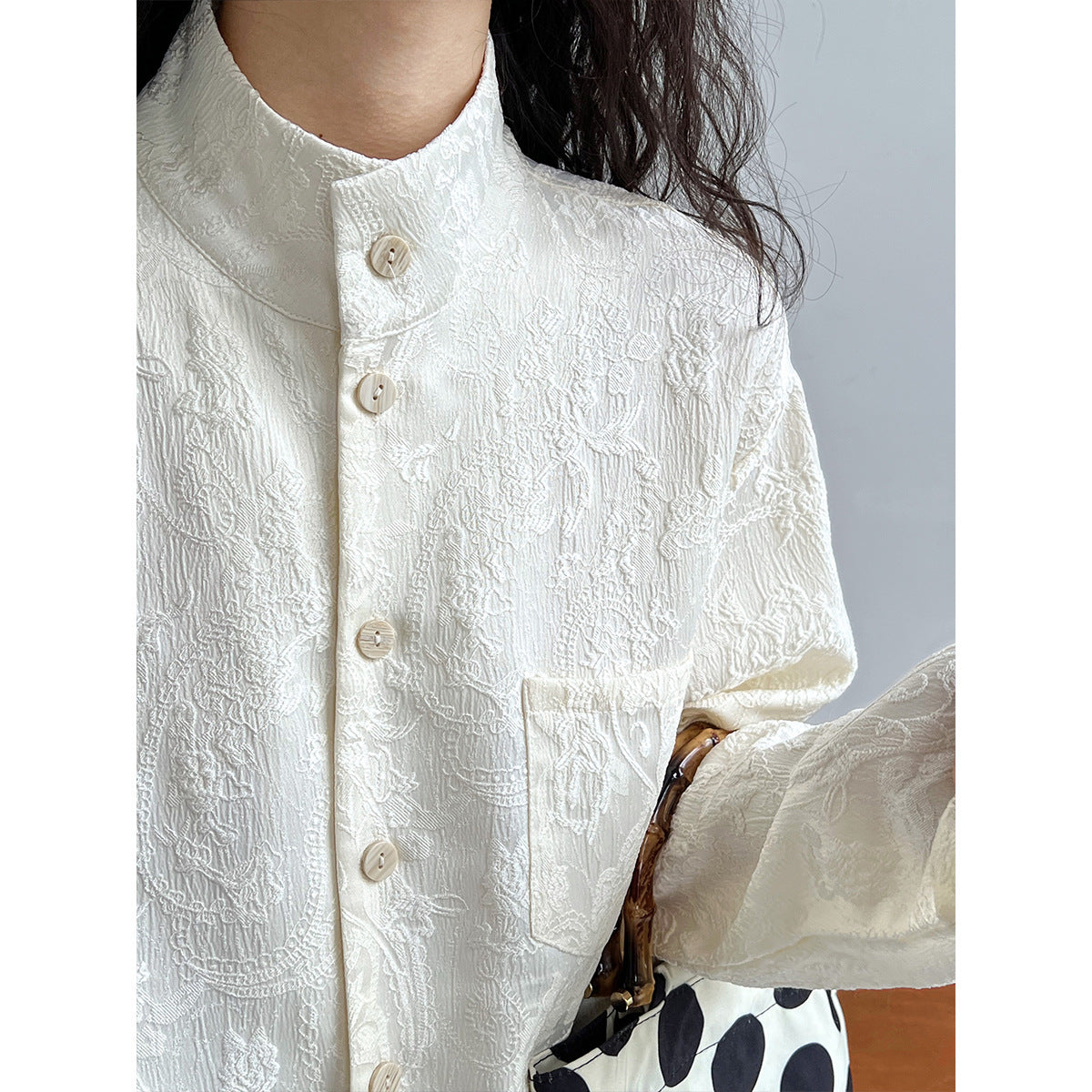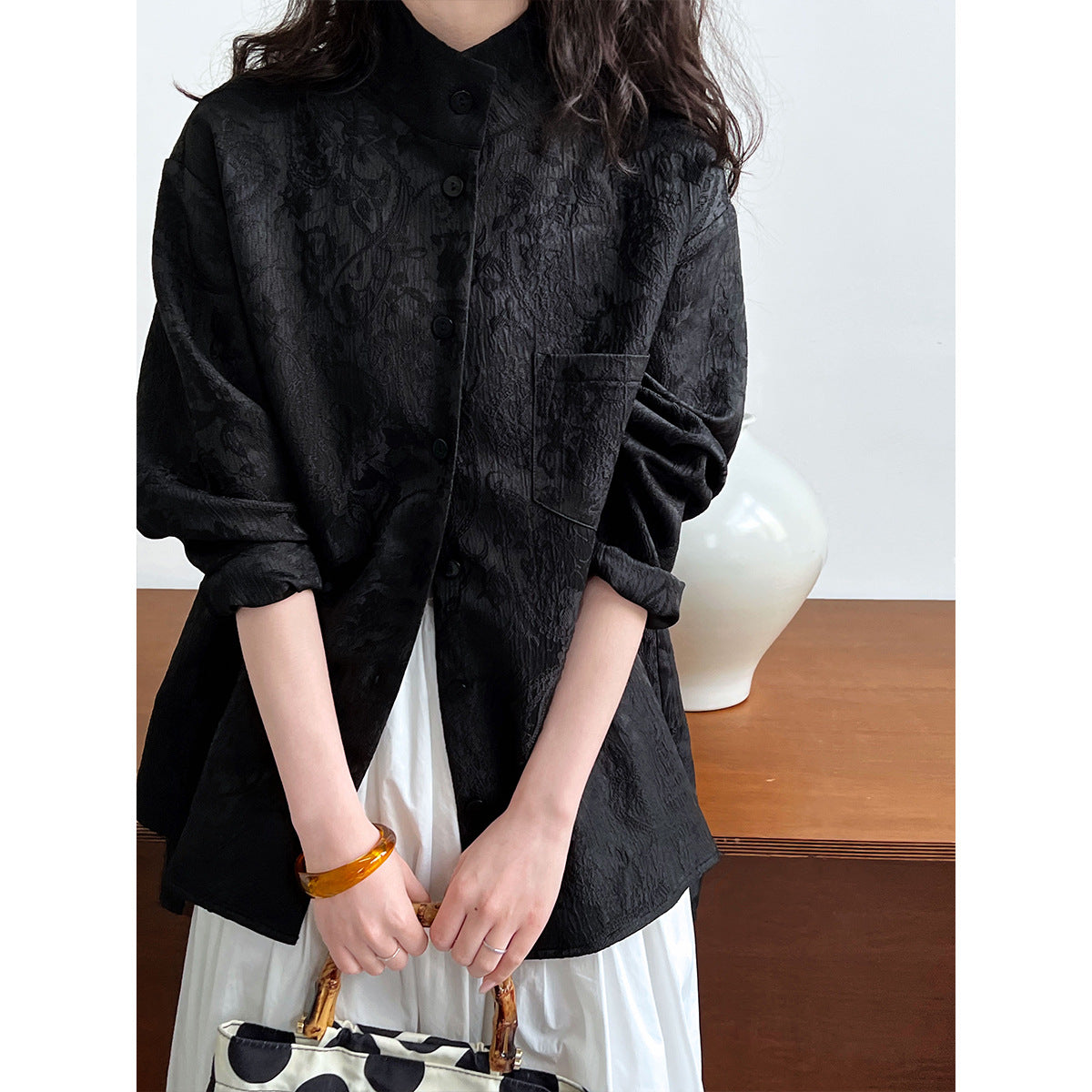 Lu Xi, retro new Chinese style shirt women's autumn texture jacquard stand-up collar high-end commuter top 3380