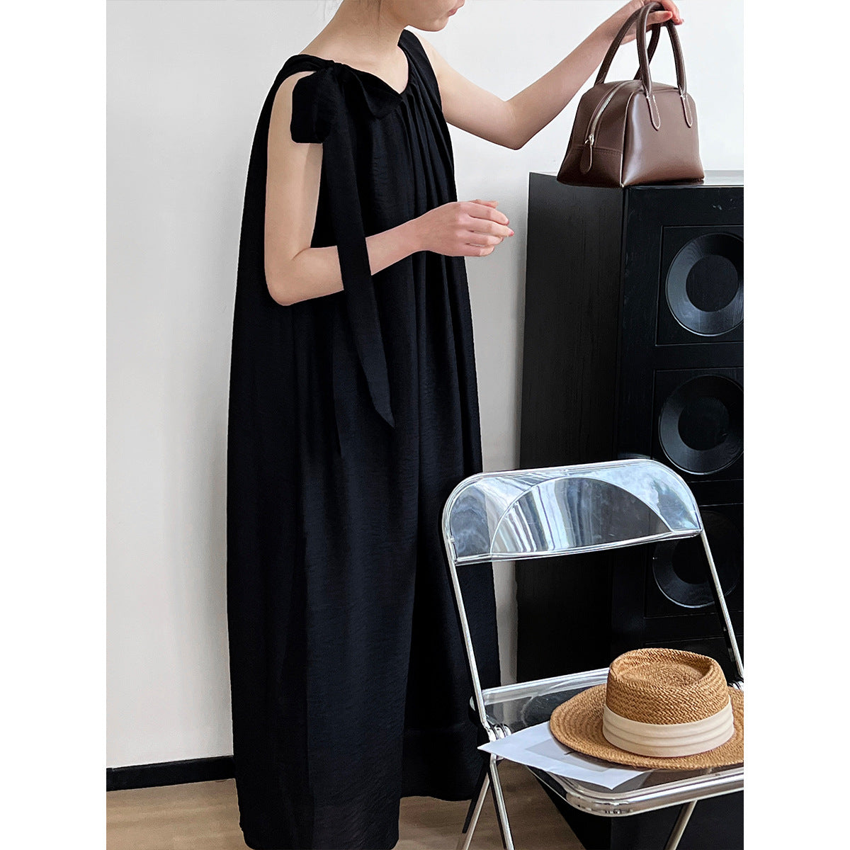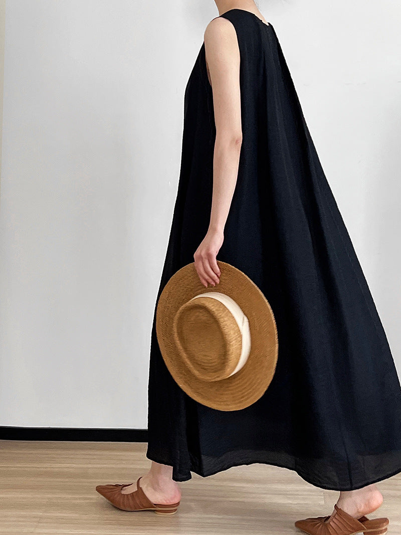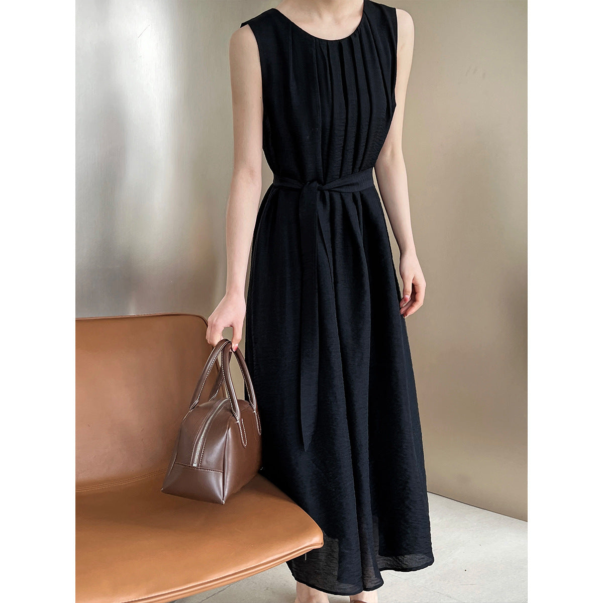 Luxi, imitation linen pleated sleeveless A-shaped dress, thin high-end vest skirt, vacation dress 3210