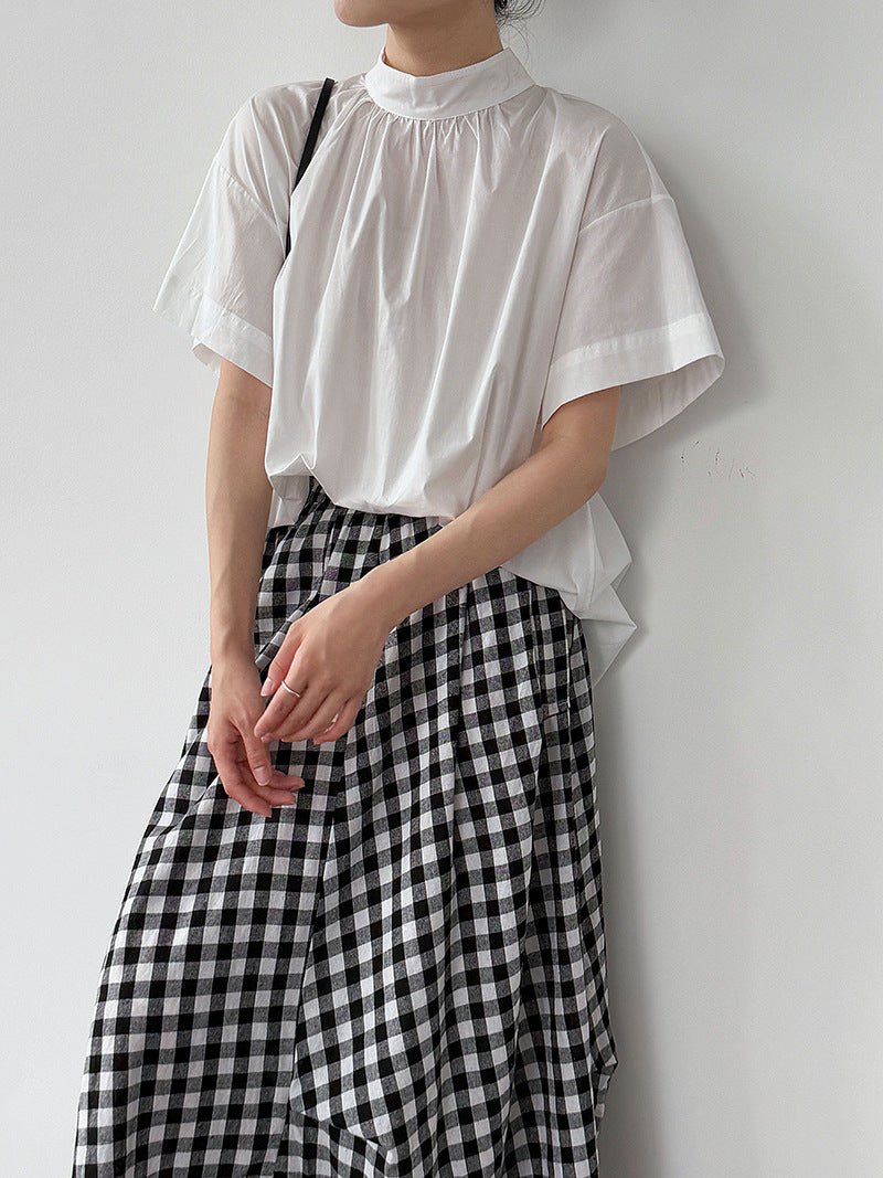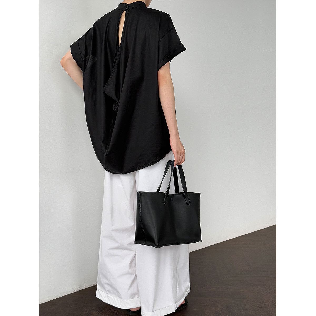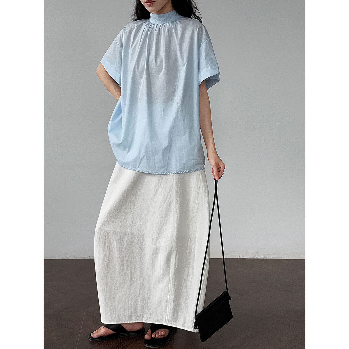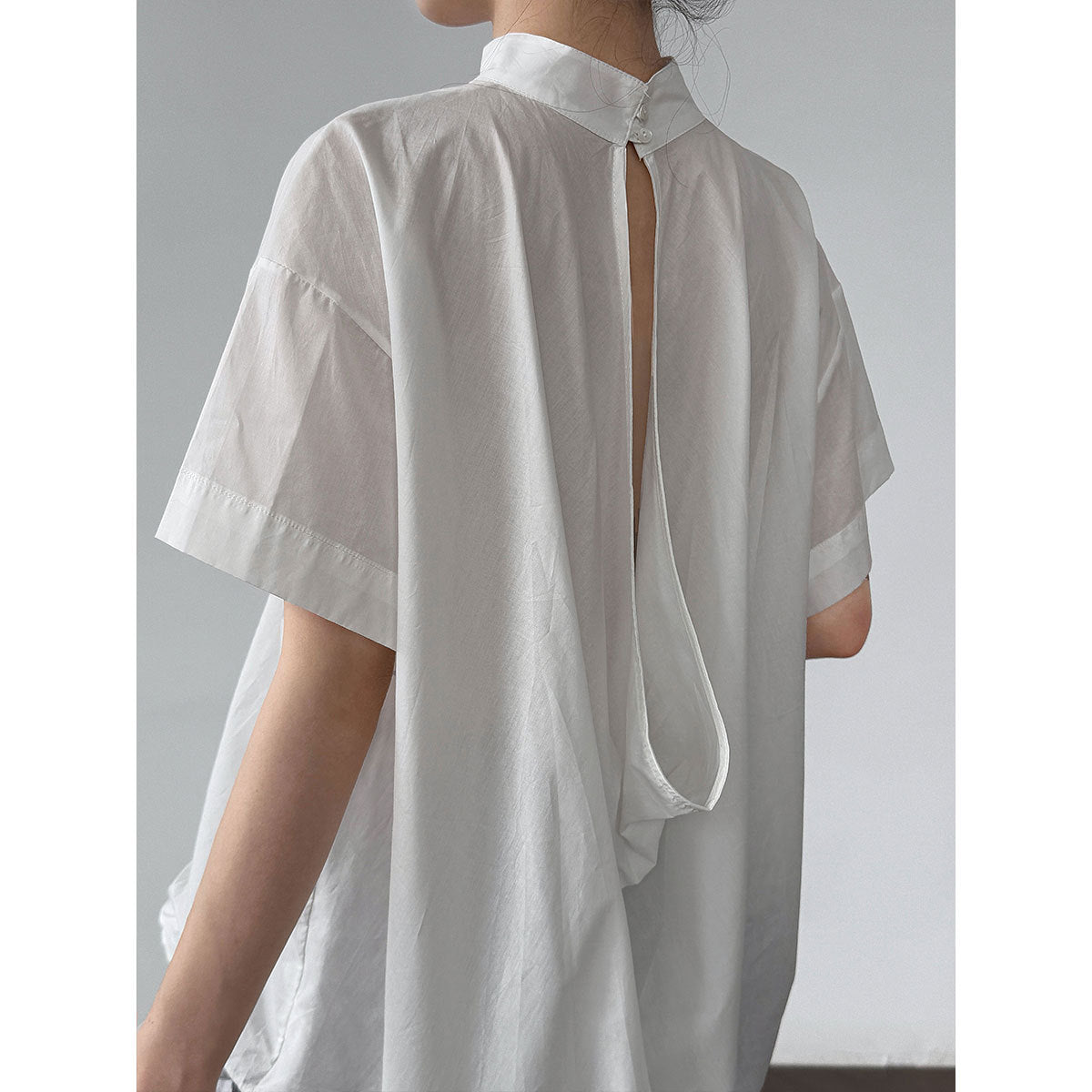 Luxi Korean design sense niche back hollow shirt women's summer new light and thin stand-up collar short-sleeved shirt 3606