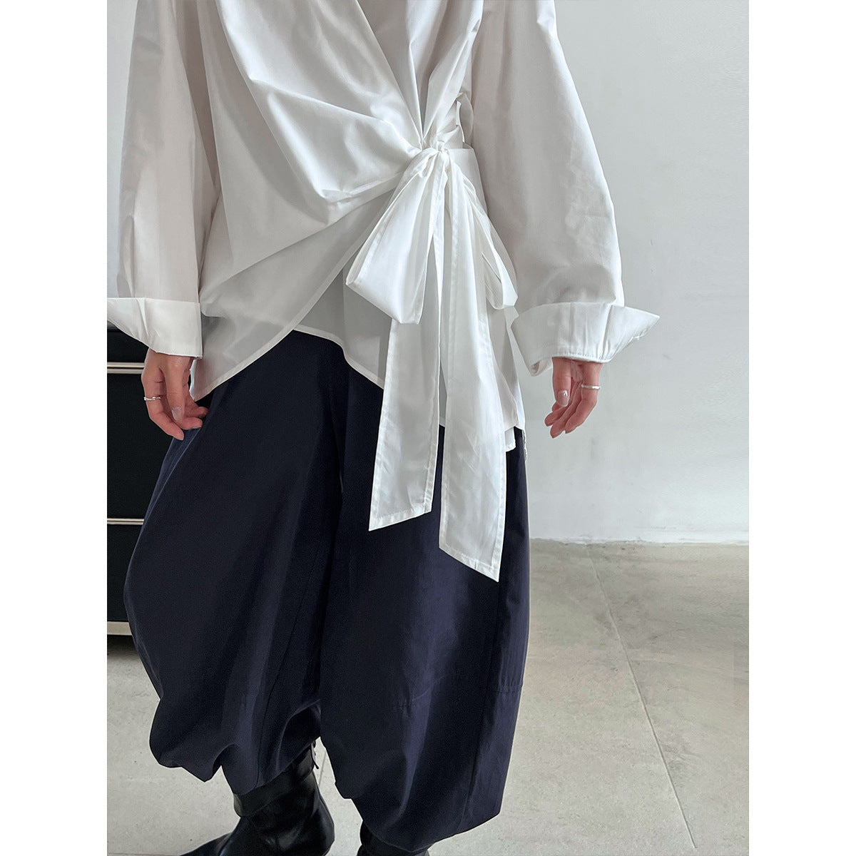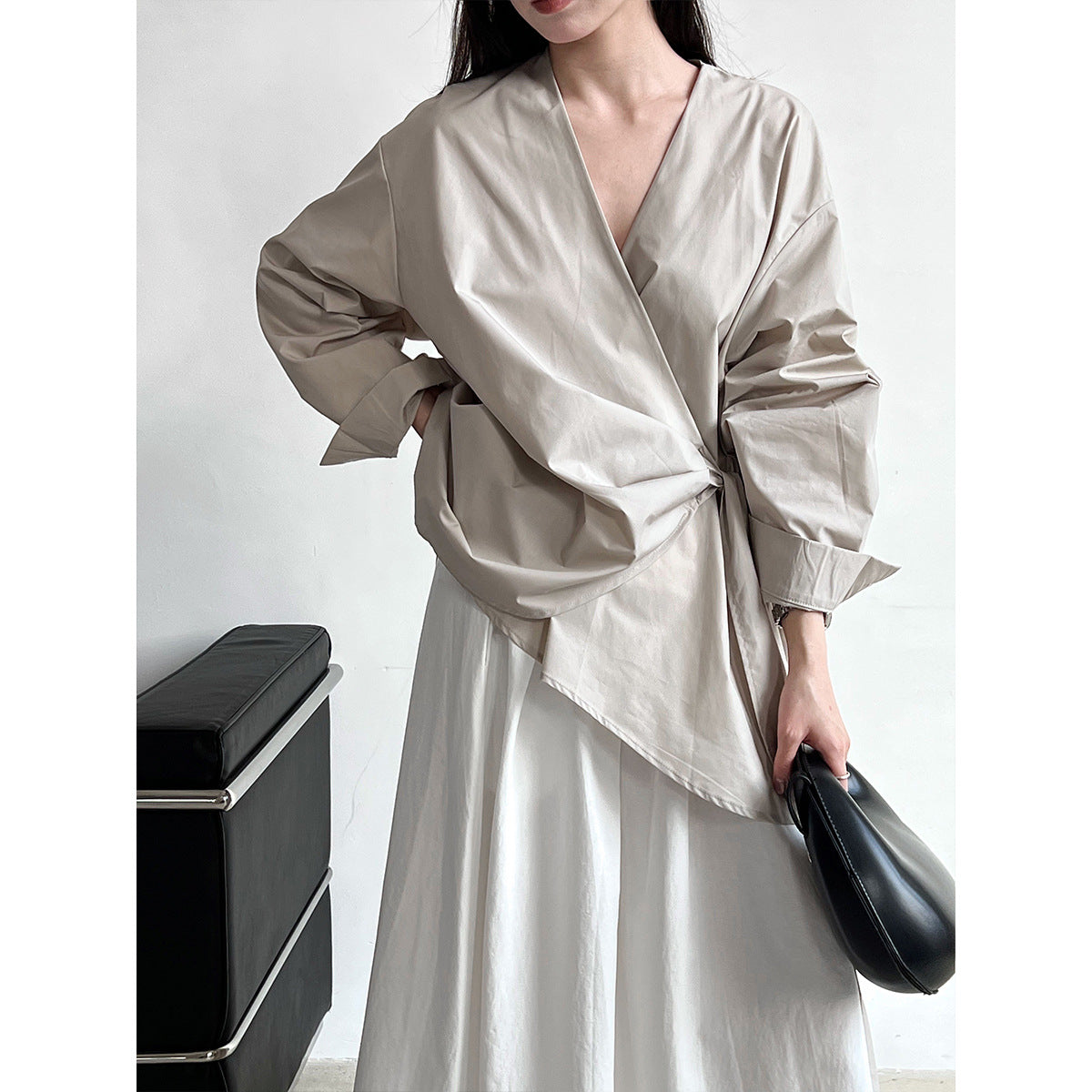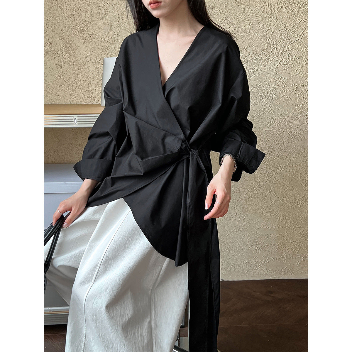 Luxi, Korean irregular waist strap shirt women's spring casual niche design one-piece top 3563