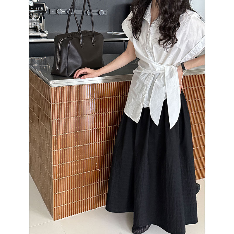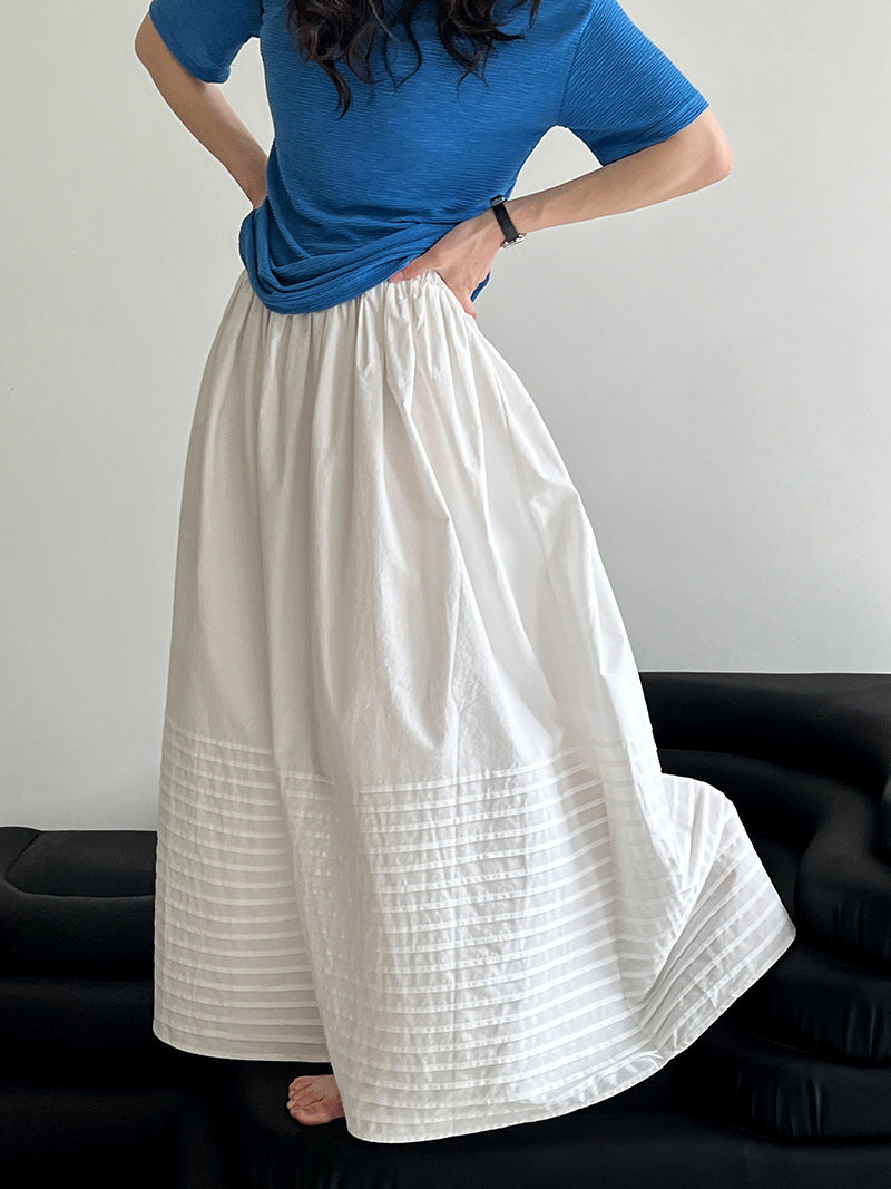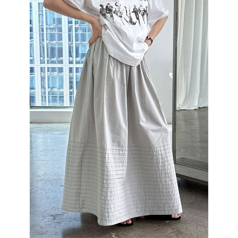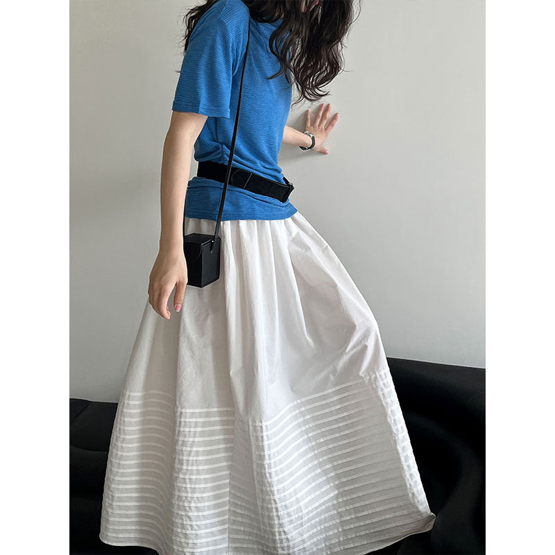 Luxi, Korean simple straight striped pleated skirt for women's summer new heavy industry high-waisted A-shaped umbrella skirt 3591