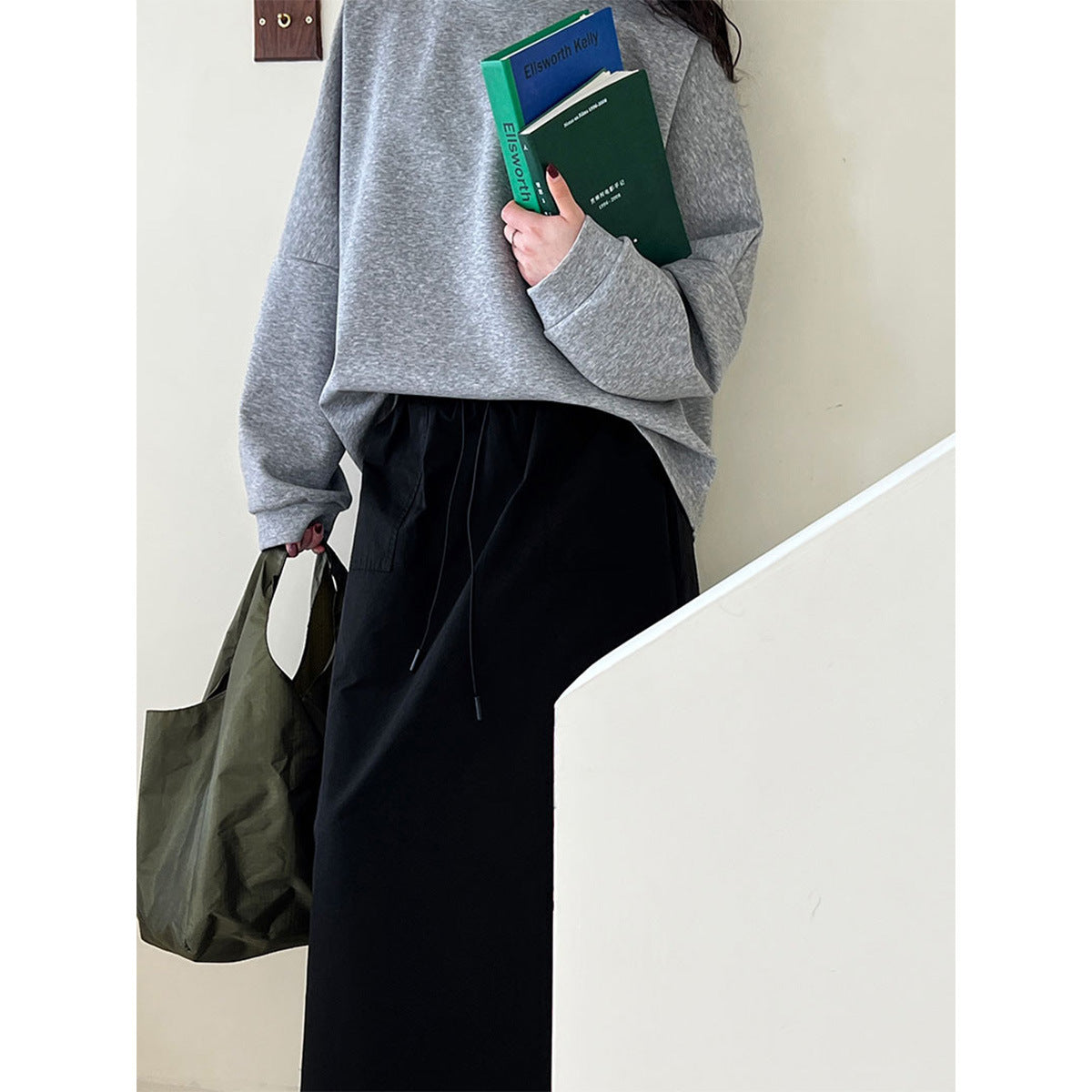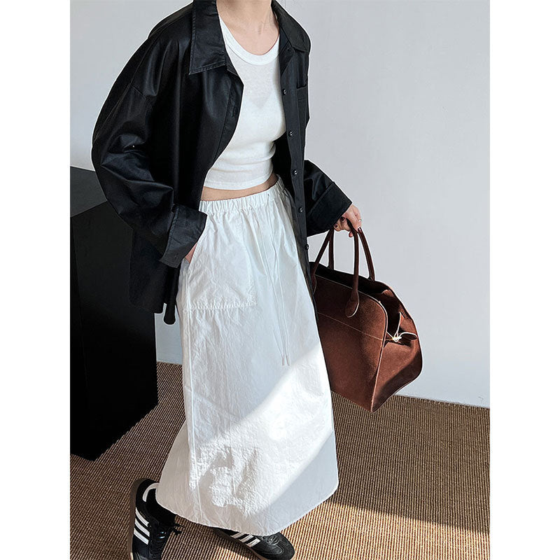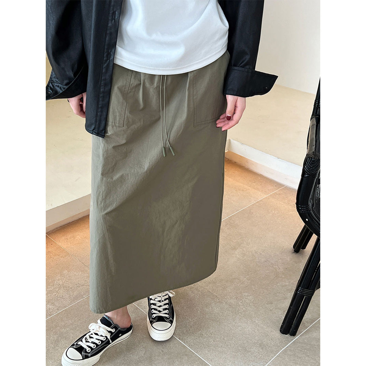 Luxi, retro drawstring tooling skirt new design sense thin straight skirt high waist skirt 9617