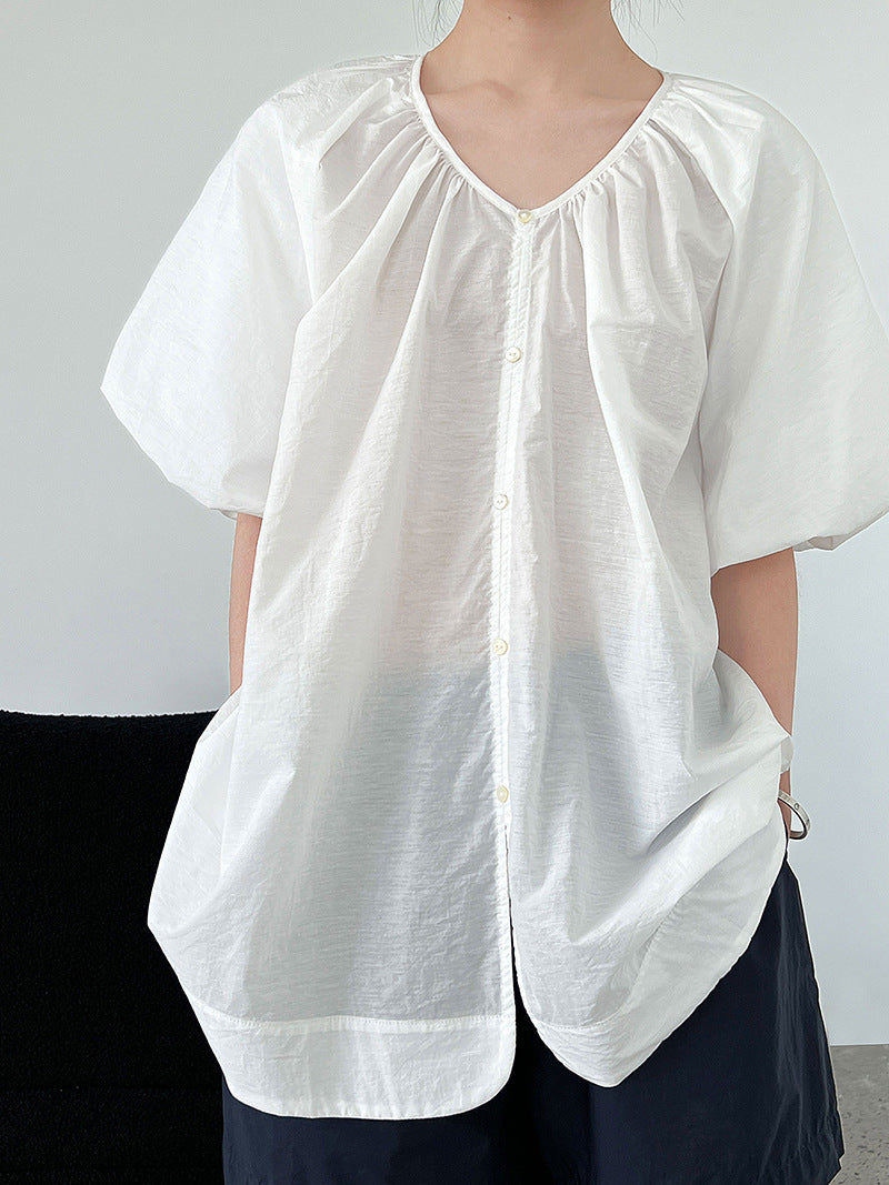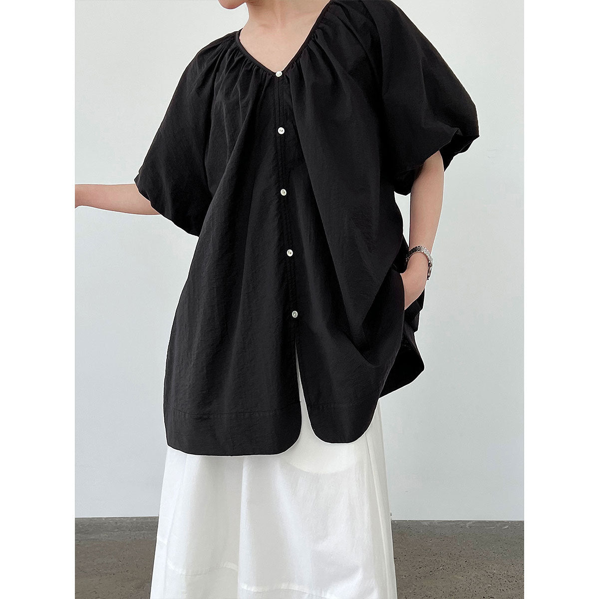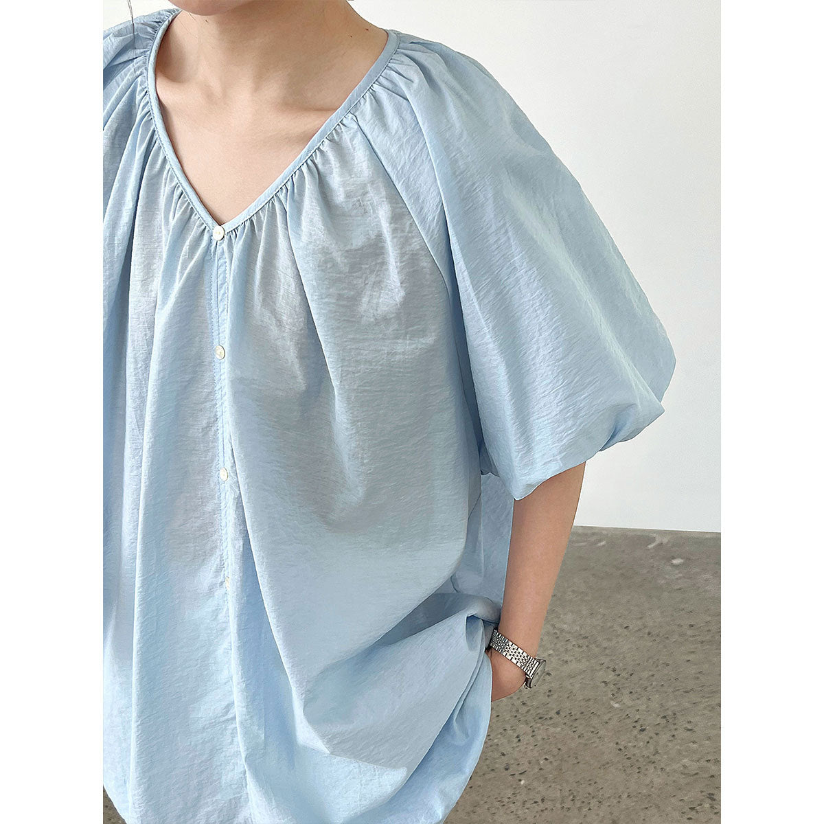 Luxi, V-neck lazy bubble sleeve shirt women's summer new two-sided cardigan loose casual top 9746