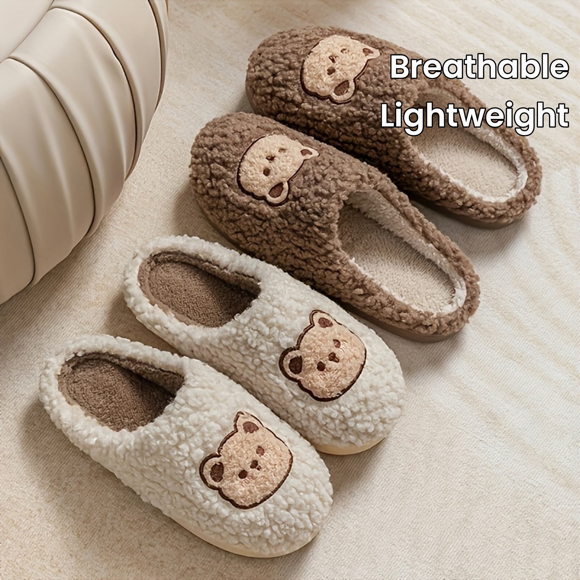 Mens Adorable Cartoon Bear Slippers - Ultra-Cozy, Featherweight & Anti-Slip - Luxurious Fleece Lined Slip-on Shoes for Indoor Leisure - Perfect for Autumn & Winter