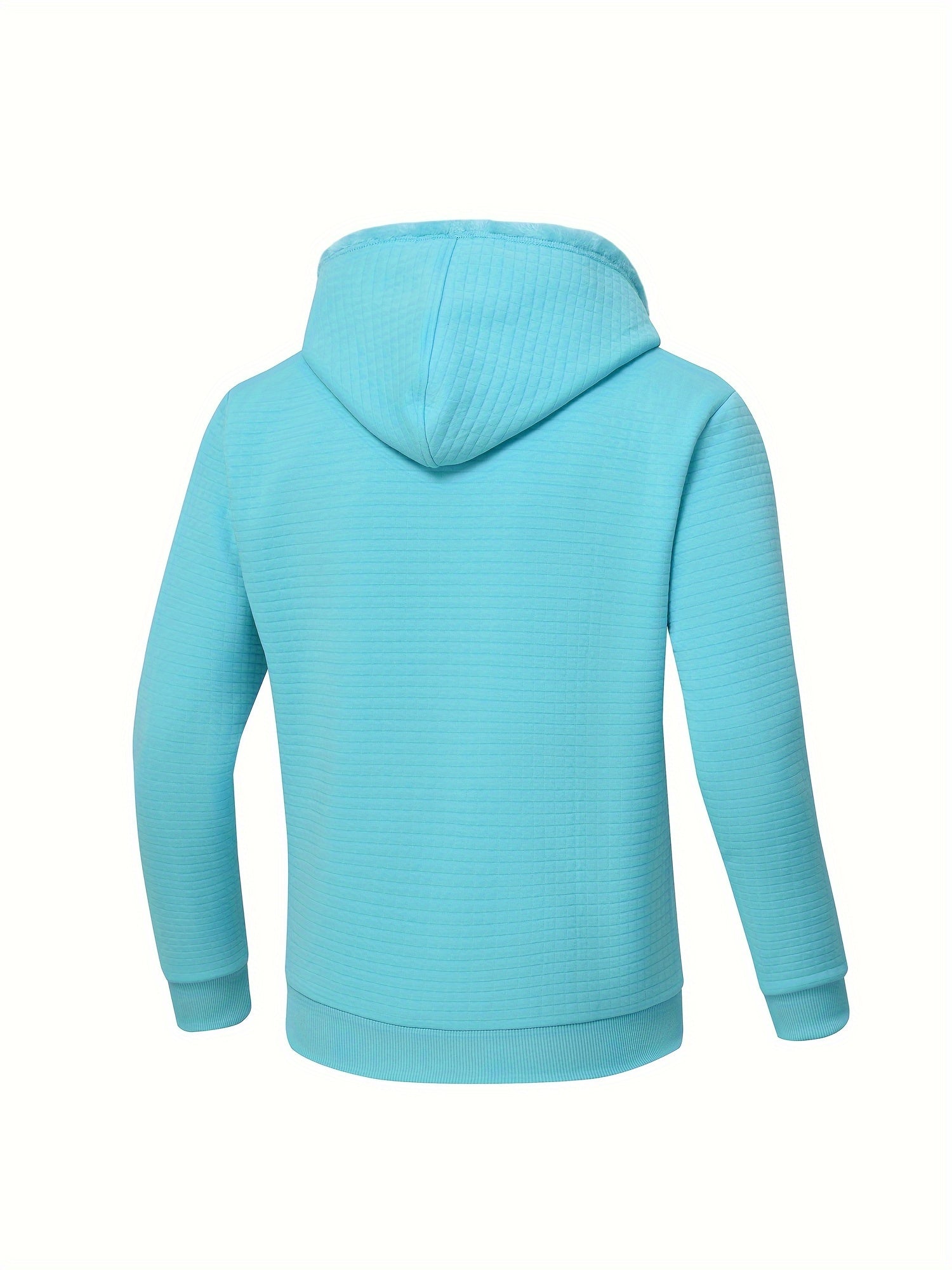 Men's Plus Size Waffle Knit Hooded Fleece Jacket, Casual Long Sleeve Zipper Hoodie With Inner Pockets