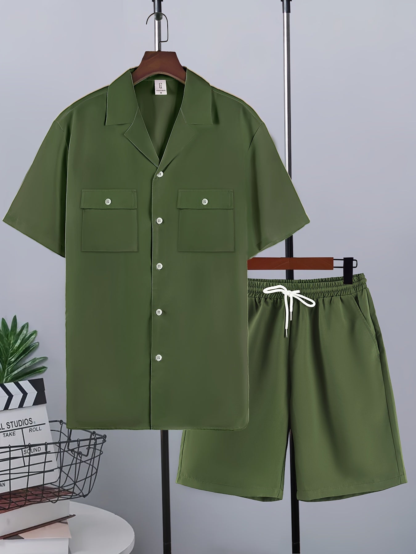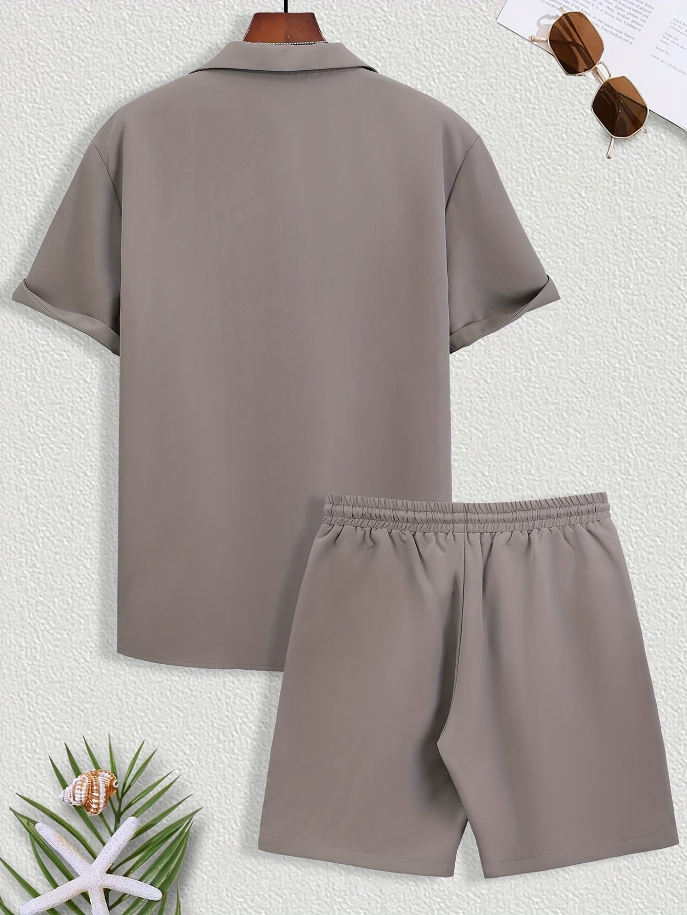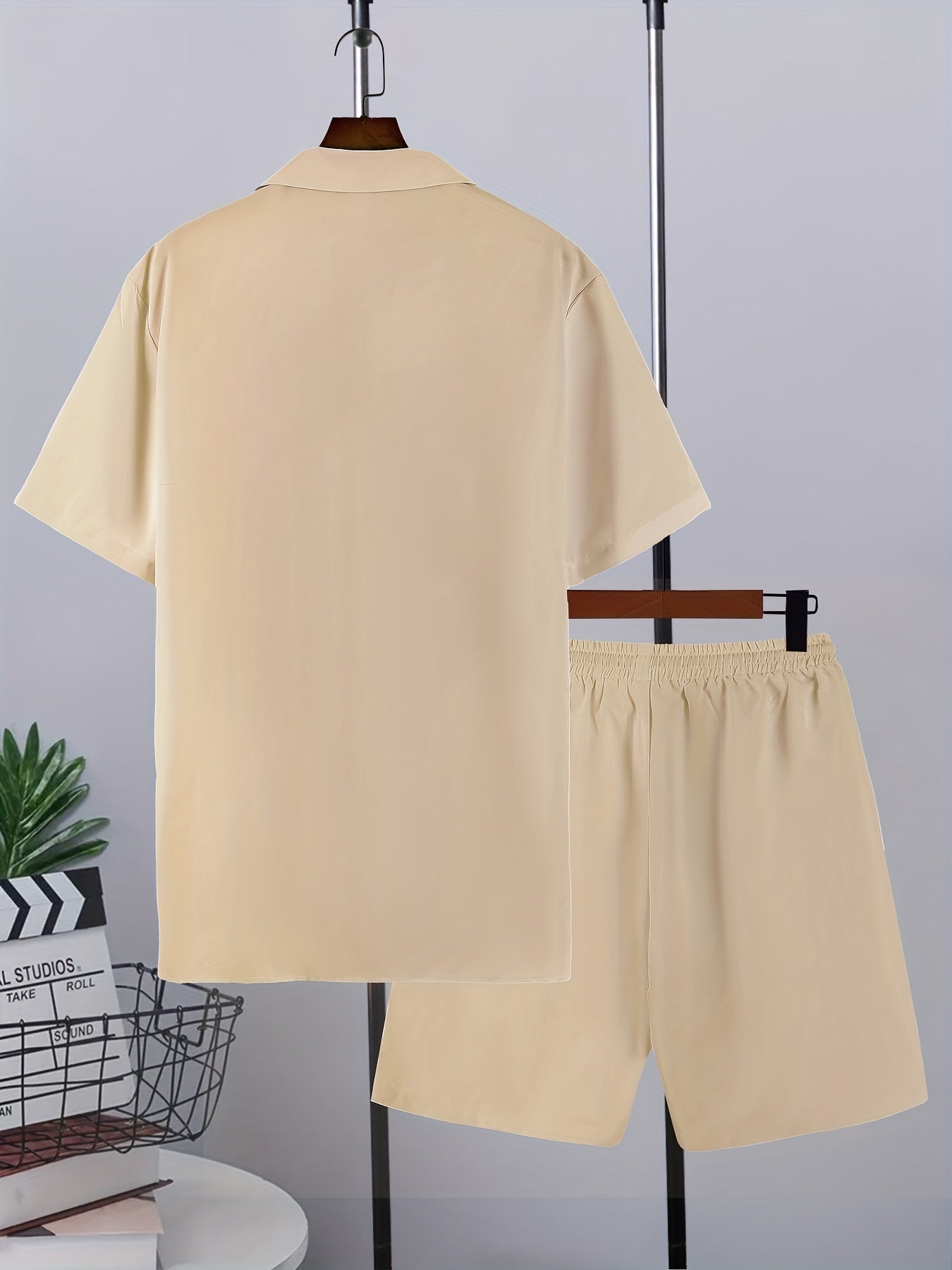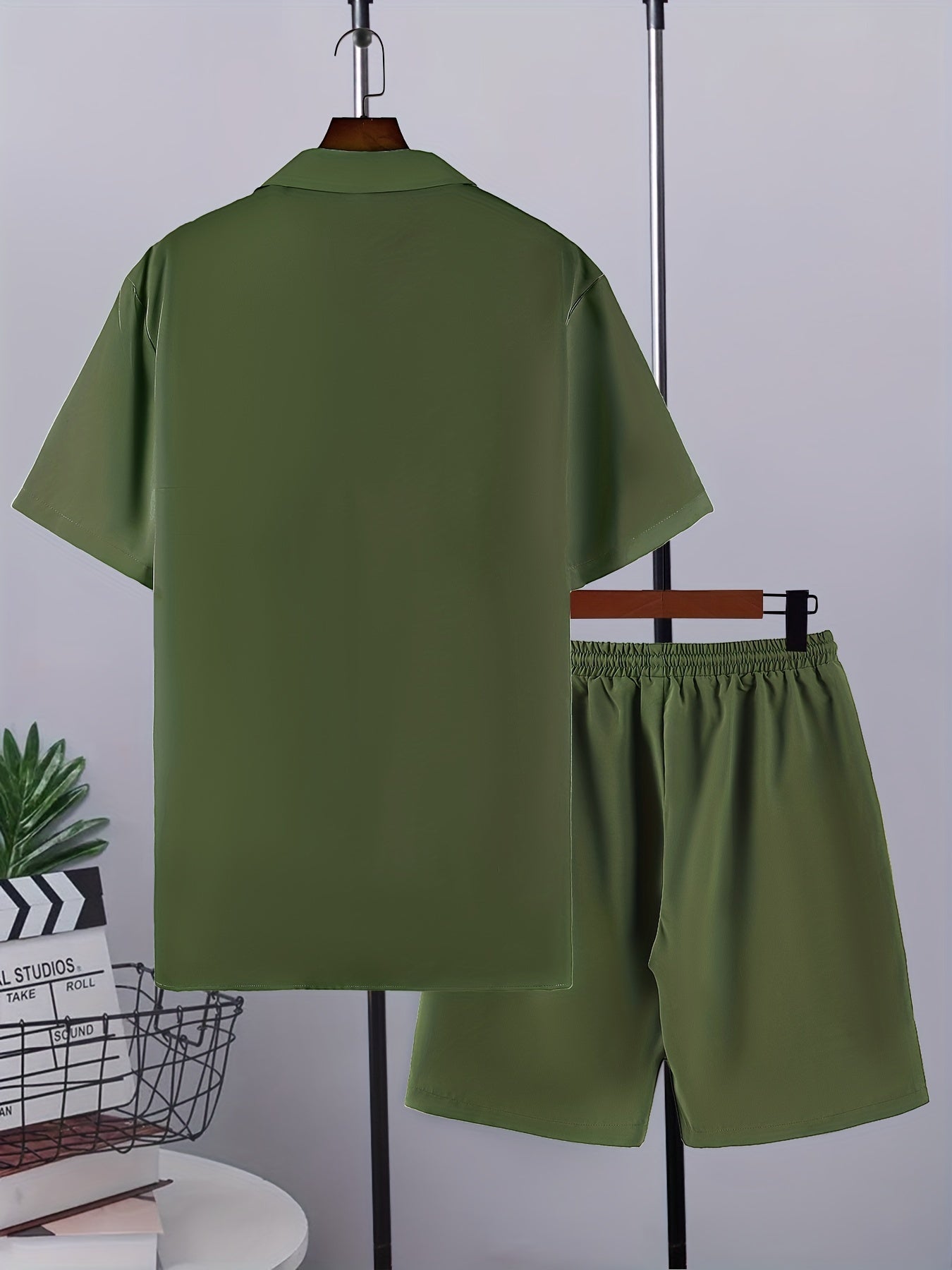 Mens Stylish Lapel Outfit Set - 2 Piece Short Sleeve & Shorts - Ultra-Comfortable Loose Lounge Wear for Effortless Casual Days