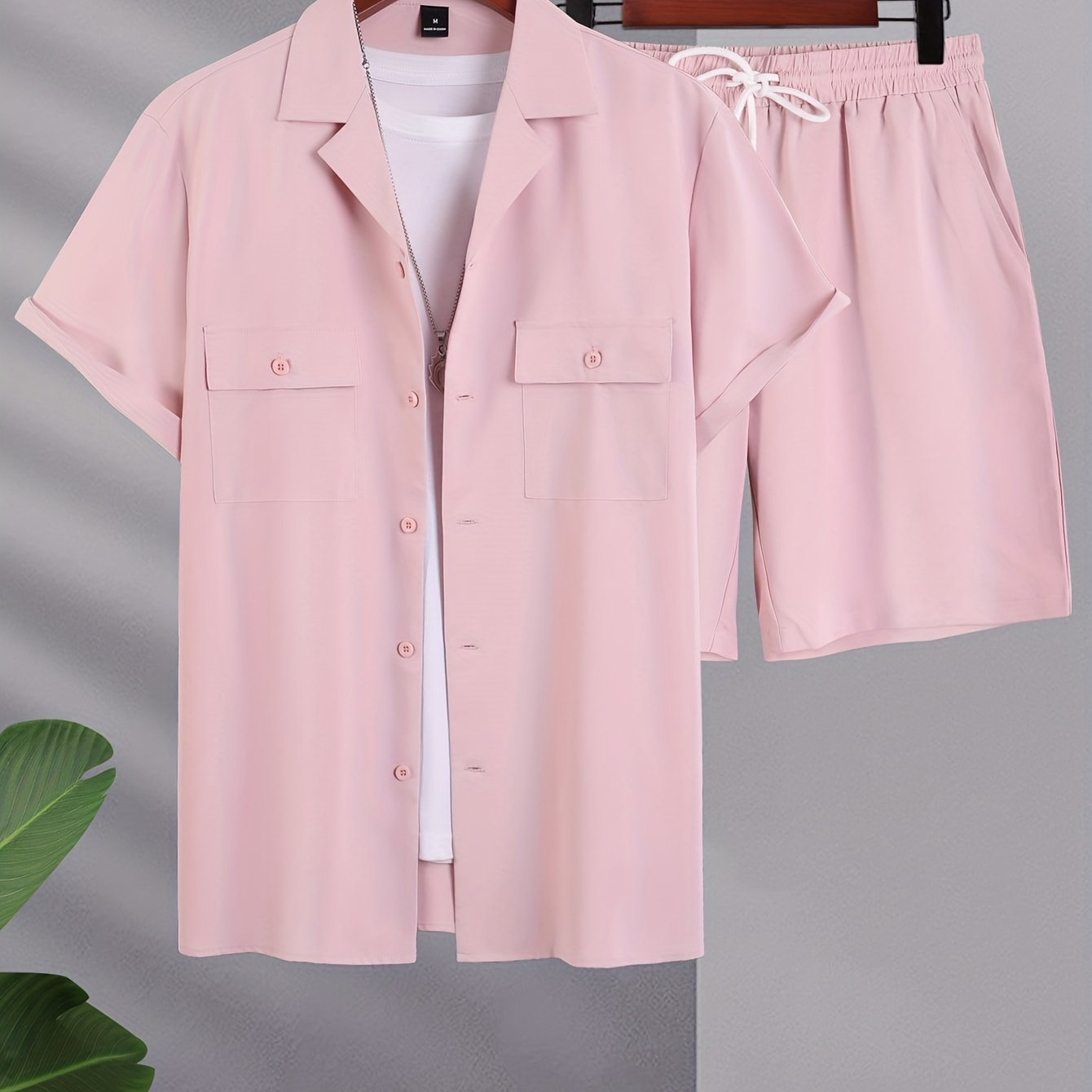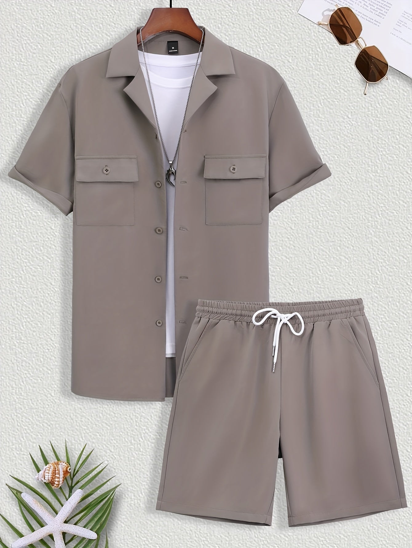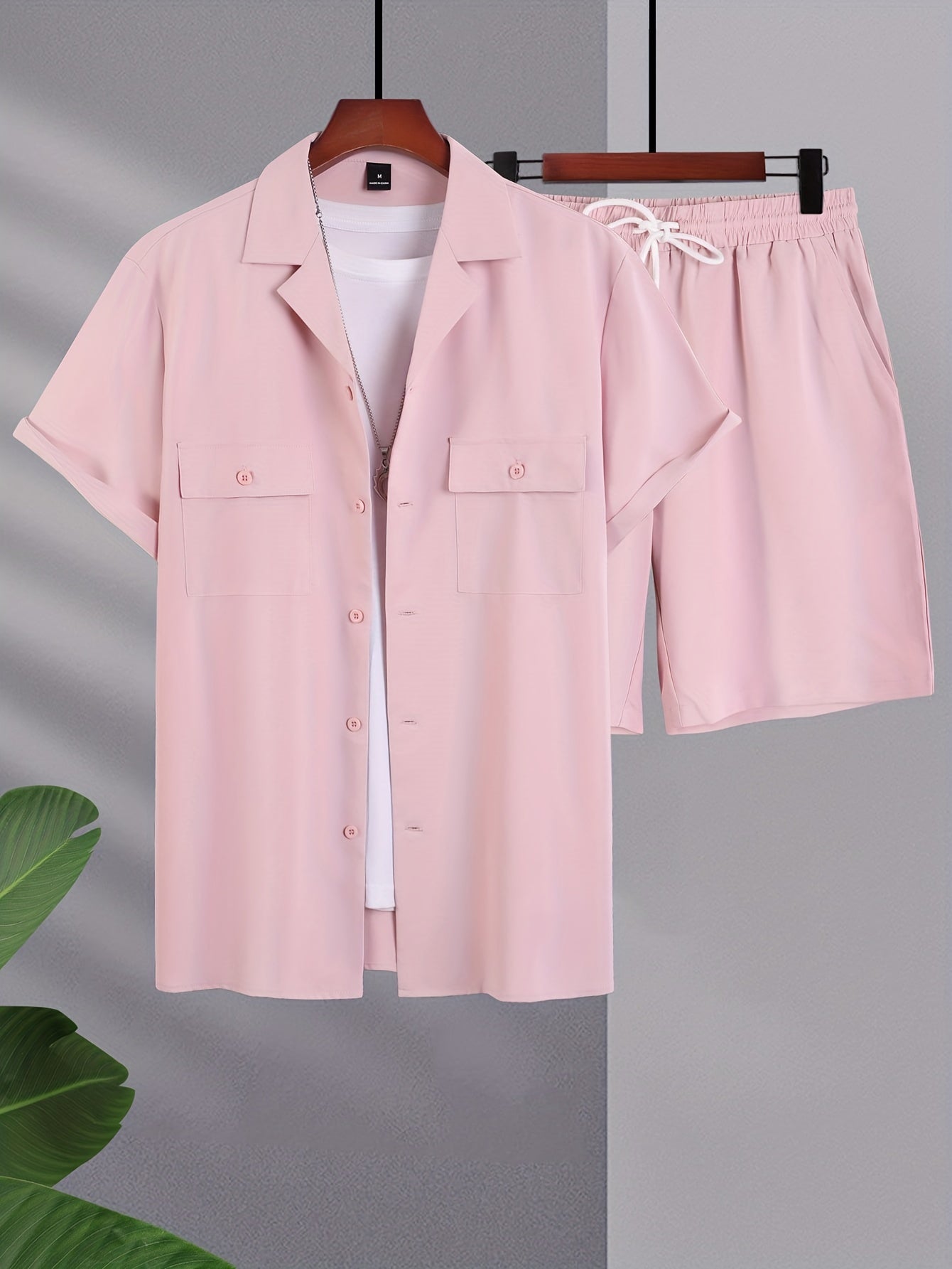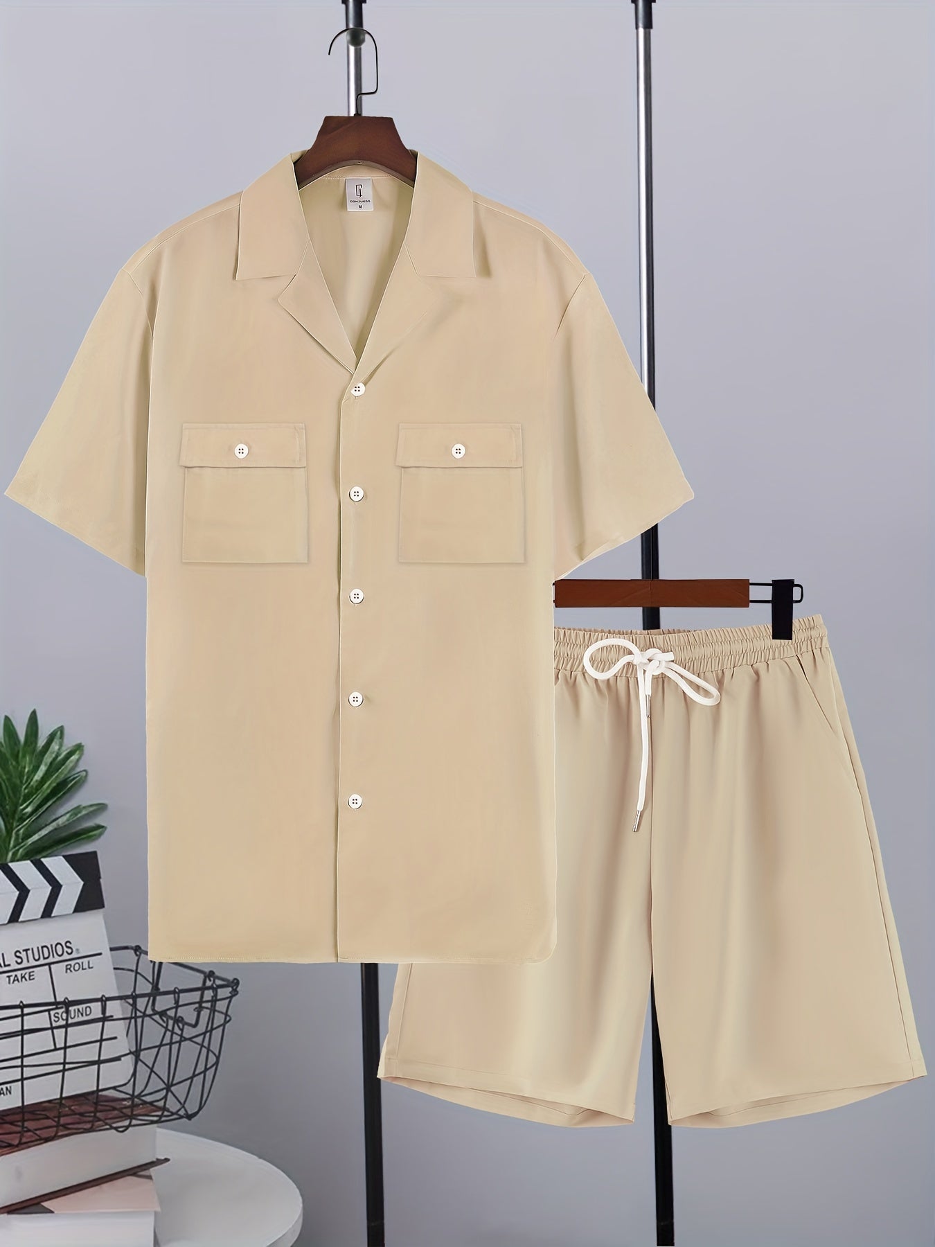 Mens Stylish Lapel Outfit Set - 2 Piece Short Sleeve & Shorts - Ultra-Comfortable Loose Lounge Wear for Effortless Casual Days