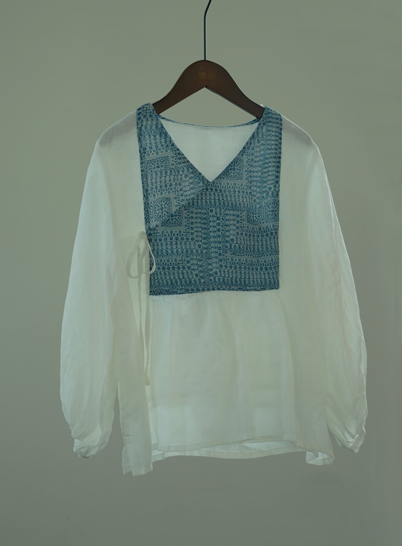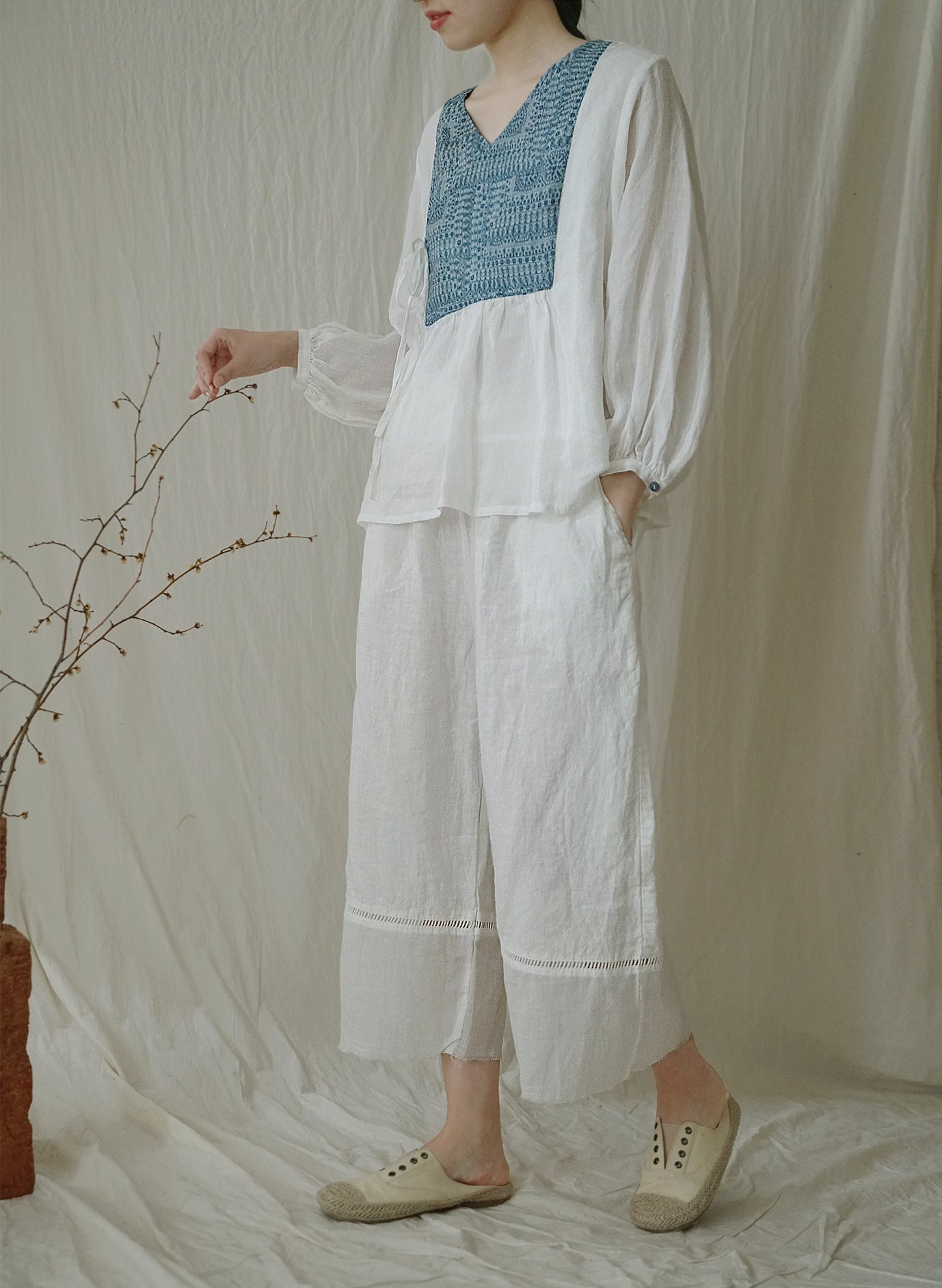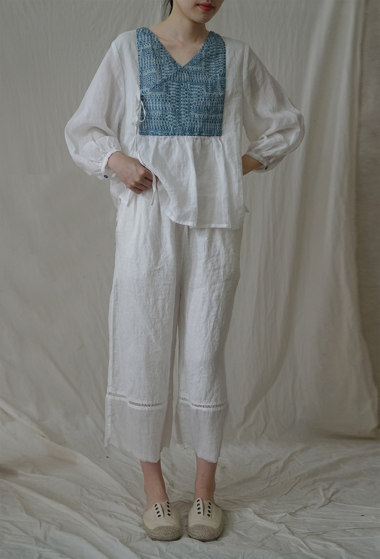 national style literary and artistic diagonal shirt contrasting ramie shirt, retro light Chinese pastoral lace-up top S22264