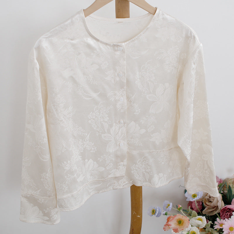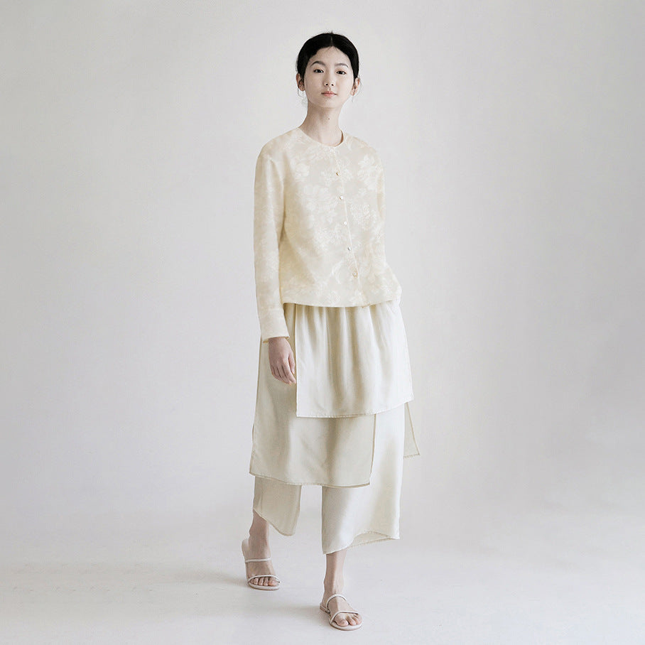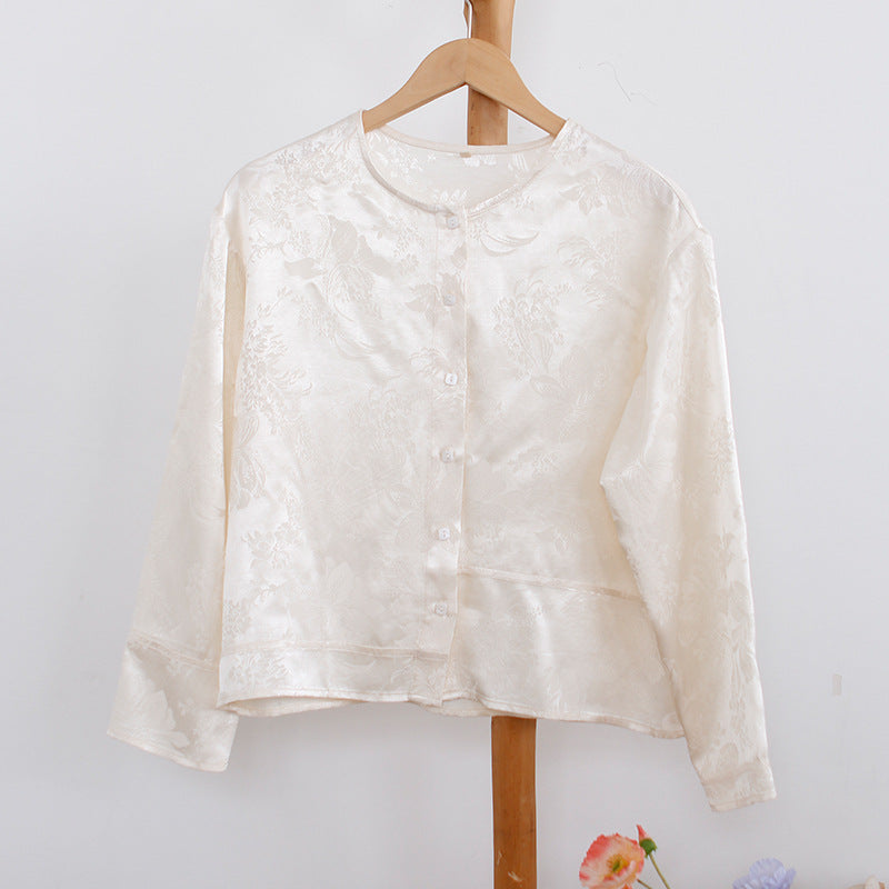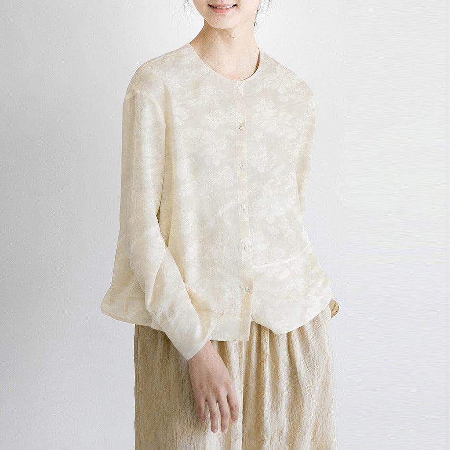 New Chinese top women's summer, shirt women's spring and summer, Chinese women's clothing, beige round neck casual cardigan B0456