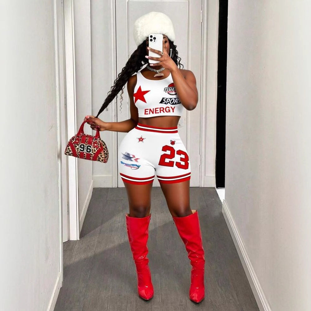new summer New sexy Spice Girls printed suspender top vest waist hip shorts suit women