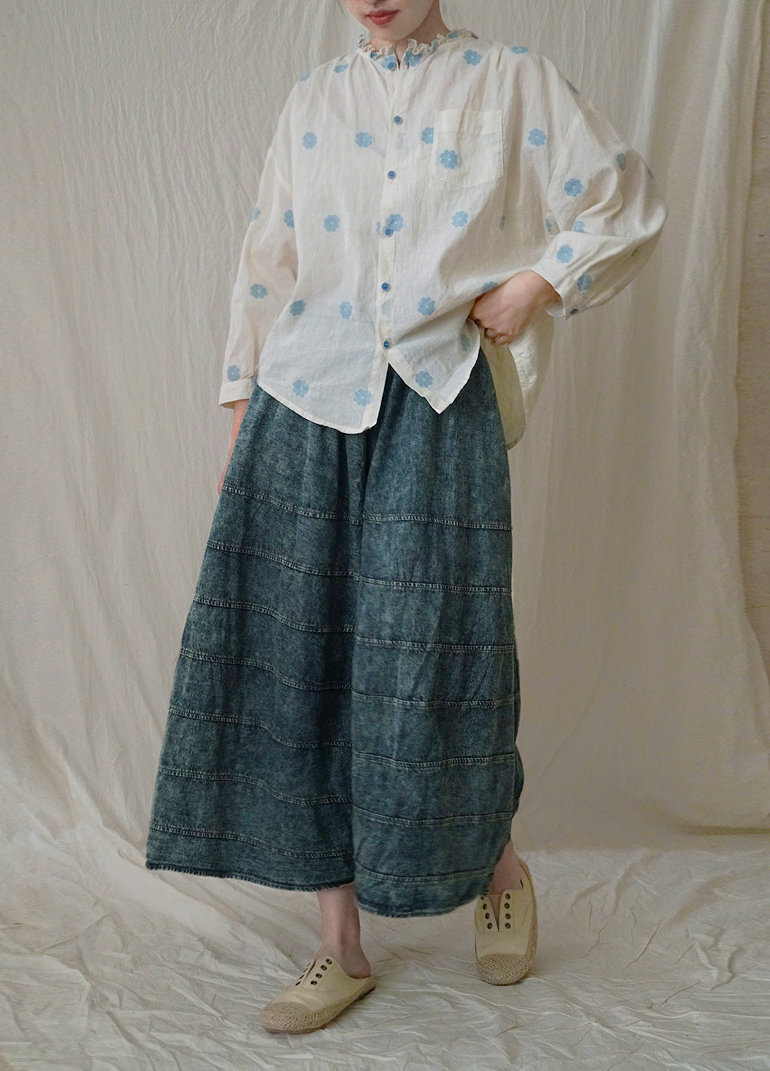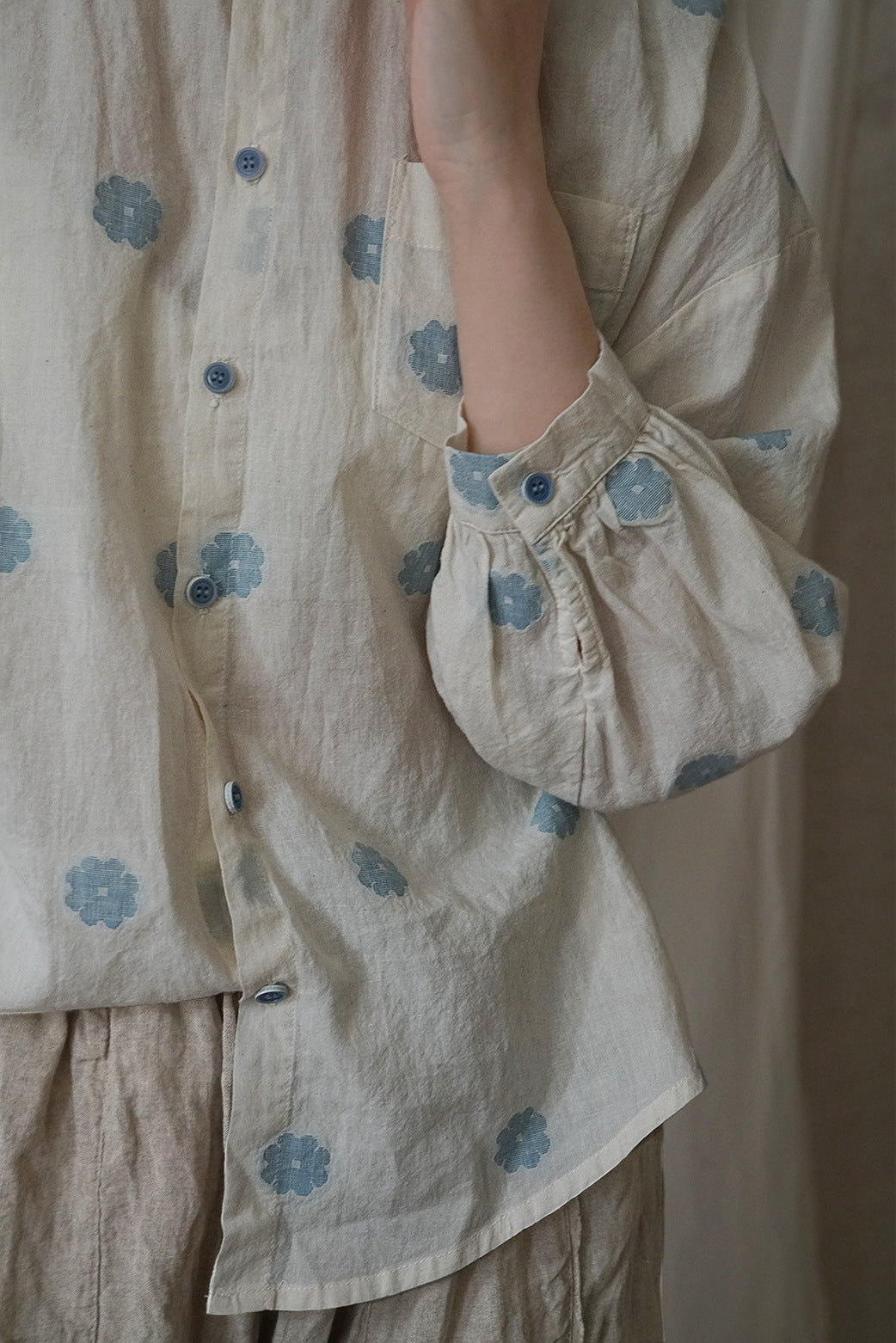 pastoral life daisy jacquard color matching shirt, retro early autumn loose fun top S22274