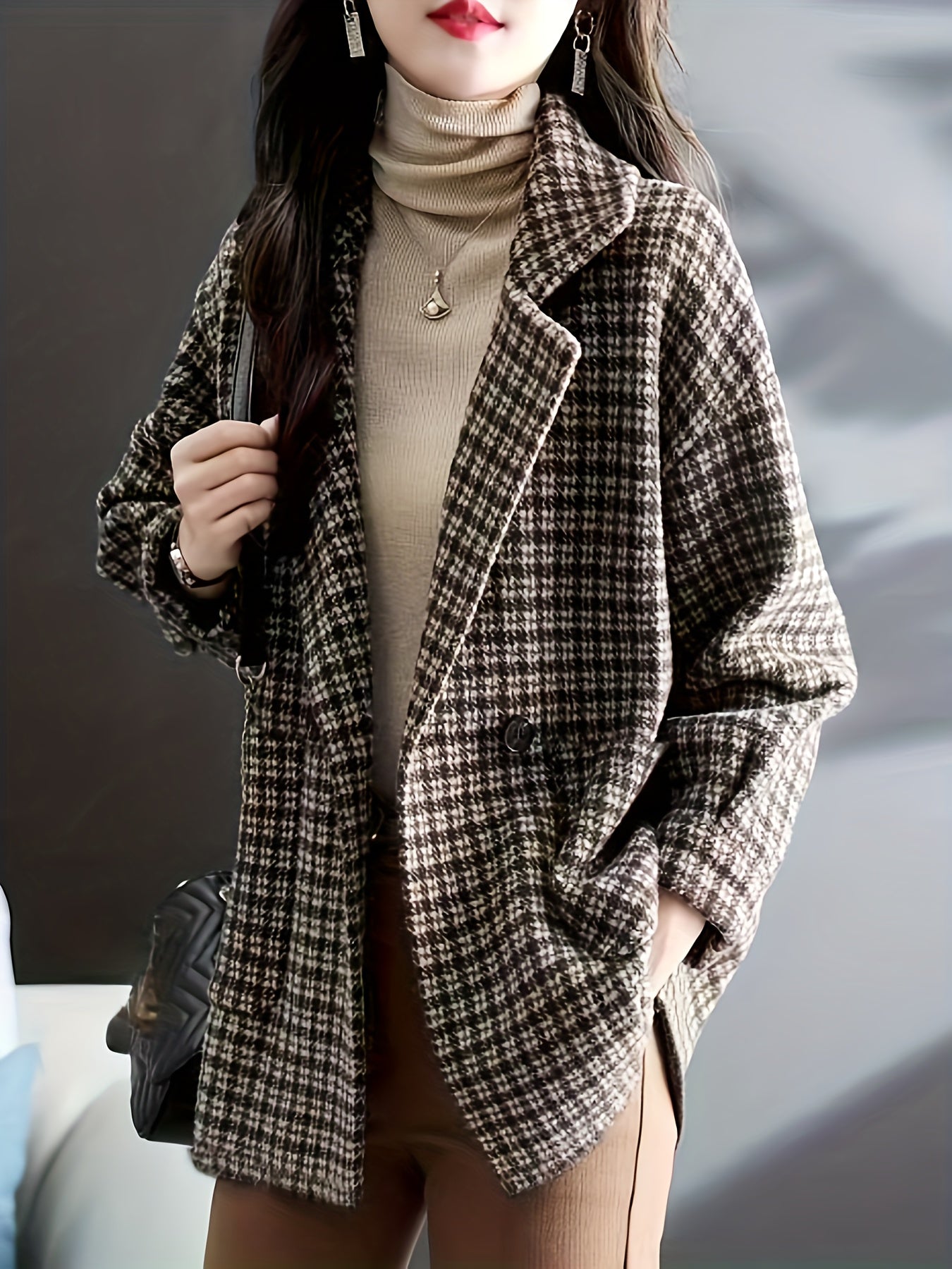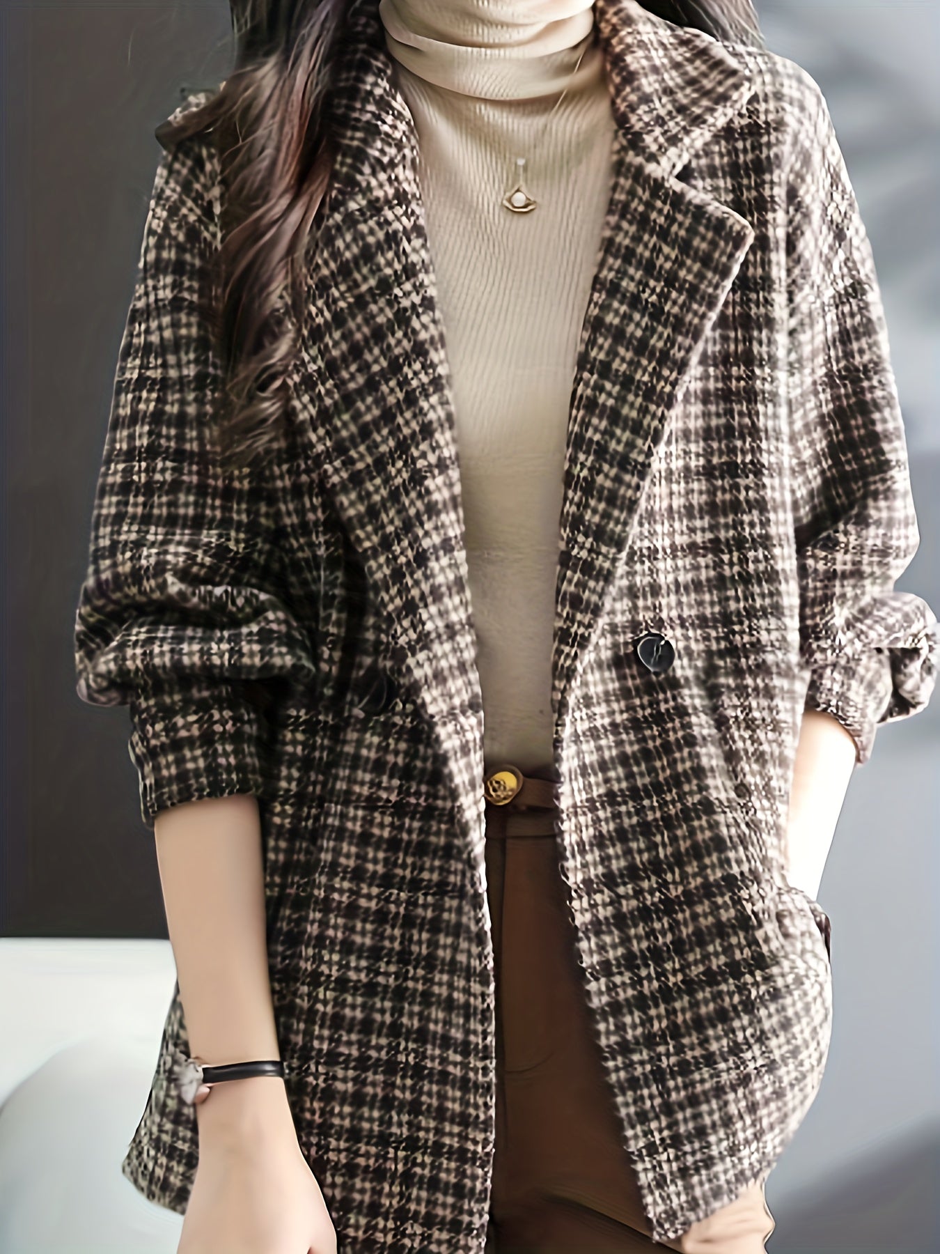 Plaid Lapel Coat, Casual Open Front Long Sleeve Versatile Outerwear, Women's Clothing