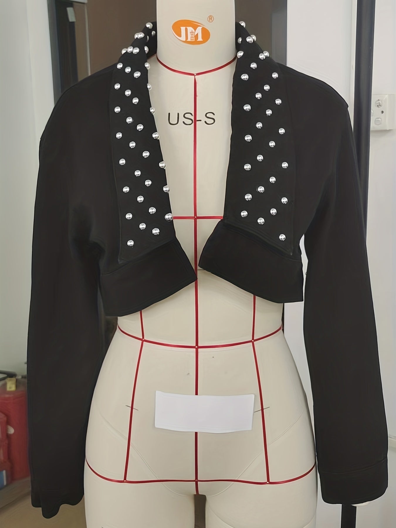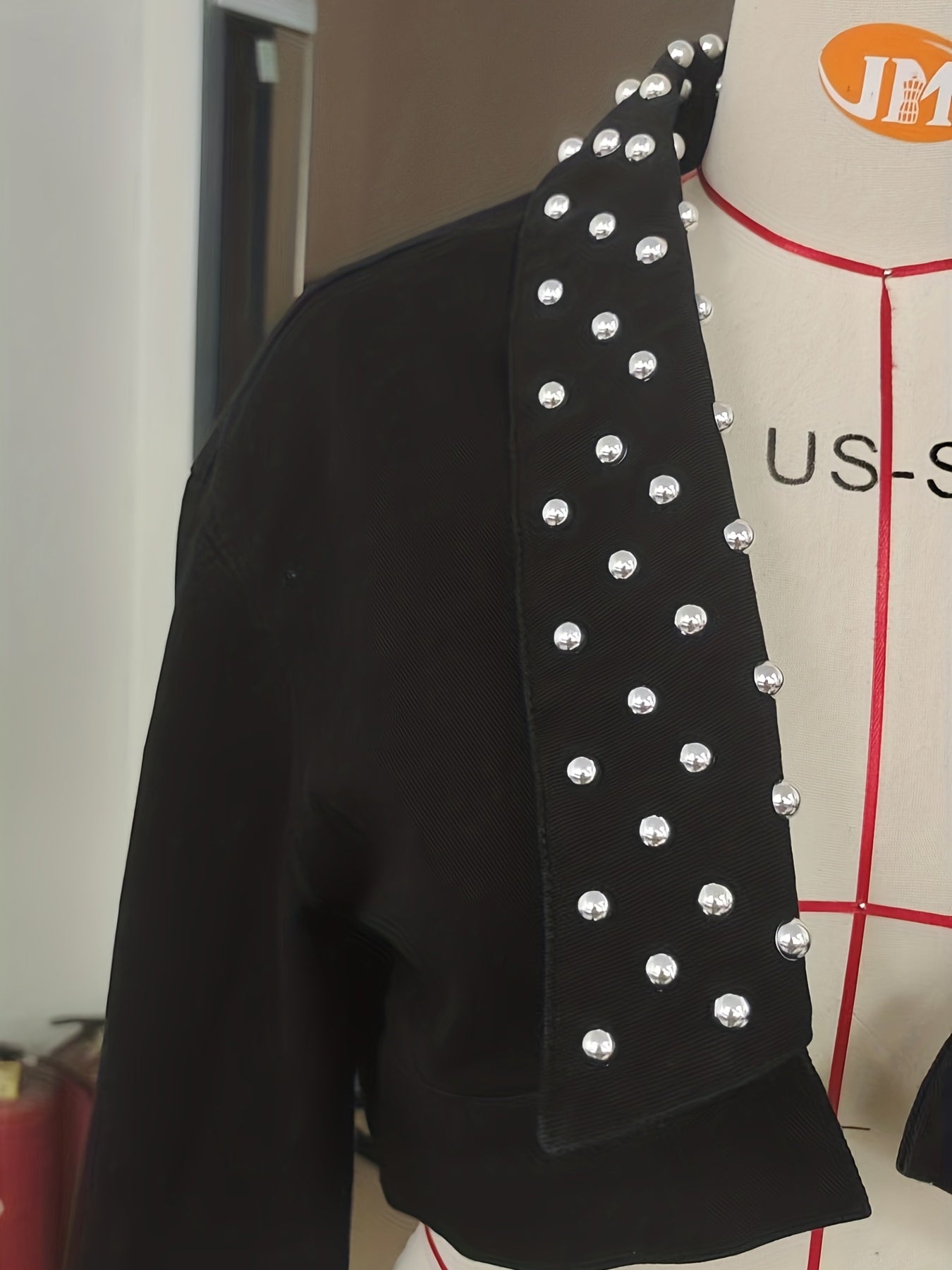 Plain Rivet Decor Denim Jackets, Long Sleeves Cropped Lapel Denim Jackets, Goth Cyberpunk Grunge Style, Women's Denim Clothing