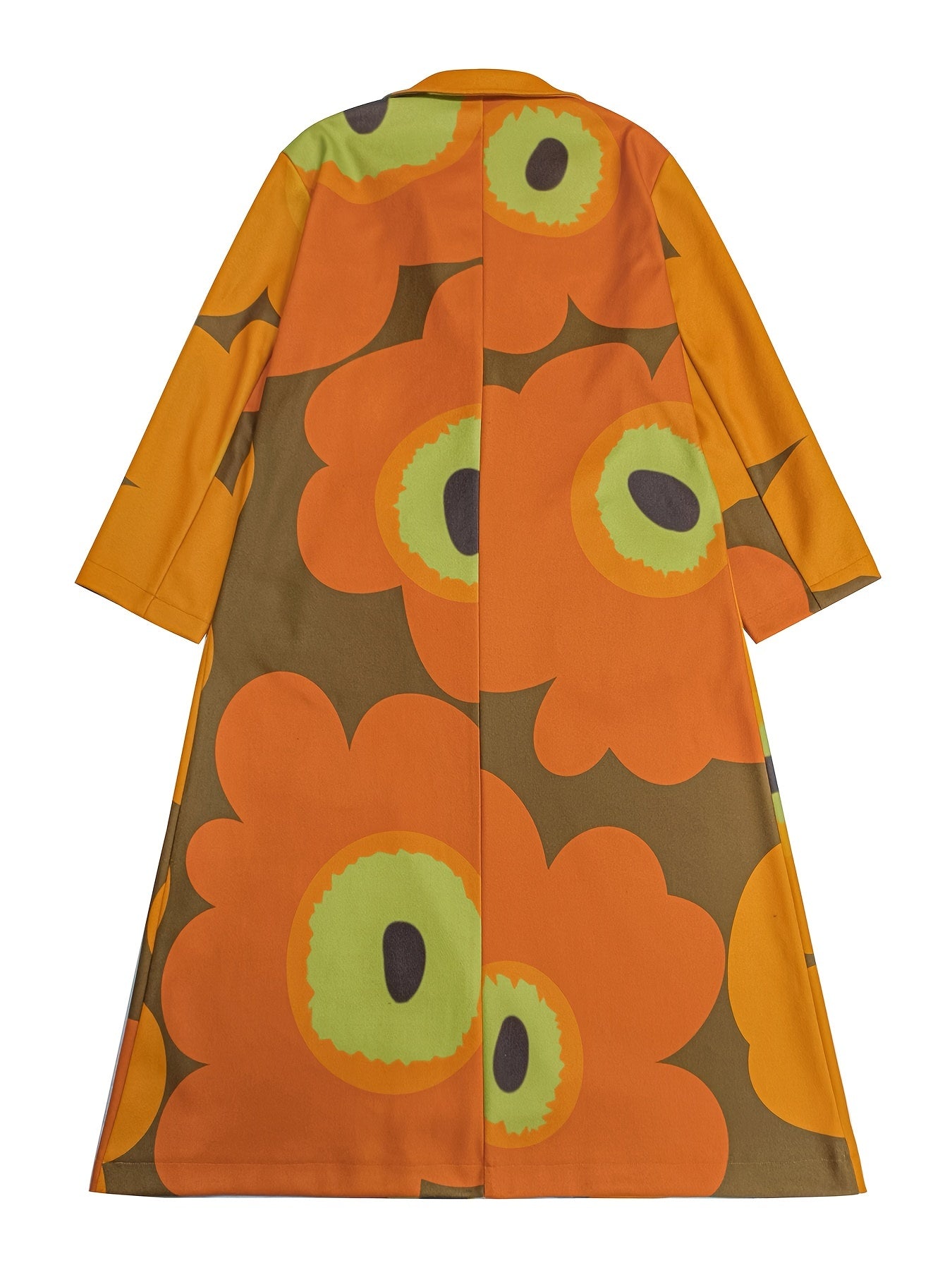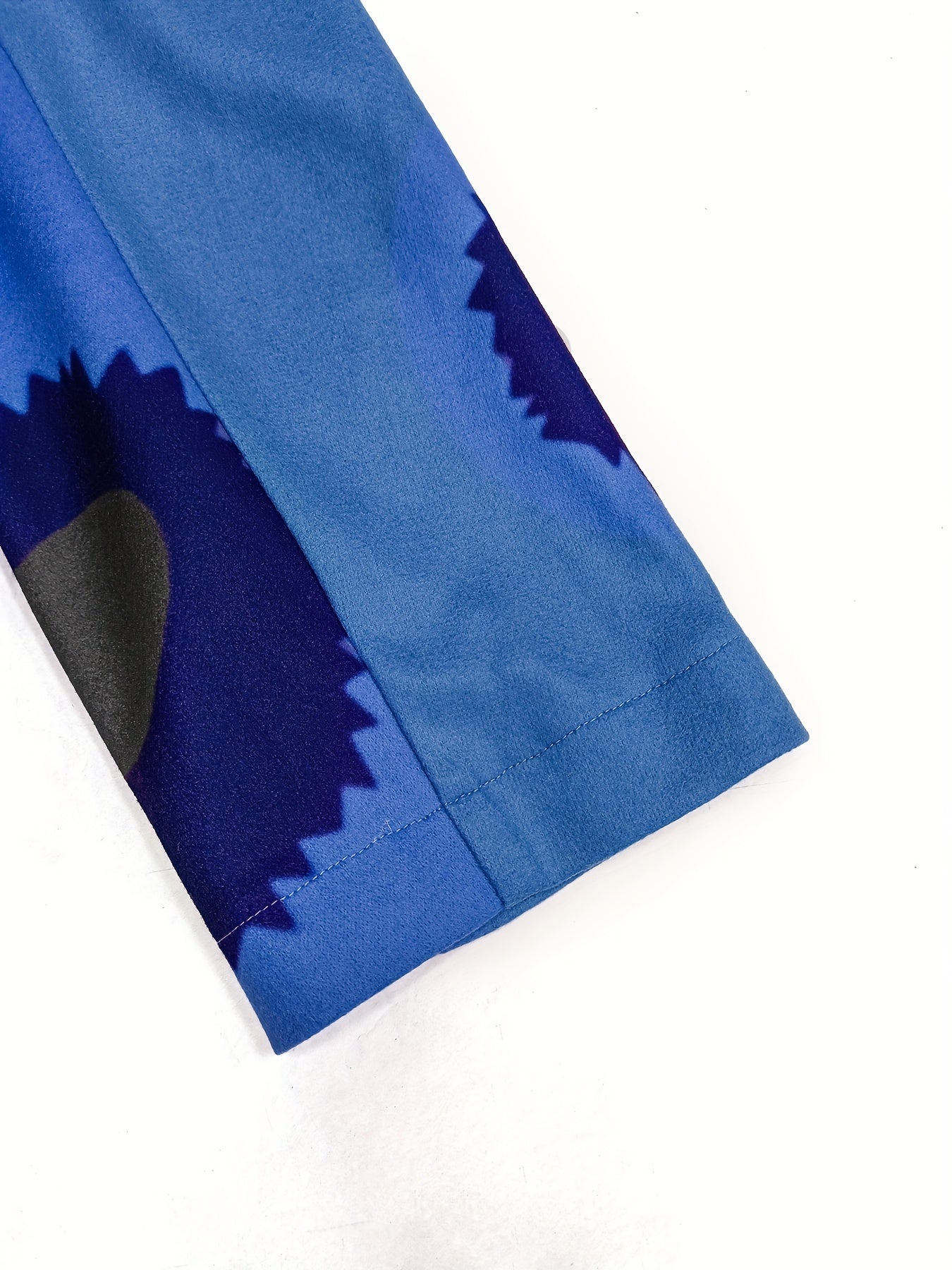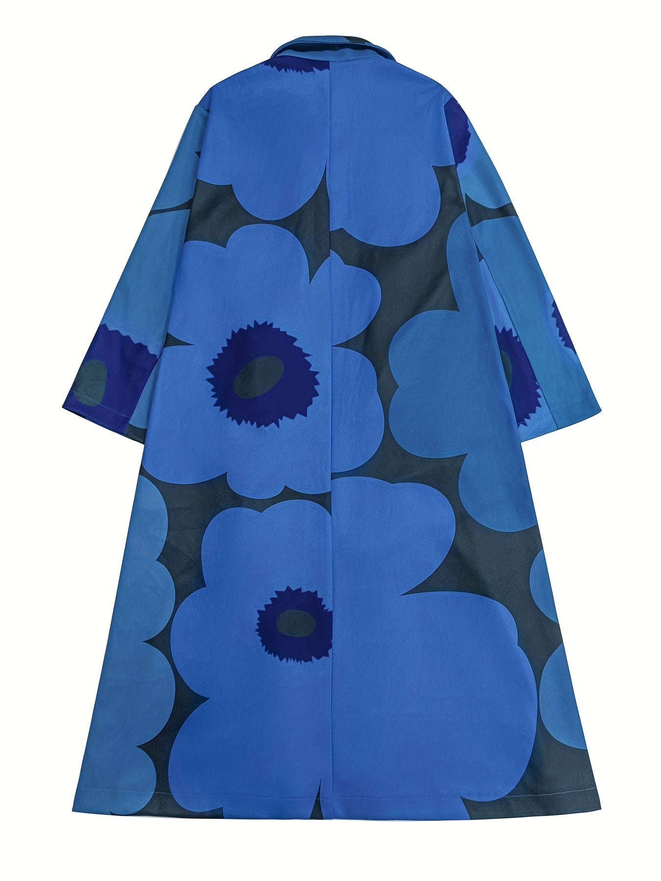 Plus Size Casual Coat, Women's Plus Floral Print Long Sleeve Lapel Collar Longline Overcoat With Pockets