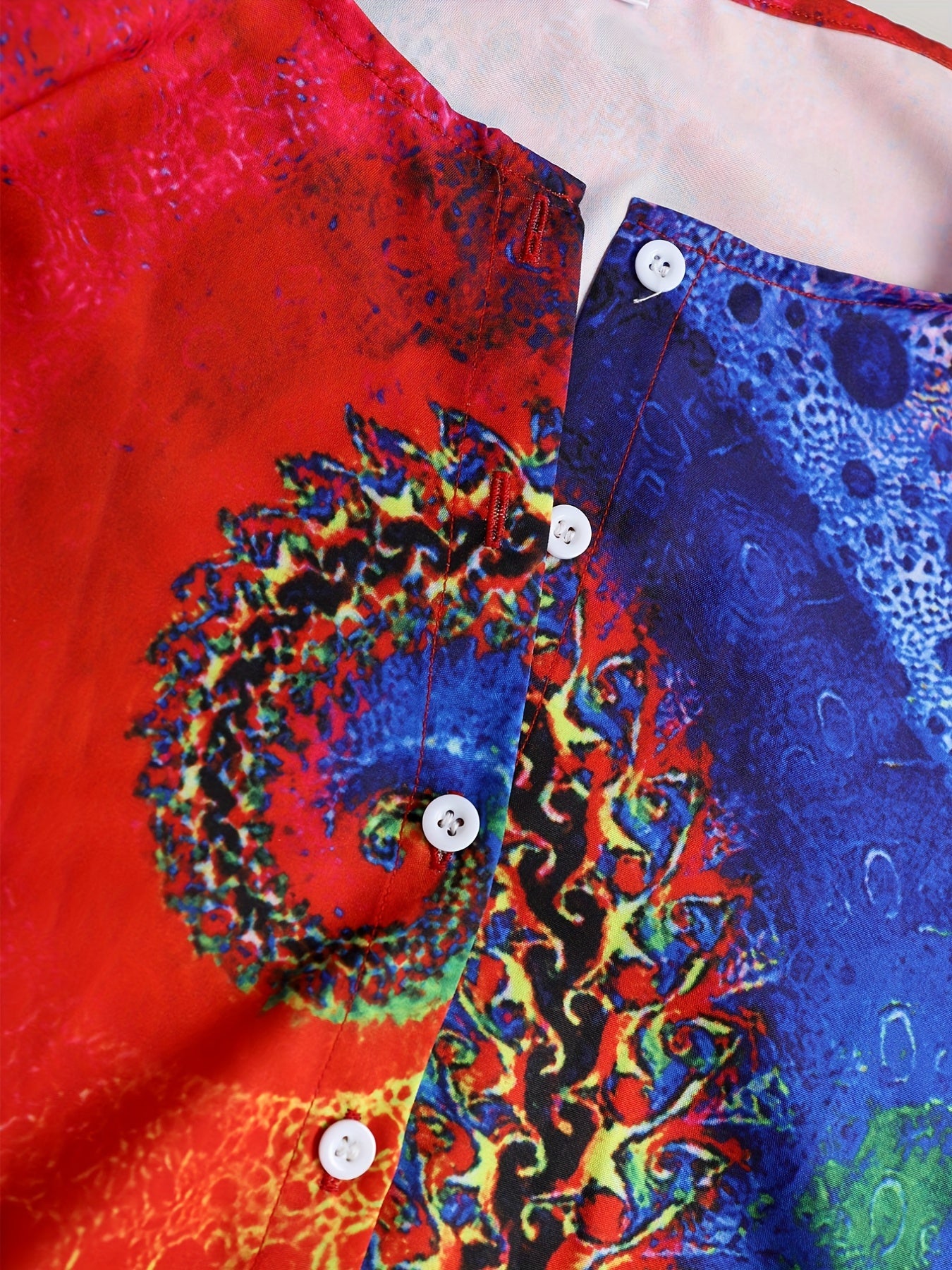 Plus Size Casual T-shirt, Women's Plus Tie Dye Three Quarter Sleeve Button Up Blouse