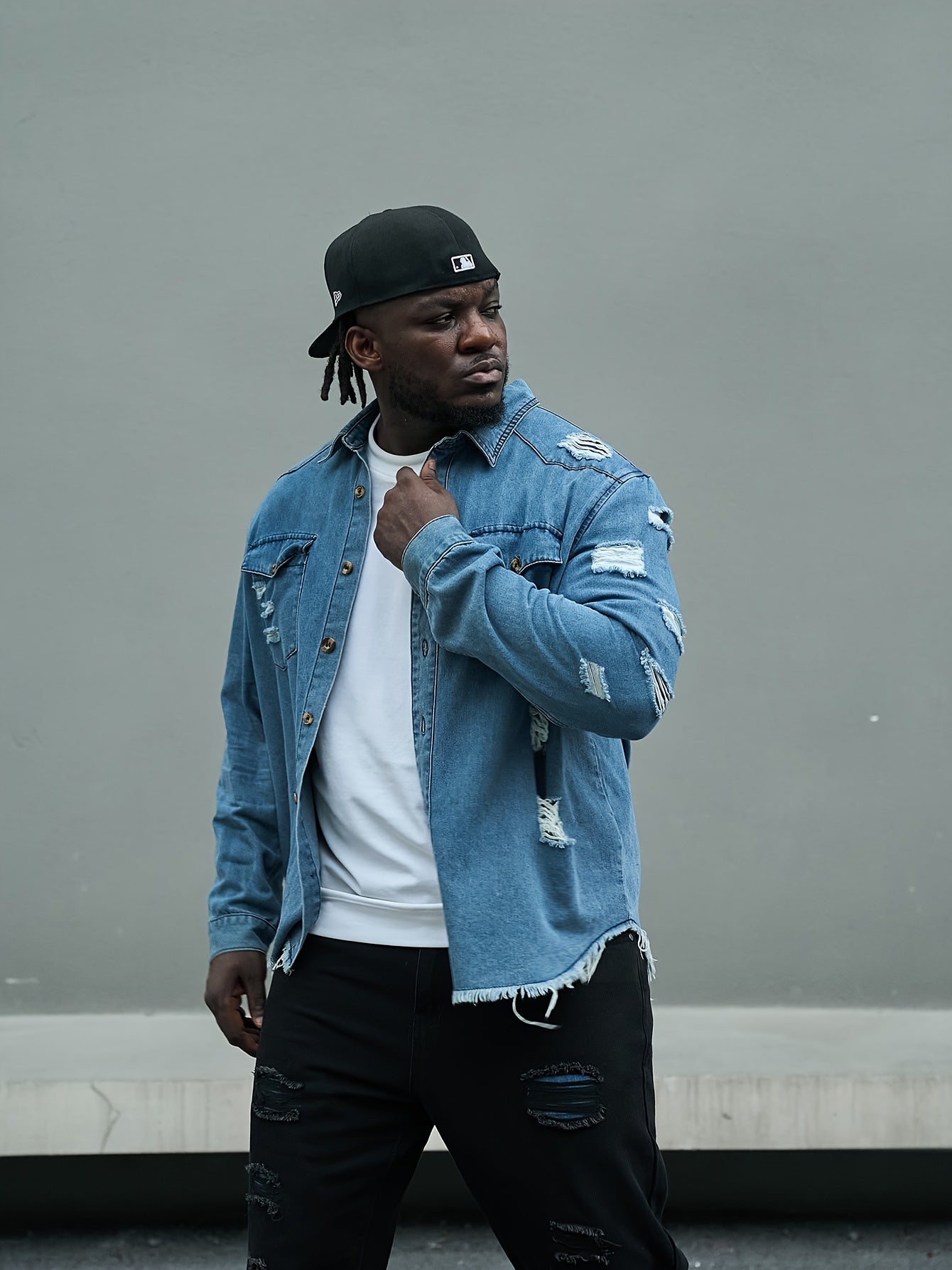 Plus Size Men's Relaxed Fit Cotton Denim Jacket - Stylish Casual Wear with Flap Pockets, Comfortable Design for Everyday Use