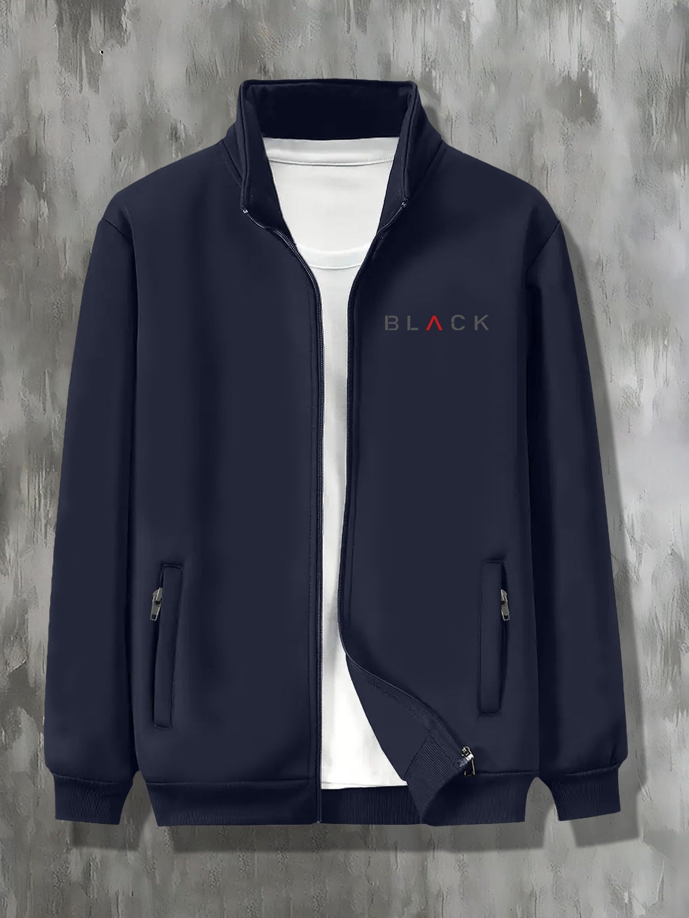Plus Size Men's Stylish College Knitted Jacket - Soft Polyester Blend, Elastane for Comfort, Small Stand Collar, Machine Washable, Easy Care - Perfect for Casual Daily Wear