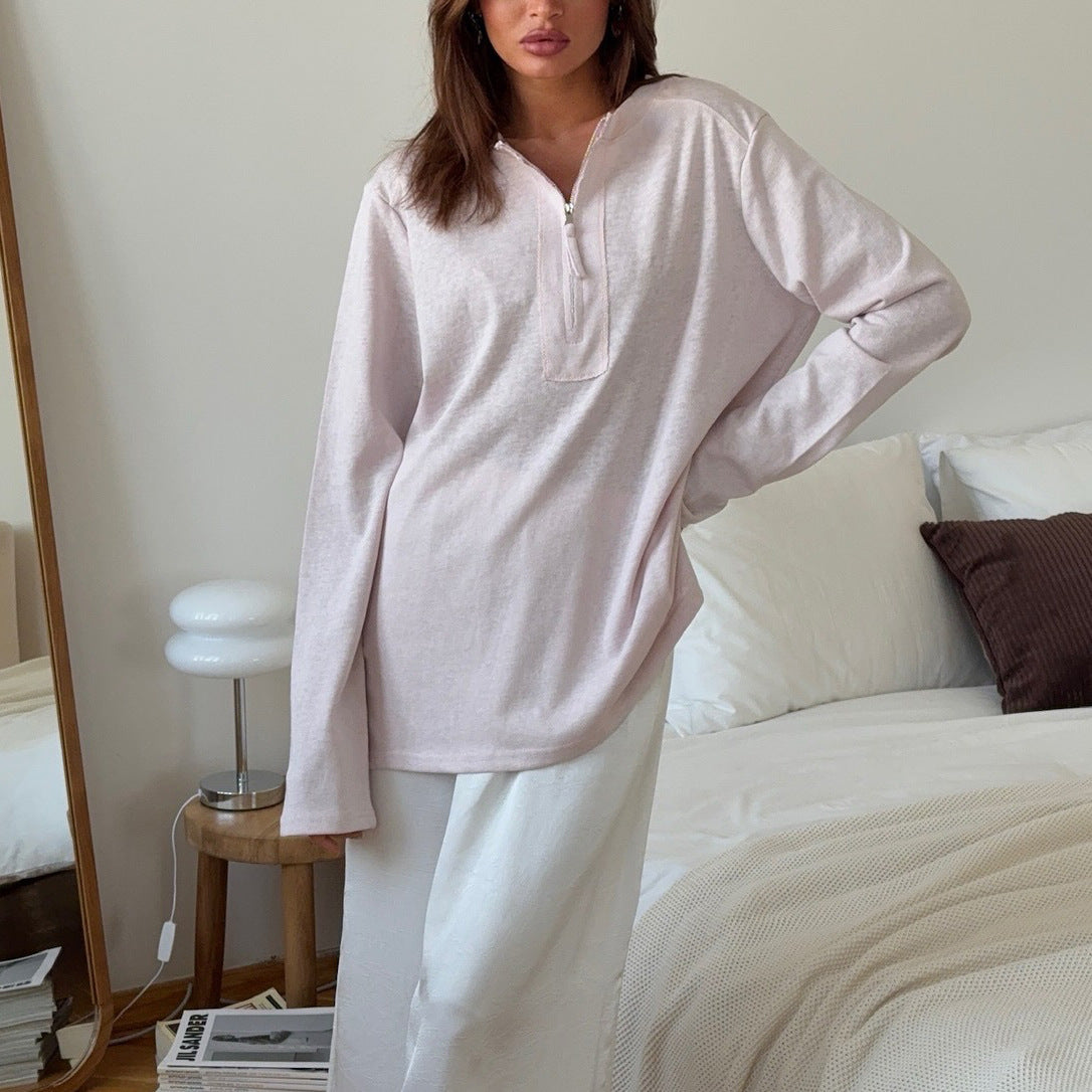 Popular, new comfortable and casual loose bamboo cotton thin long-sleeved crew neck bottoming shirt women's versatile can wear outside