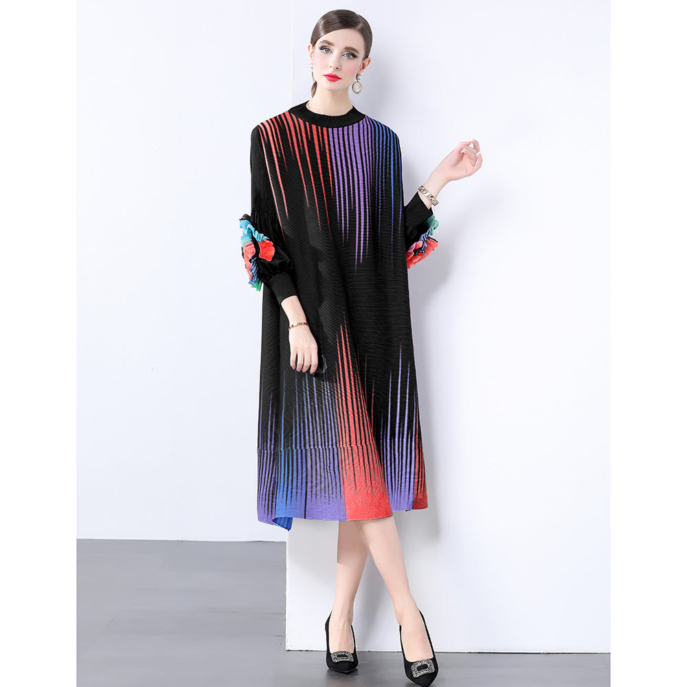 Premium pleated color elegant and comfortable three-dimensional flower dress elegant loose pleated Miyake spring skirt