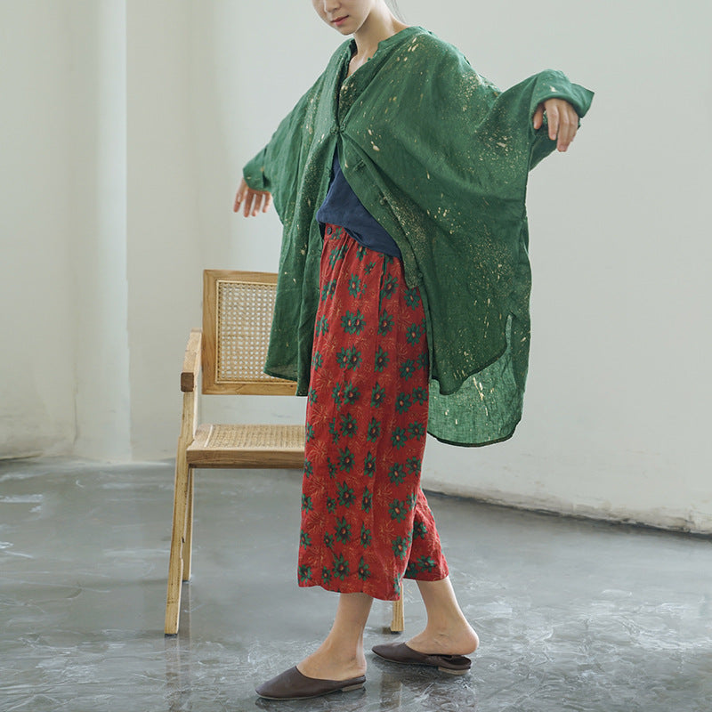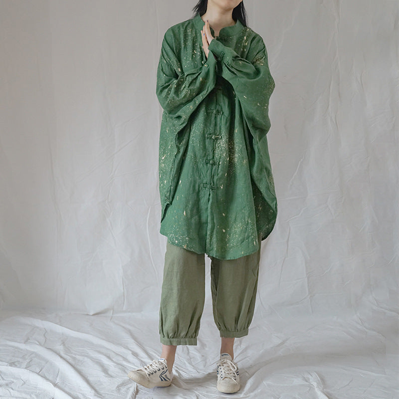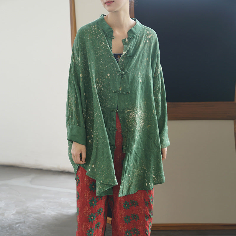 retro art splash ink printing linen Chinese loose coat, Guochao placket silhouette shirt S22293