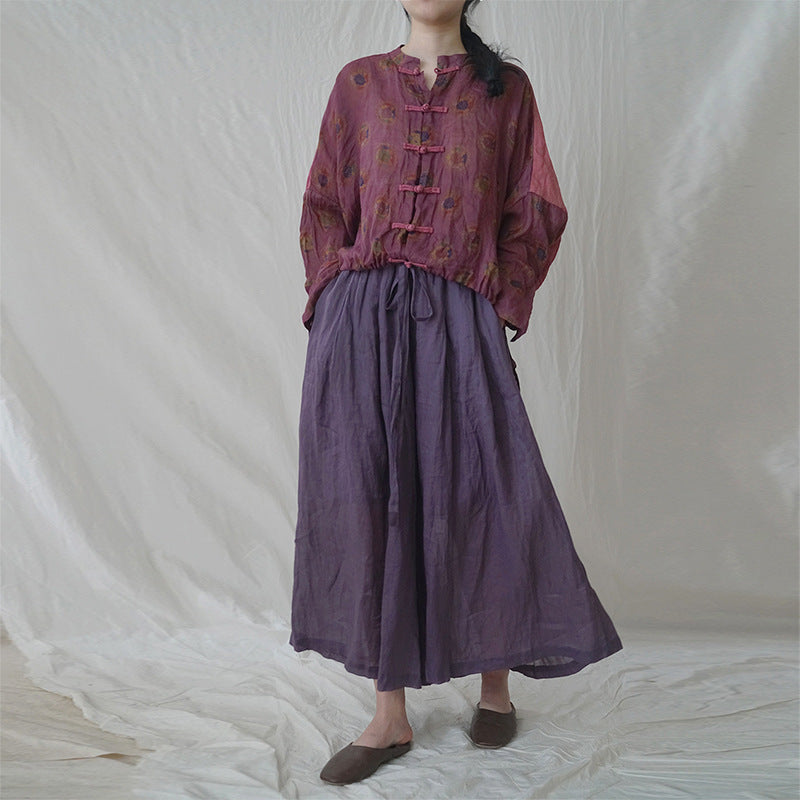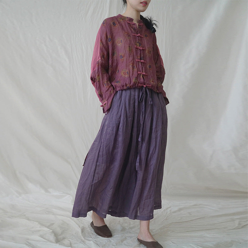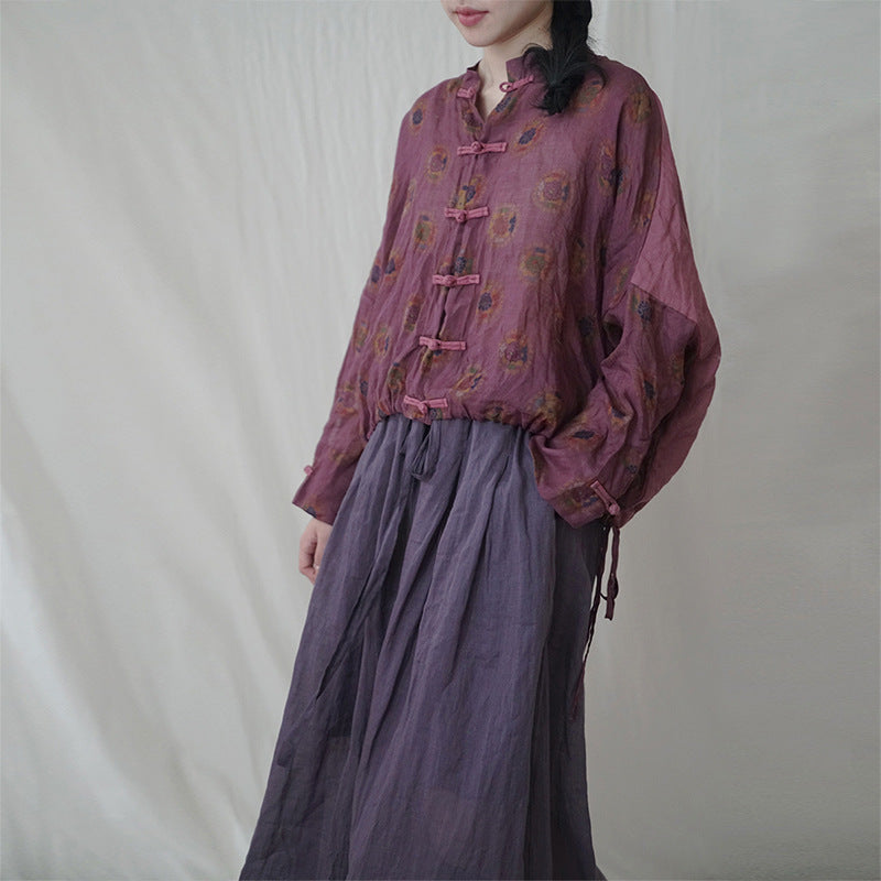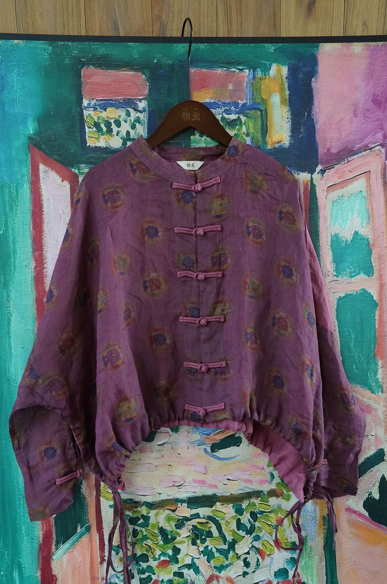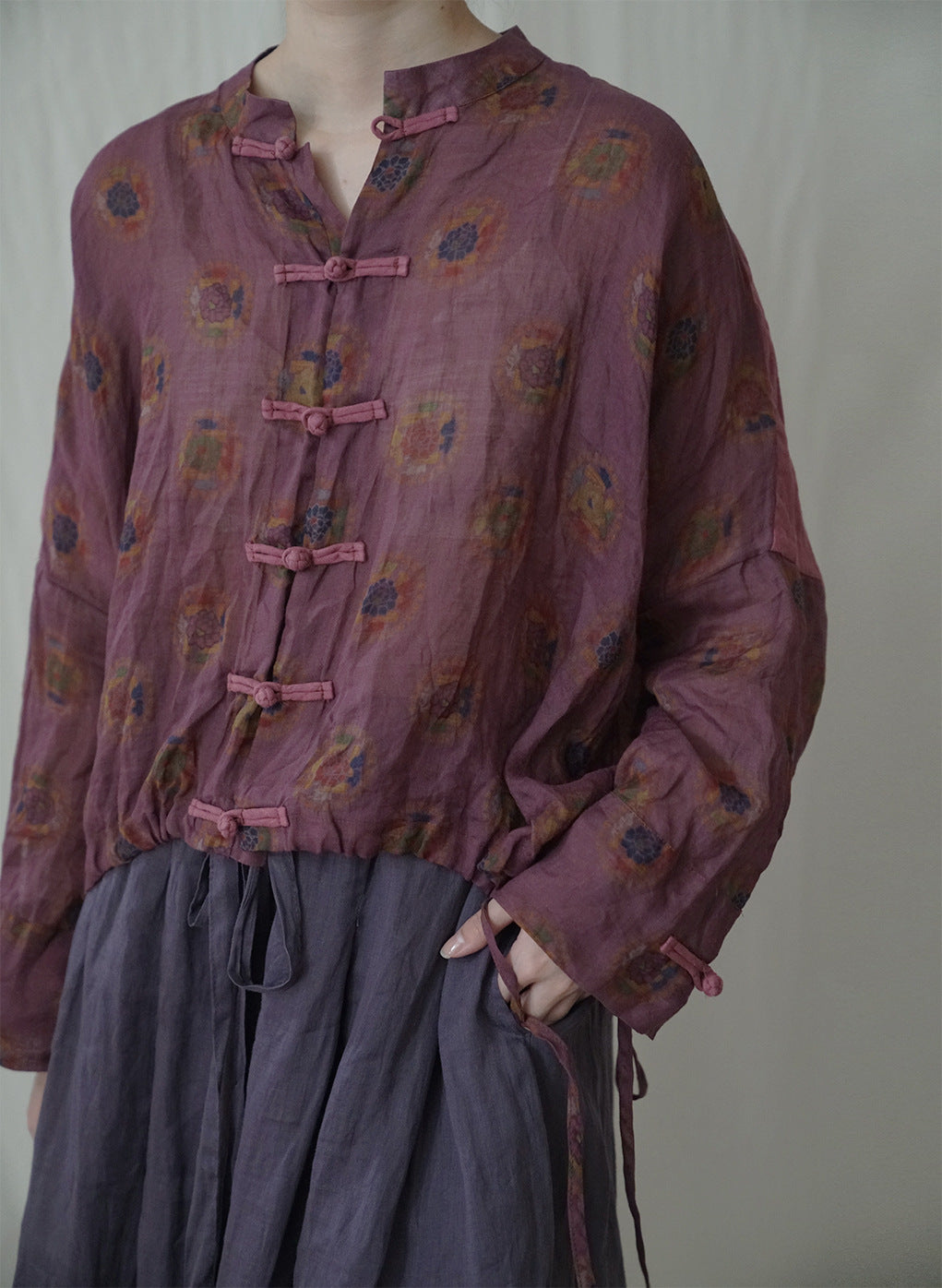 retro light Chinese printed ramie loose cardigan, early autumn national tide contrasting color art shirt S22277