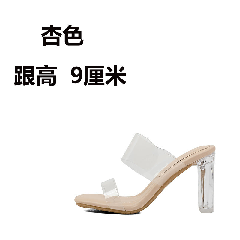 Sheepskin Droppings Transparent High Heel Women's Sandals New Summer Outdoor Slippers Mid Heel Chunky Heel Crystal Heel Shoes