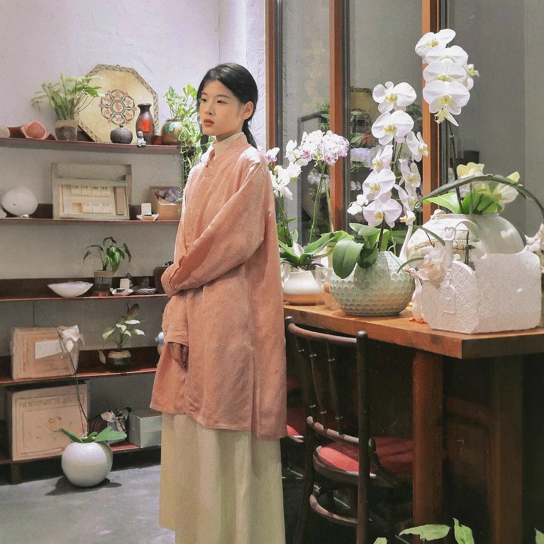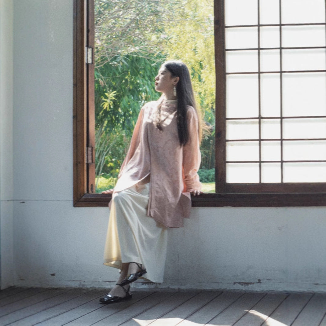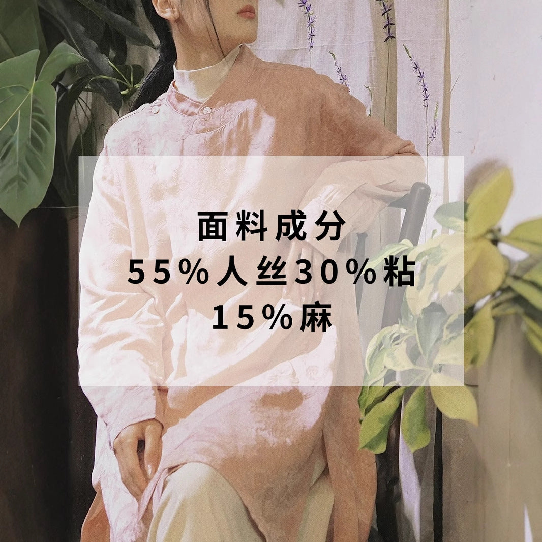 Shirt women's long-sleeved new Chinese long shirt light national style zen improved pink non-jacquard top C0242
