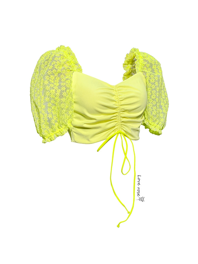Slightly fat design sense niche front shoulder short-sleeved lace short-sleeved chiffon women's shirt women's summer with suspender vest