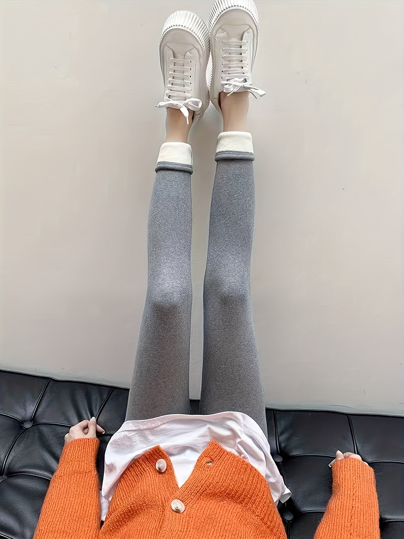 Soft & Cozy Womens Solid Color Fleece Lined Yoga Pants - Stretchy Medium Weight Cotton Blend, Machine Washable, Elegant Design for Fitness, Running, and Sports - Fall/Winter Activewear