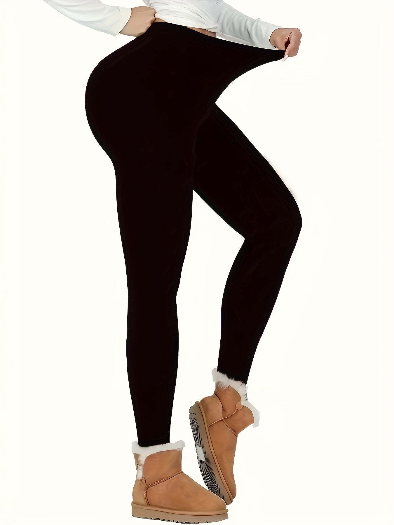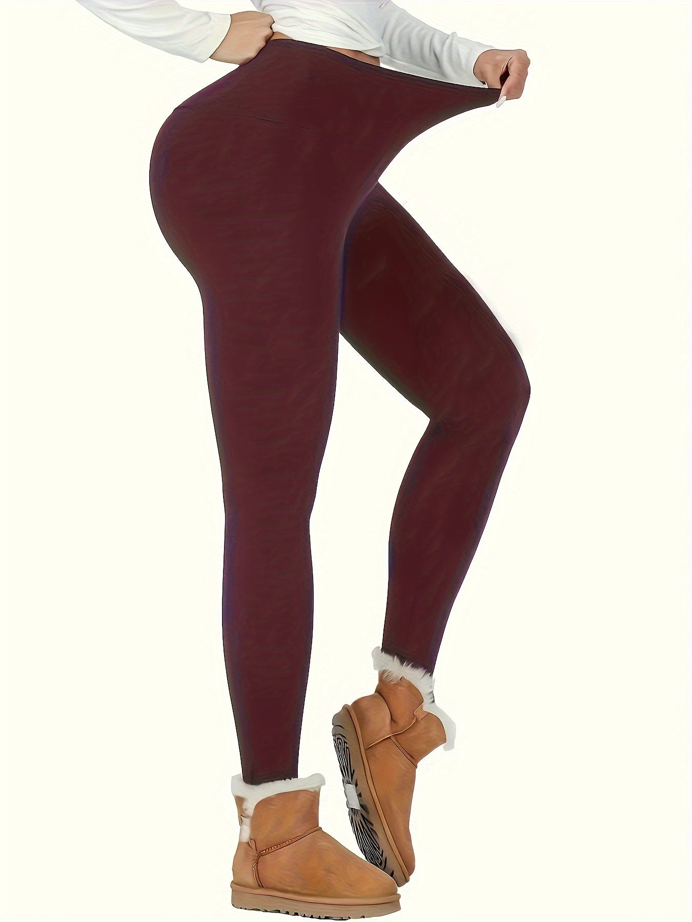 Soft & Warm High Waist Plush Lined Leggings - Women's Thermal Yoga Pants for Autumn and Winter - Elastic, Casual, Sports, Fitness, Comfortable Wear for Chilly Days