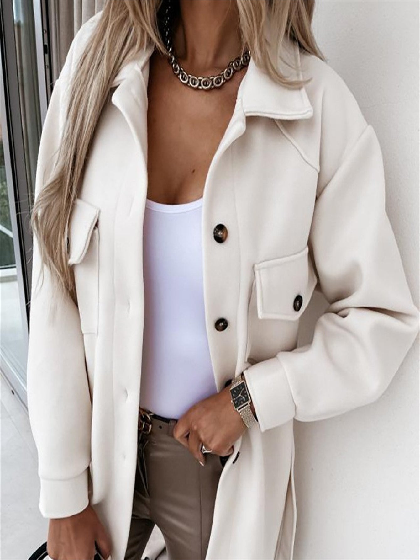 Solid Button Down Long Sleeve Lapel Belted Pea Coat, Fashion Winter Jacket, Women's Clothing