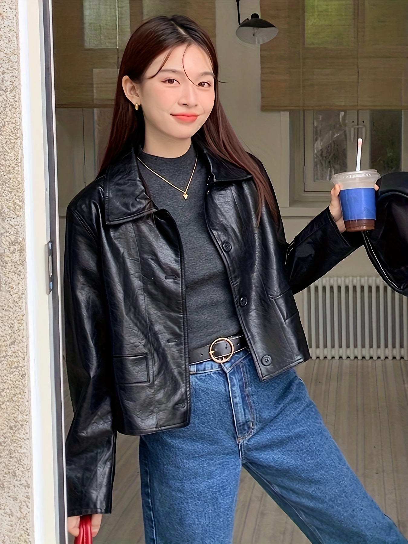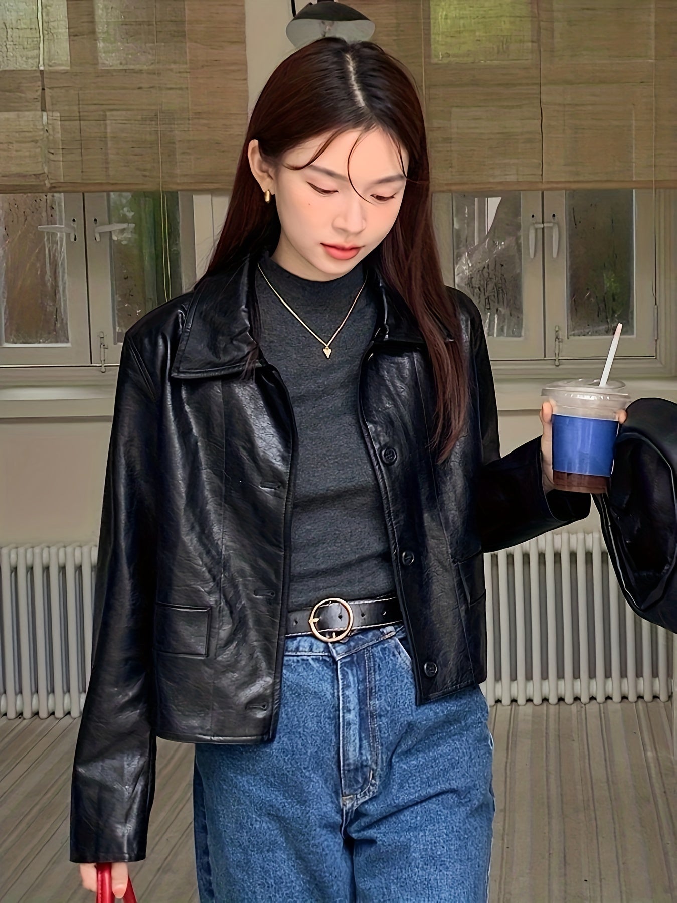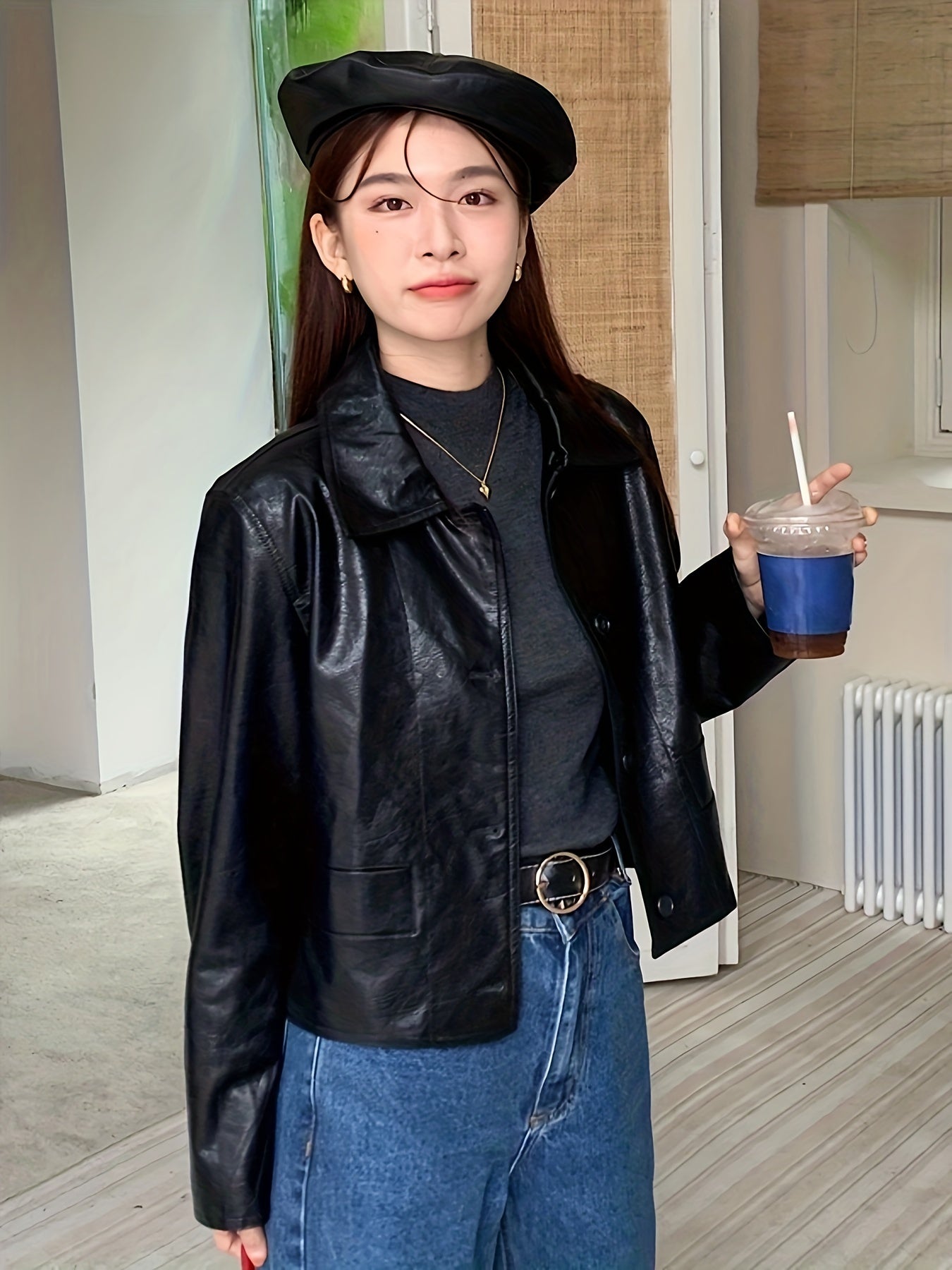 Solid Button Front Jacket, Casual Long Sleeve Versatile Outerwear, Women's Clothing