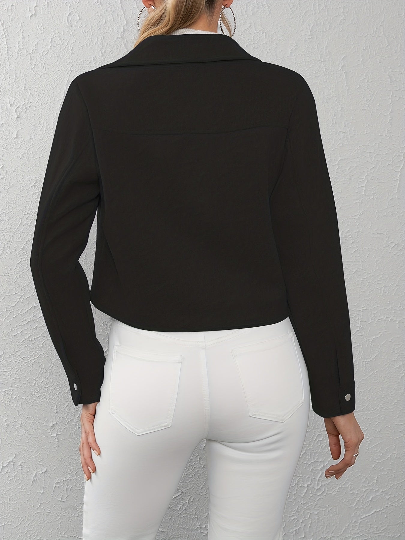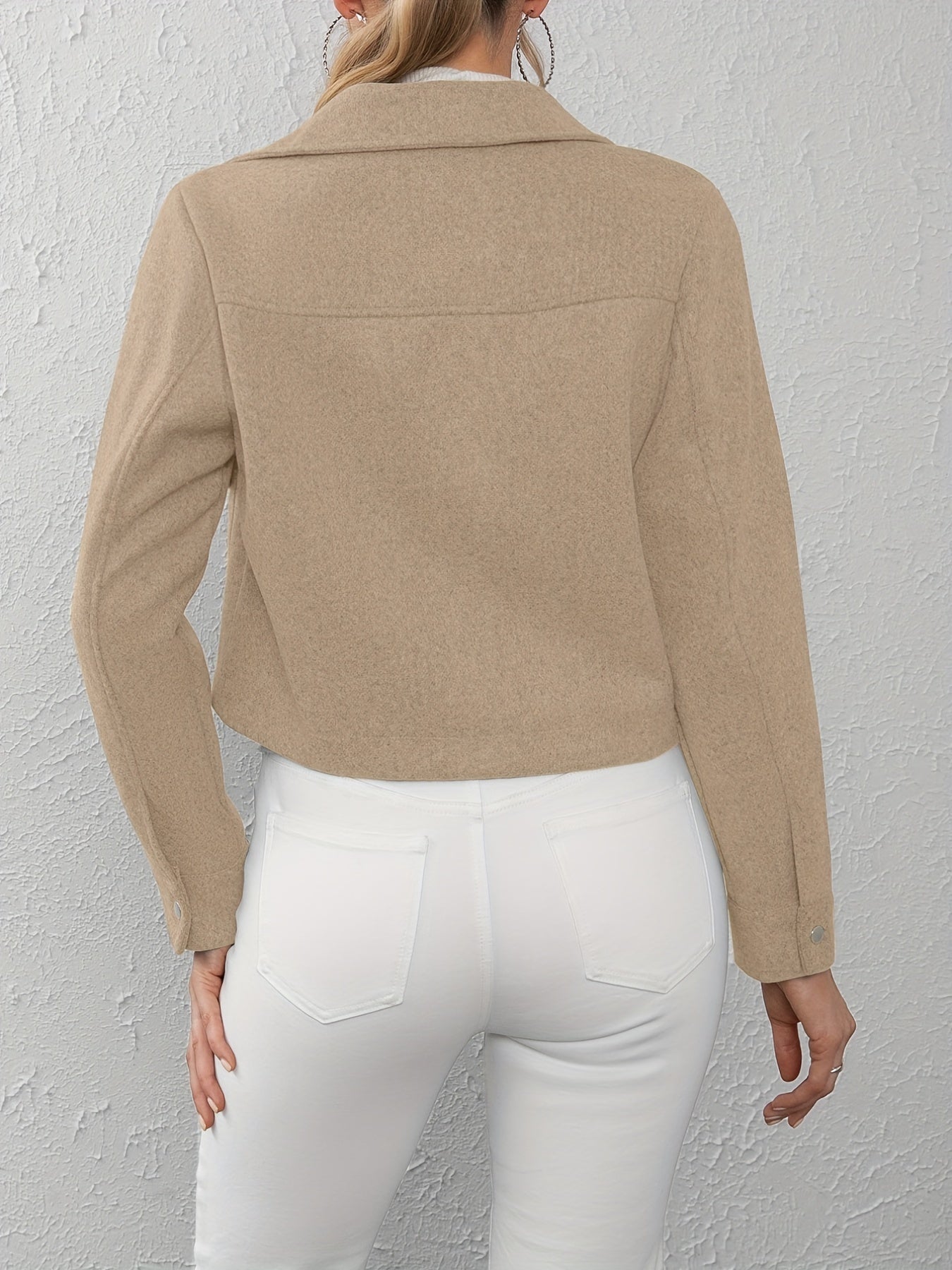 Solid Button Front Lapel Neck Jacket, Casual Long Sleeve Outerwear For Spring & Fall, Women's Clothing