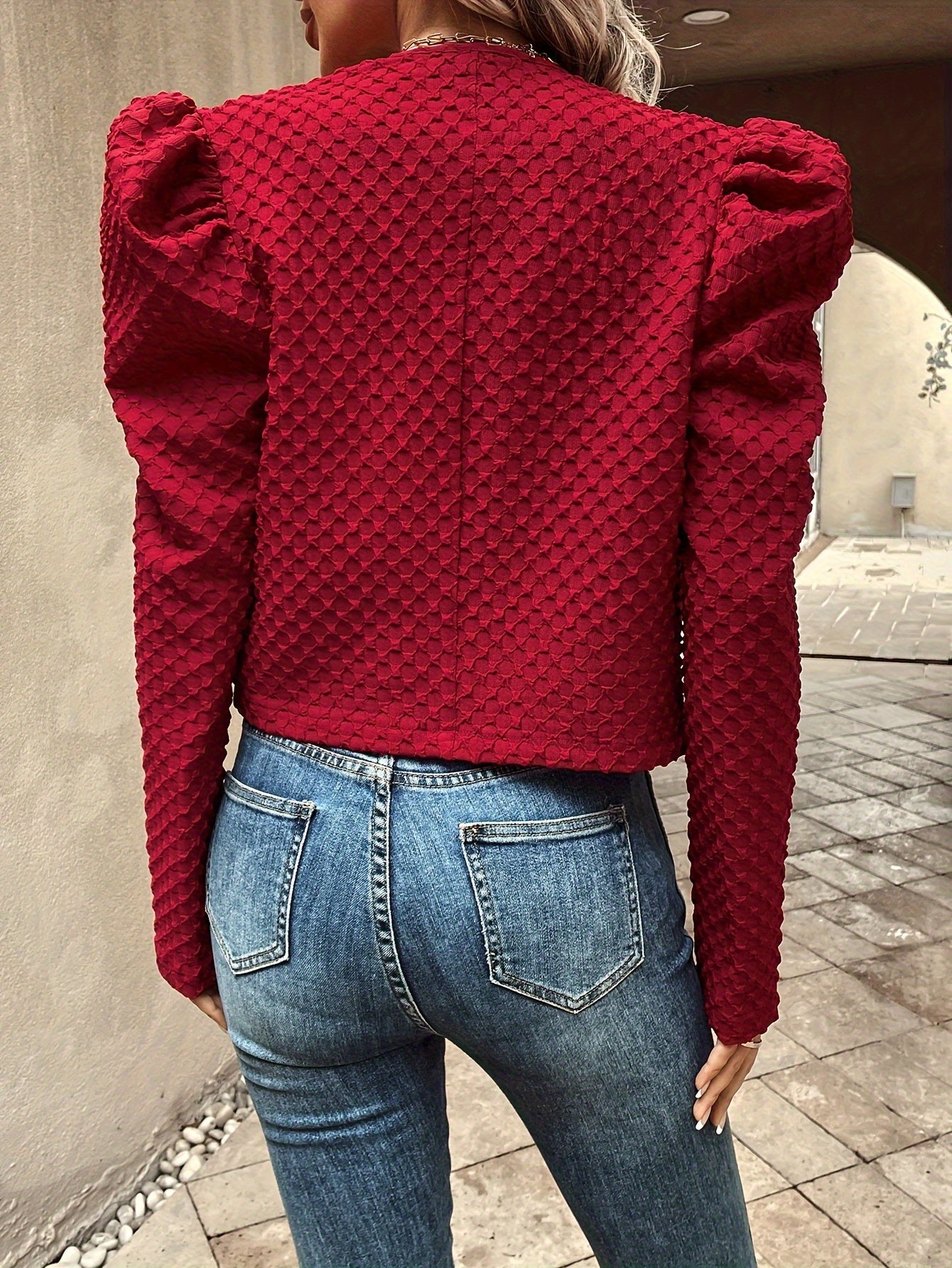 Solid Zip Up Jacket, Elegant Ruched Long Sleeve Outwear For Spring & Fall, Women's Clothing