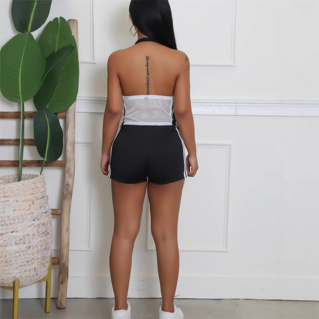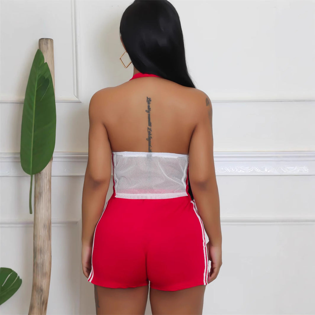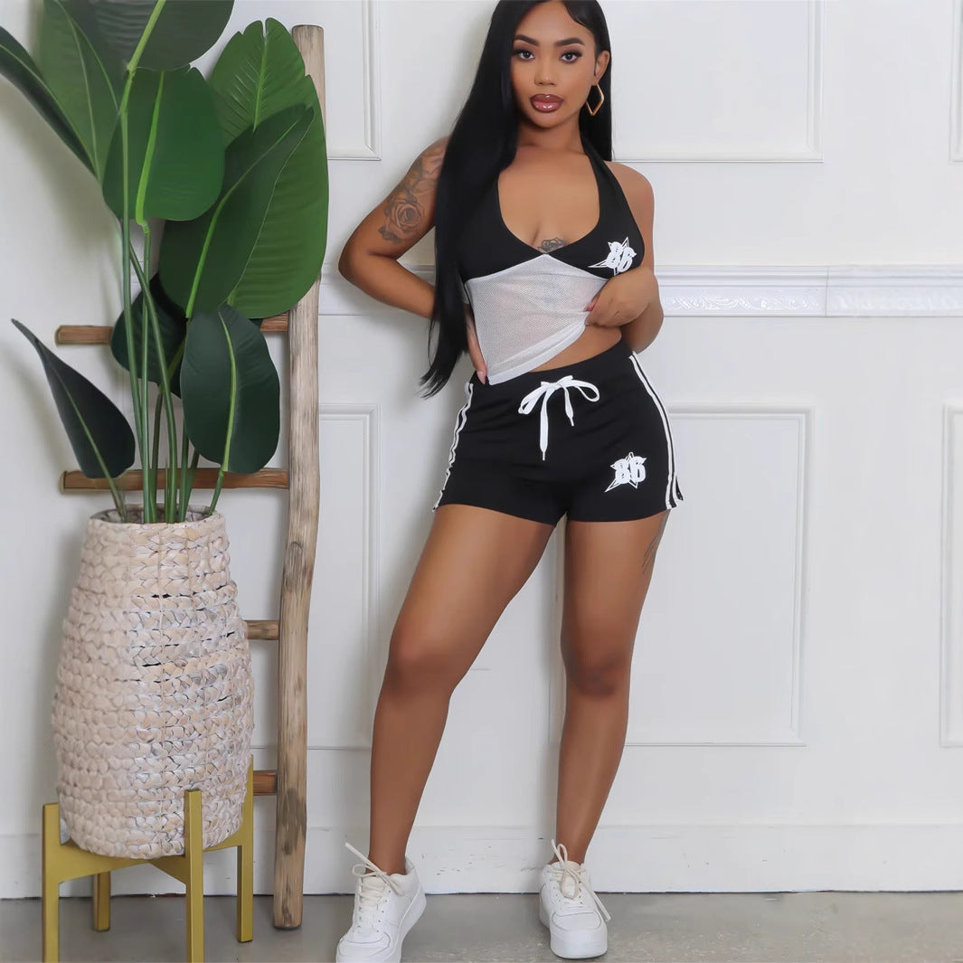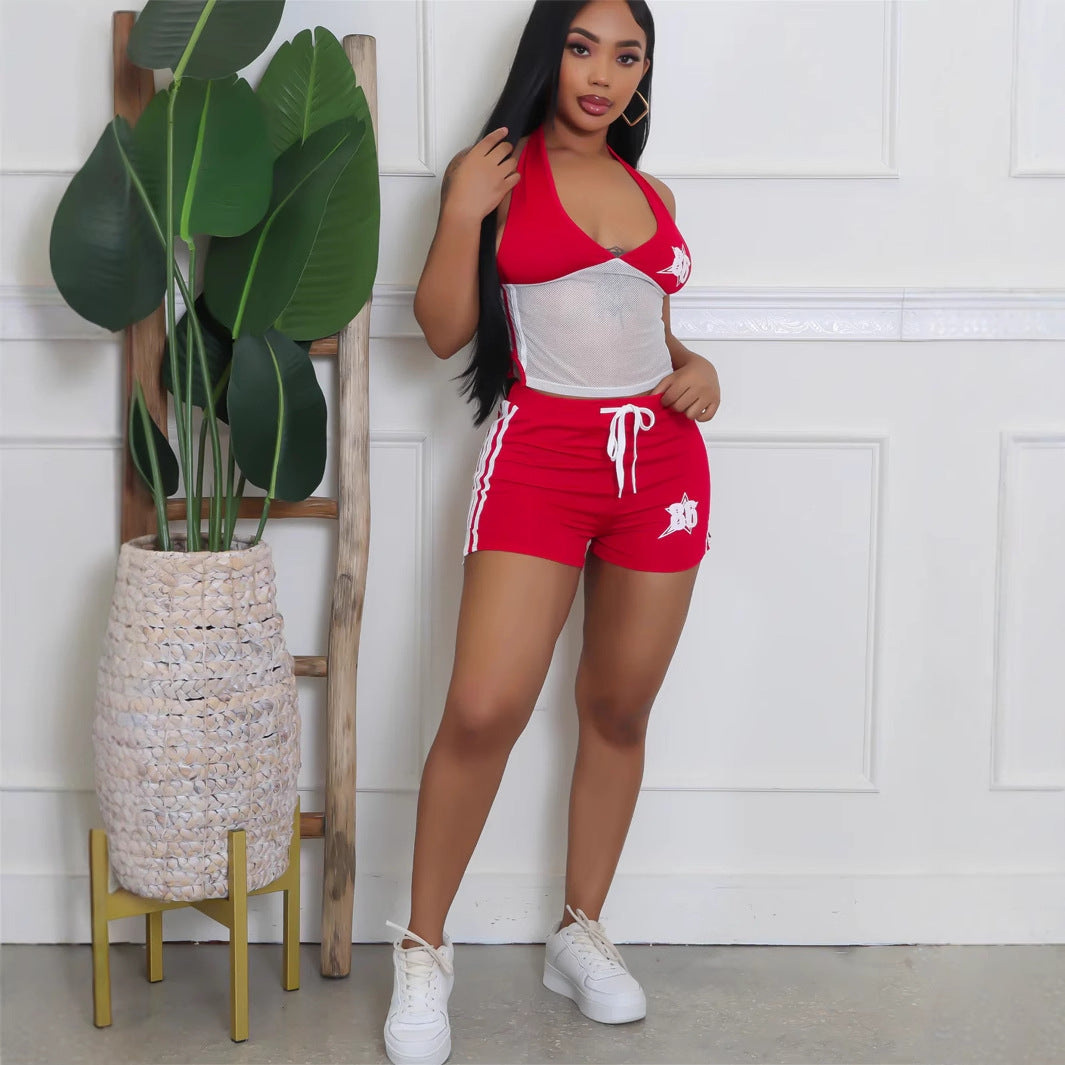 summer new women's clothing New sexy Spice Girls printed halter neck hanging perspective hollow tube top shorts set