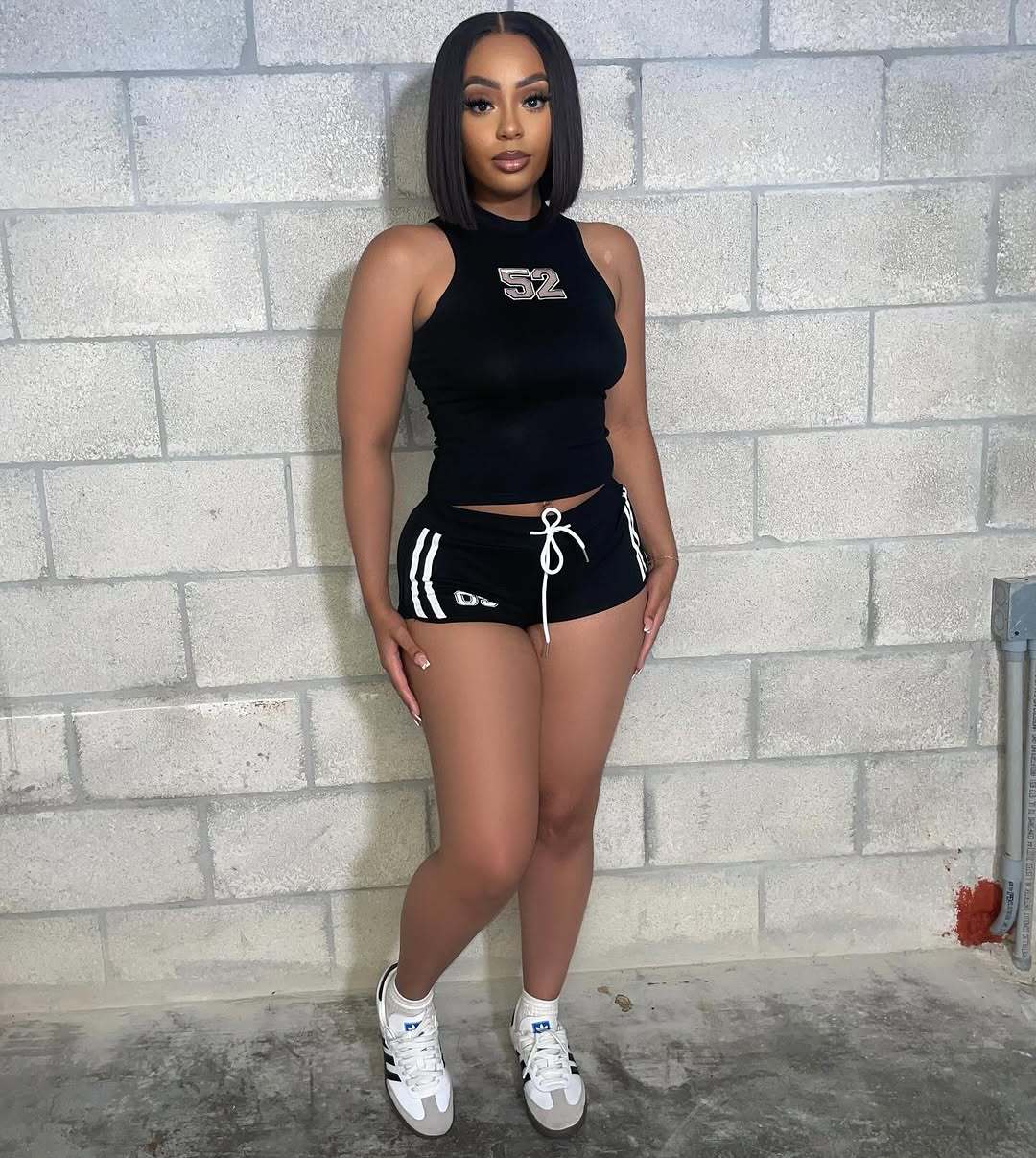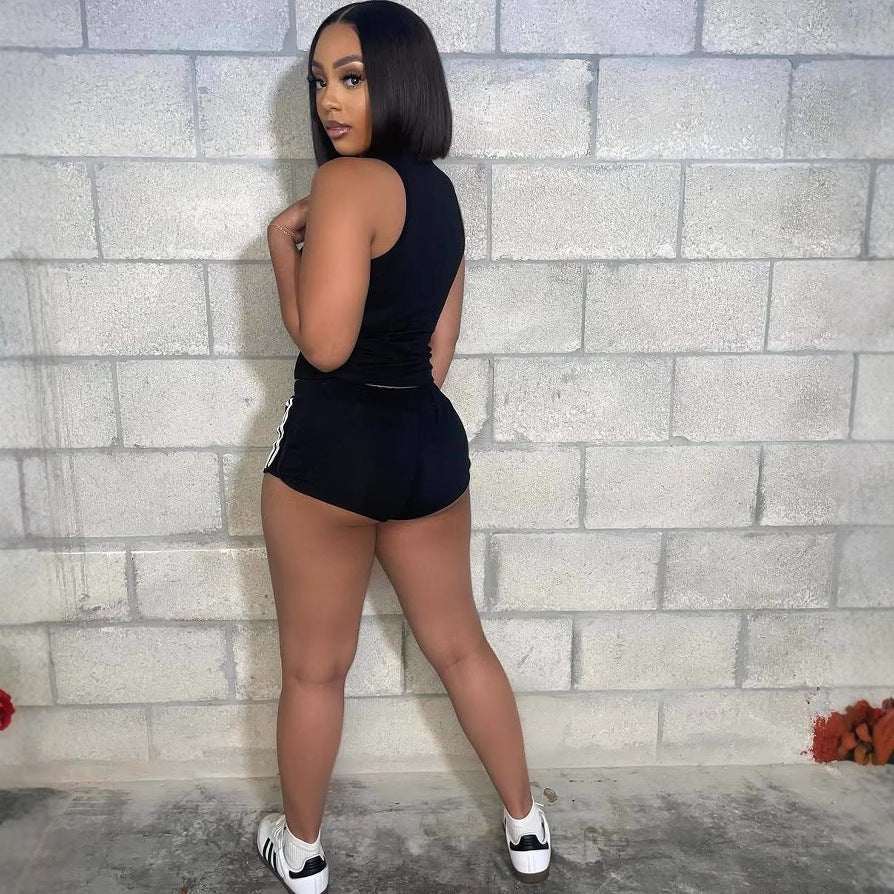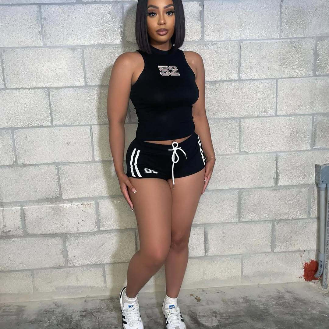 summer new women's clothing New Spice Girls printing slim-fitting round neck sleeveless top hip-wrapped lace-up shorts set