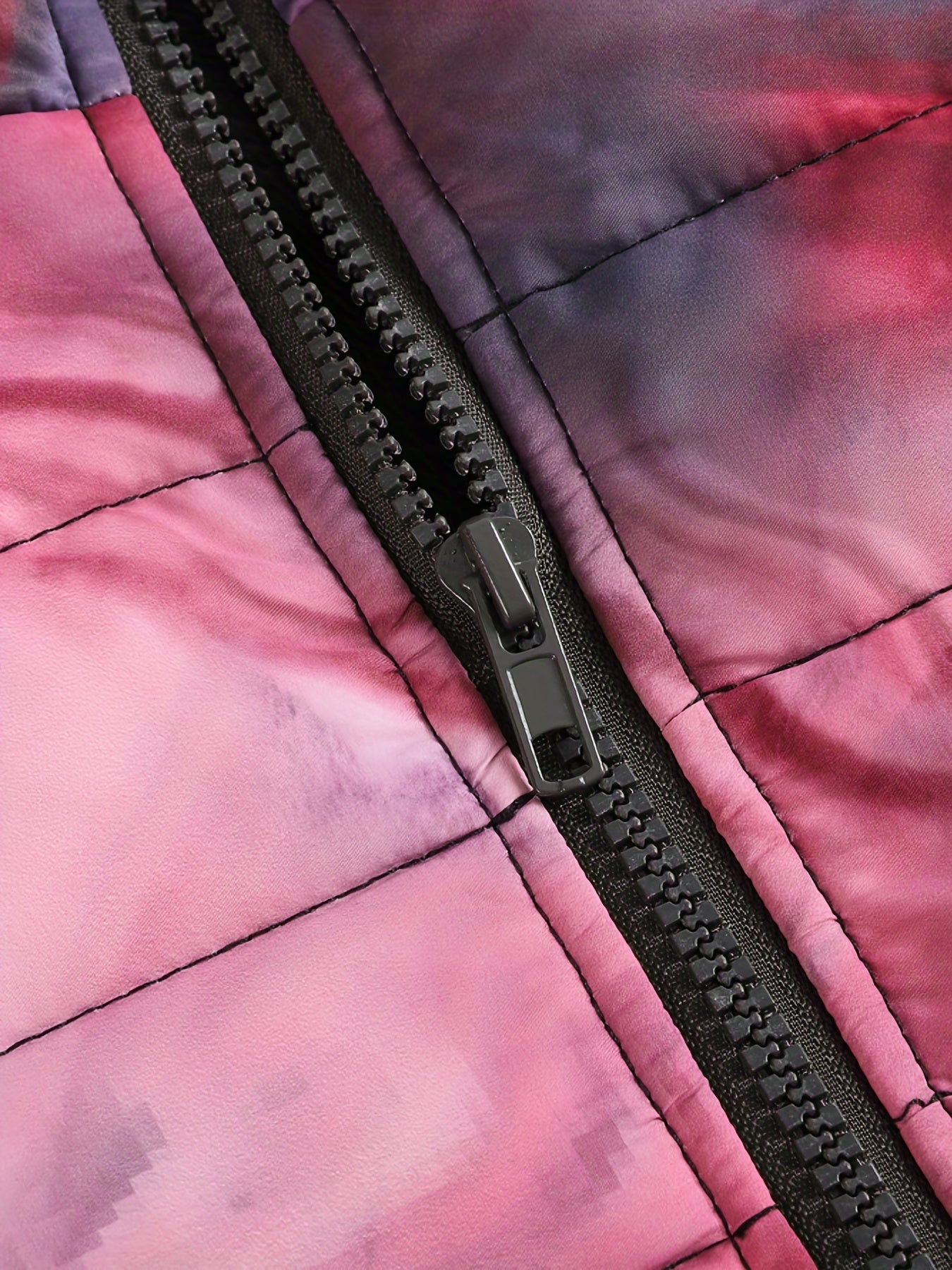 Vibrant Abstract Print Zip-Up Coat - Cotton-Padded Jacket Coat for Women, Long Sleeve, Warm, Winter Outerwear, Casual, Stylish, and Comfortable