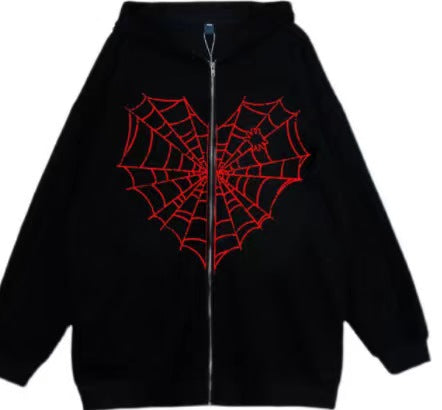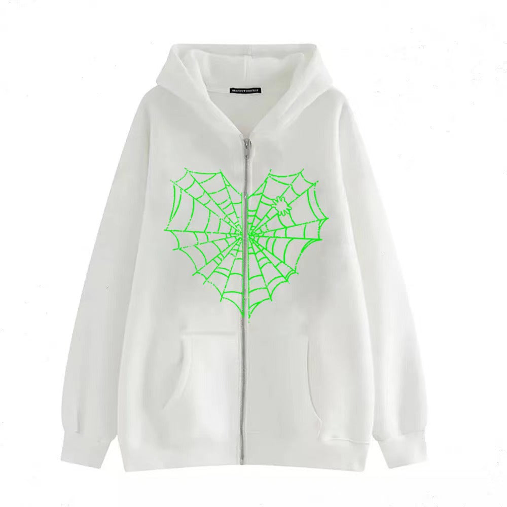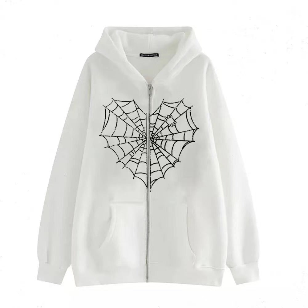 VLOVELAW 2025 Colored Spider Web Street Hip Hop Gothic Harajuku Y2k Black Zipper Hoodie Women, Harajuku Jacket Sweater Women